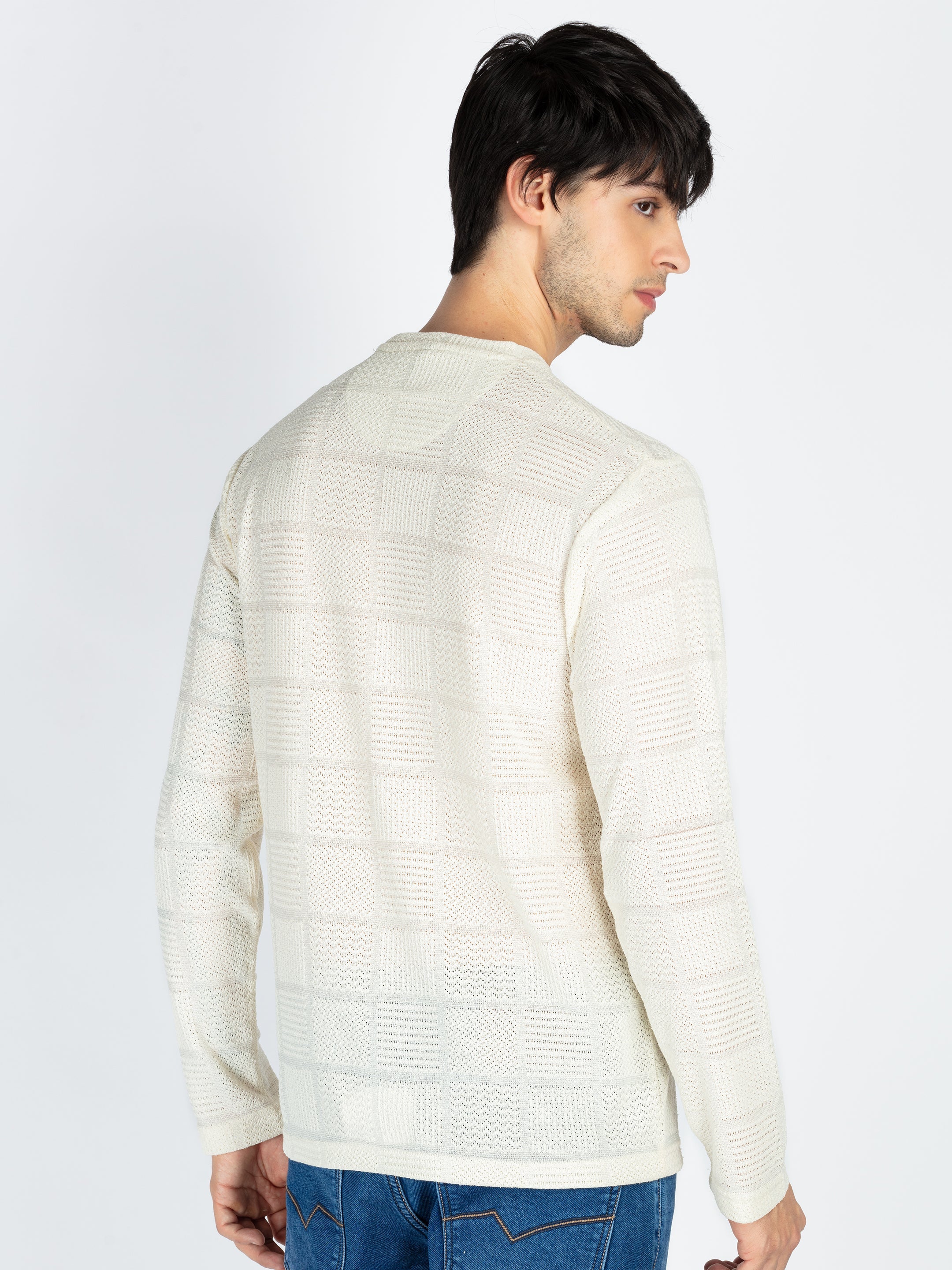 Off White Mens Solid Round Neck Full Sleeve T-Shirt