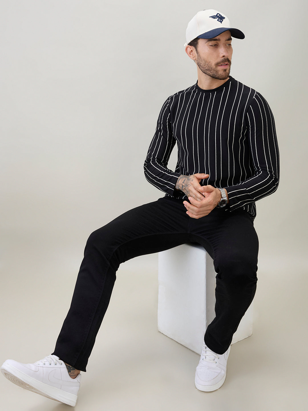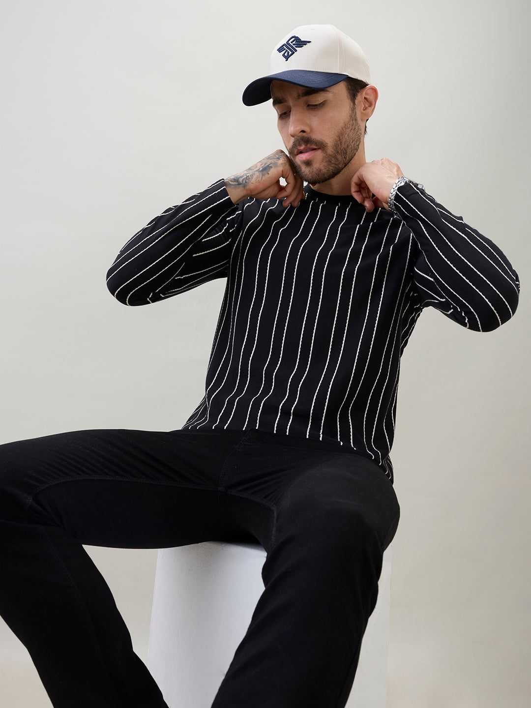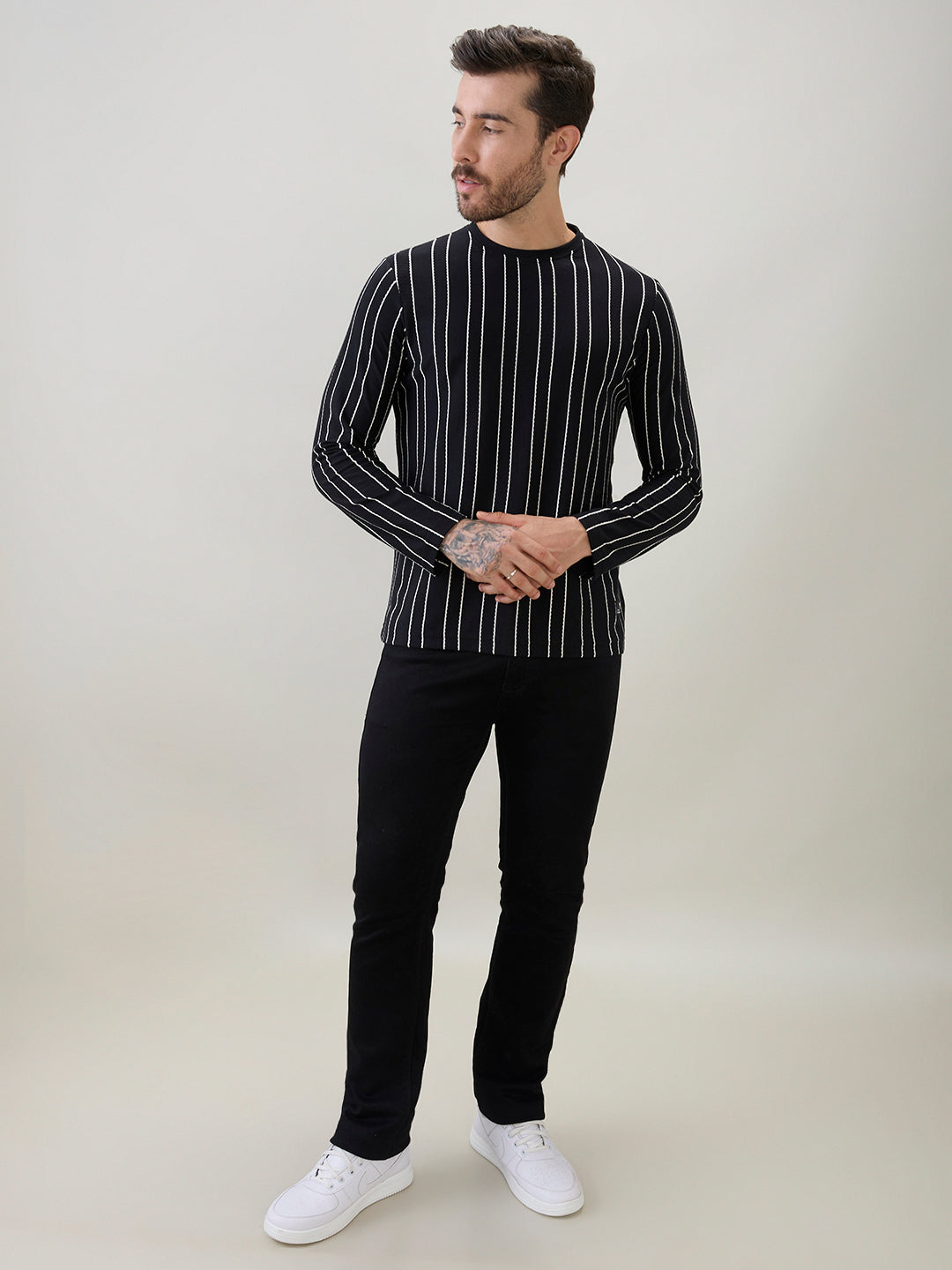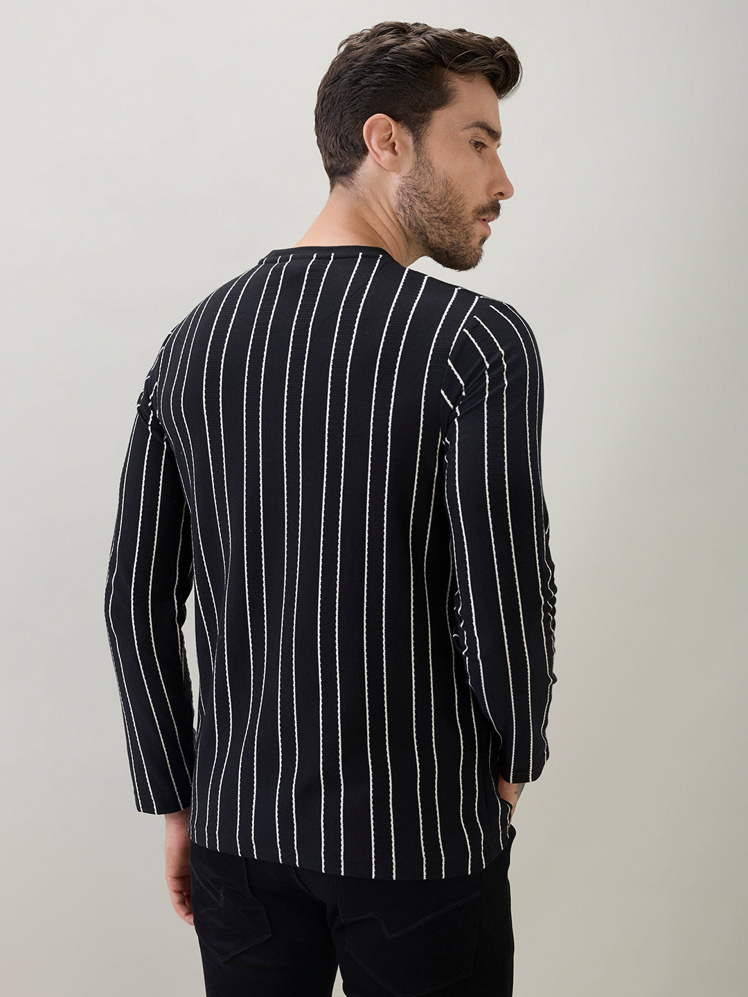 BLACK Men's Vertical Striped Full Sleeve Regular Fit T-Shirt