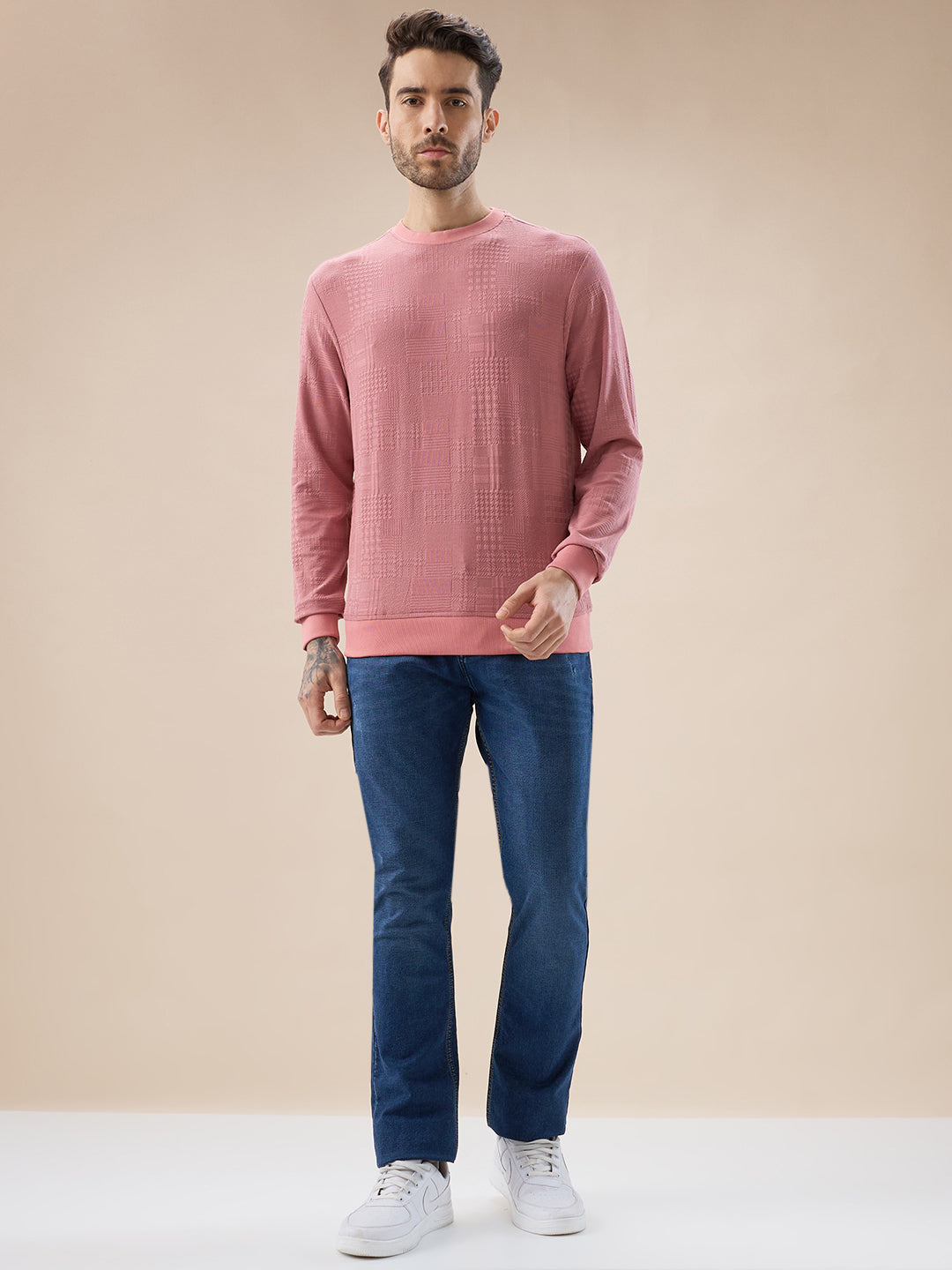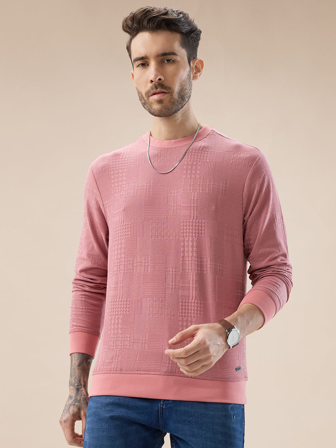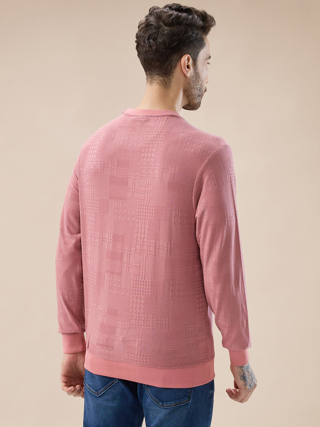ROSE GOLD Men's Geometric Textured Round Neck Full Sleeve Regular Fit T-Shirt