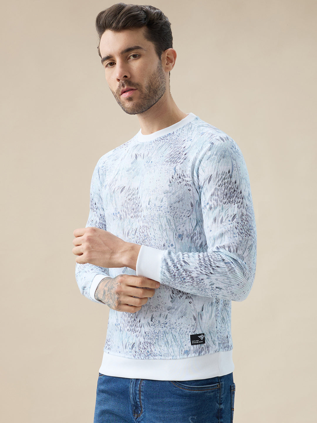 LT.GREEN Men's Tropical All-Over Print Round Neck Full Sleeves Regular Fit T-Shirt