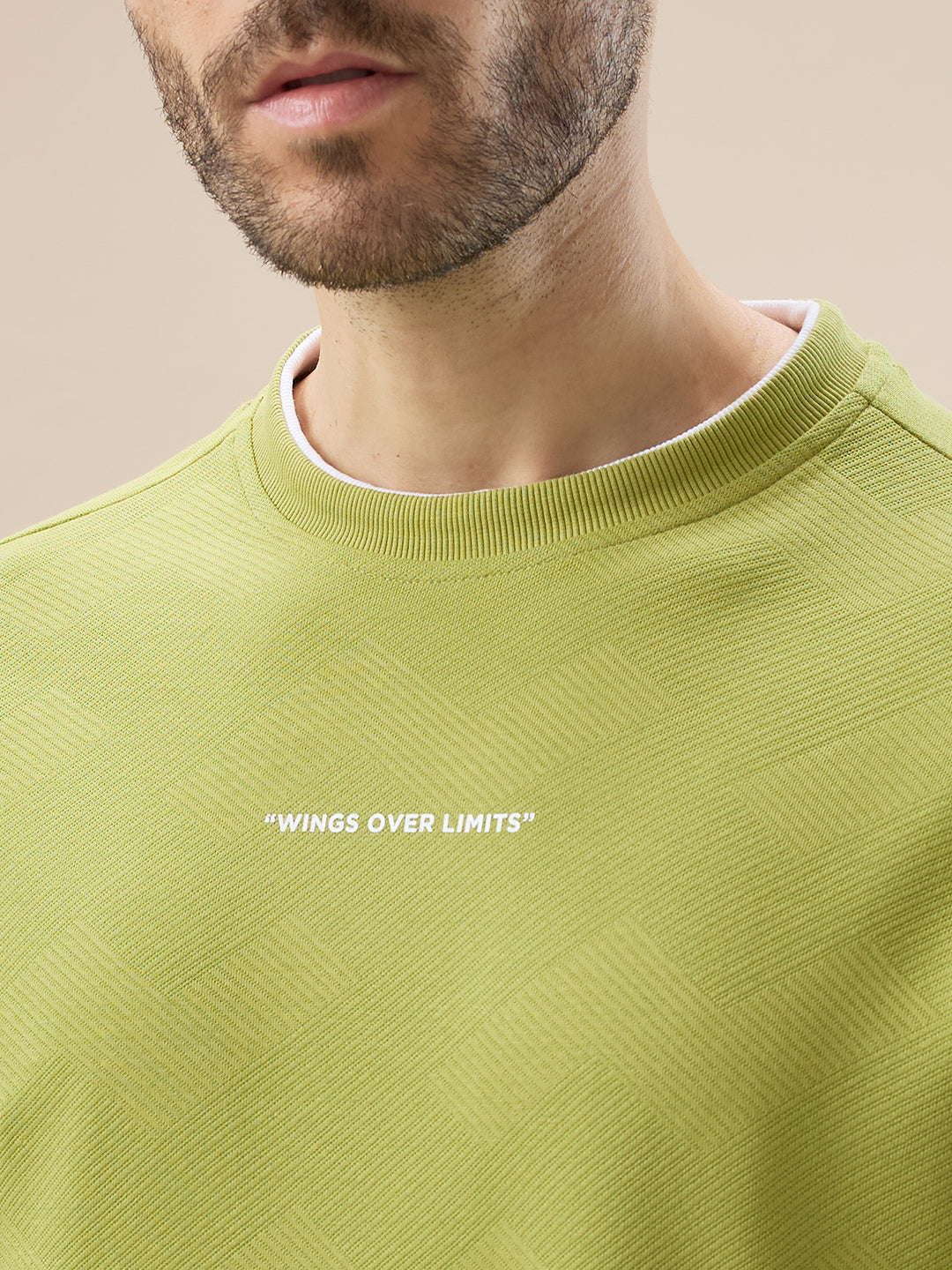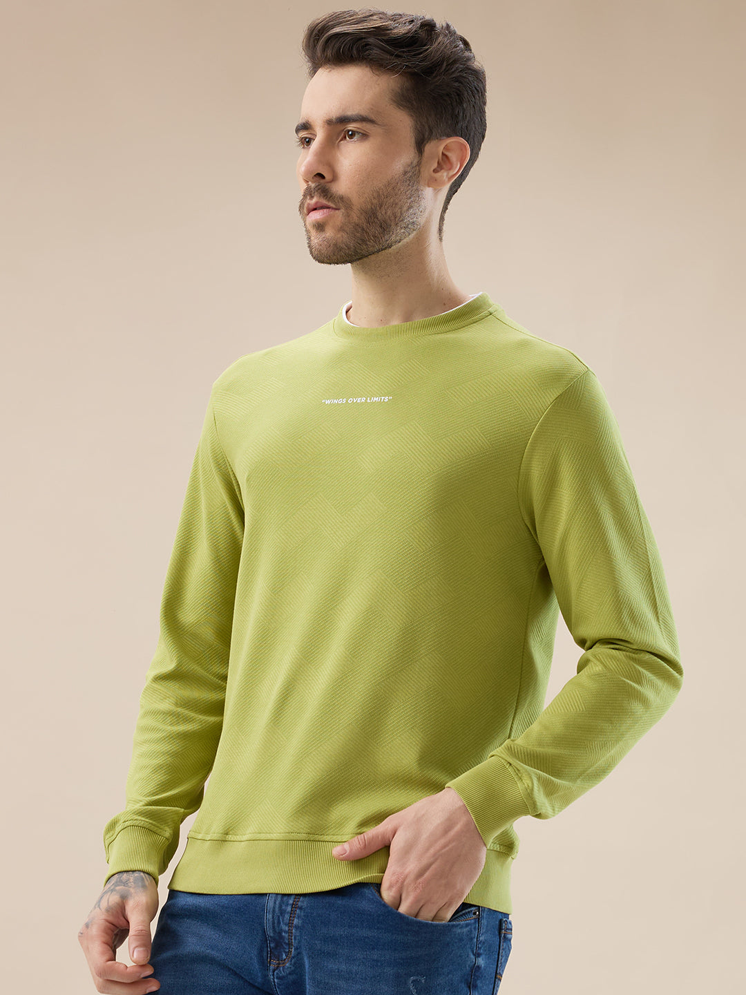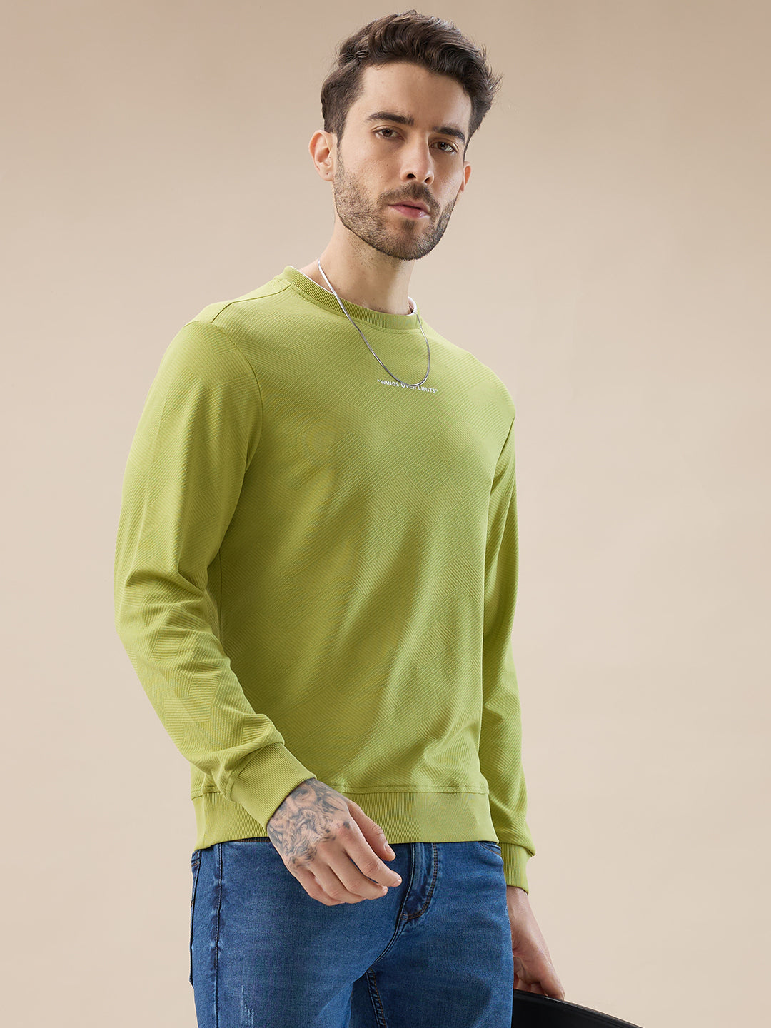 PASTEL GREEN Men's Textured Chest Typography Print Round Neck Full Slevees T-Shirt