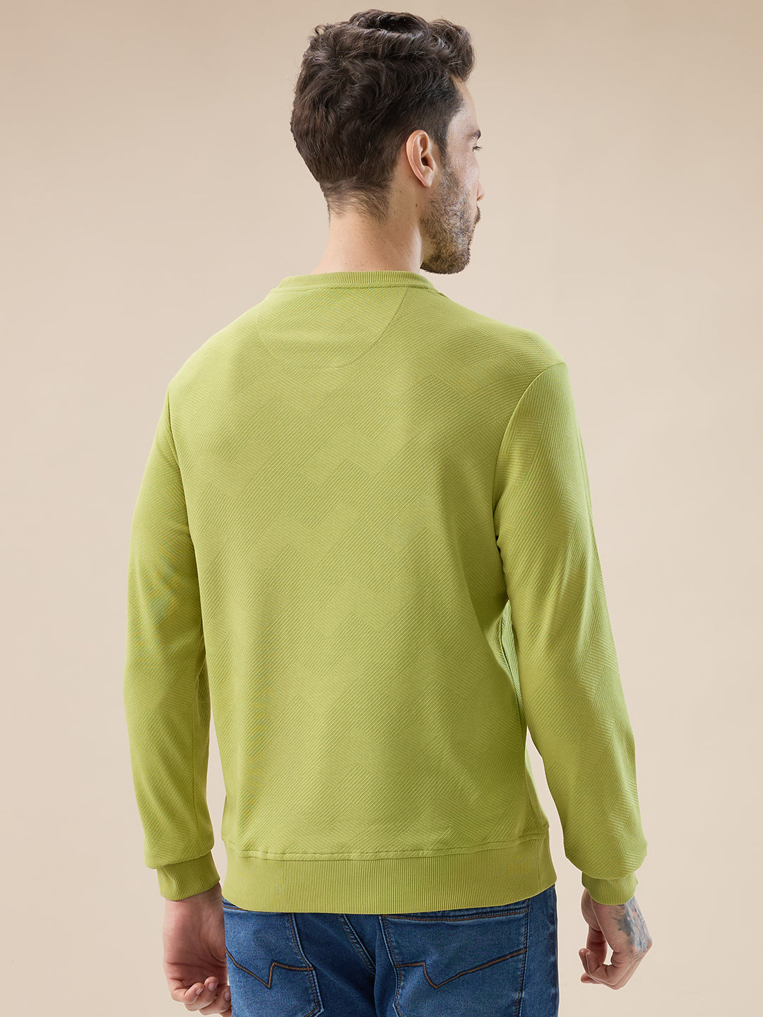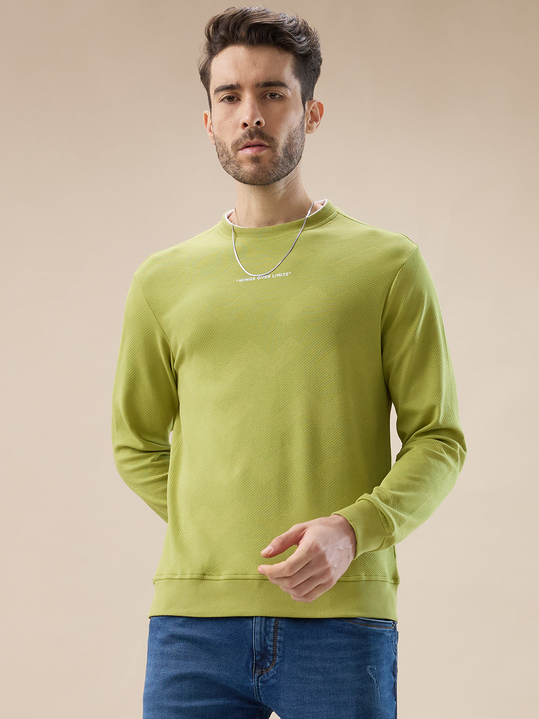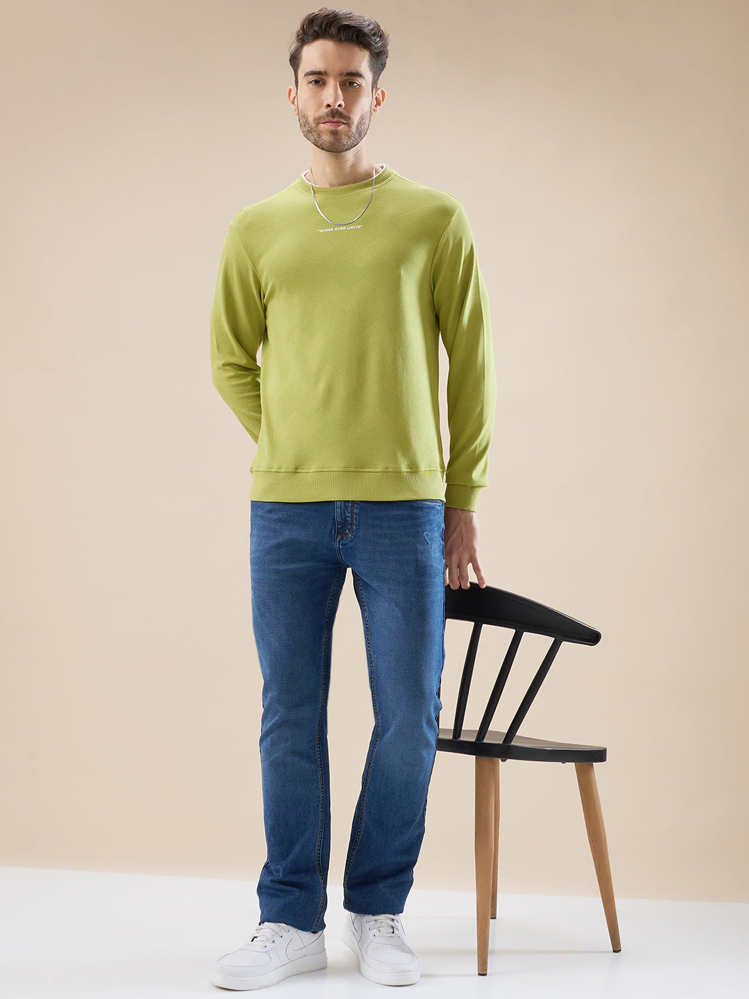 PASTEL GREEN Men's Textured Chest Typography Print Round Neck Full Slevees T-Shirt