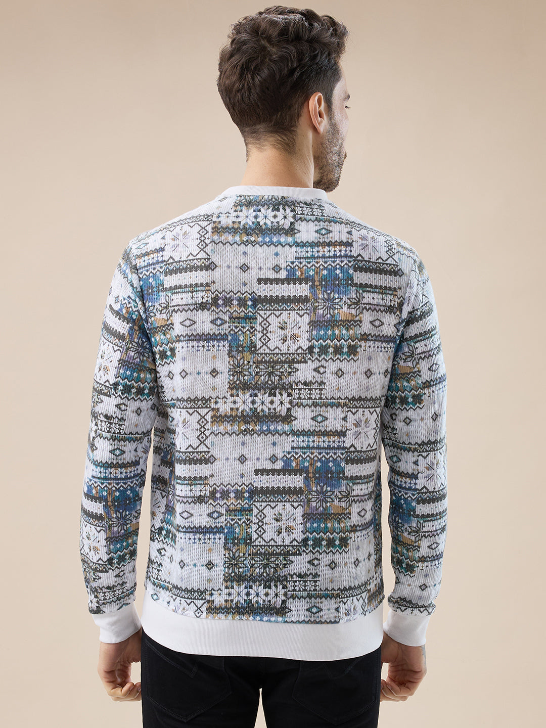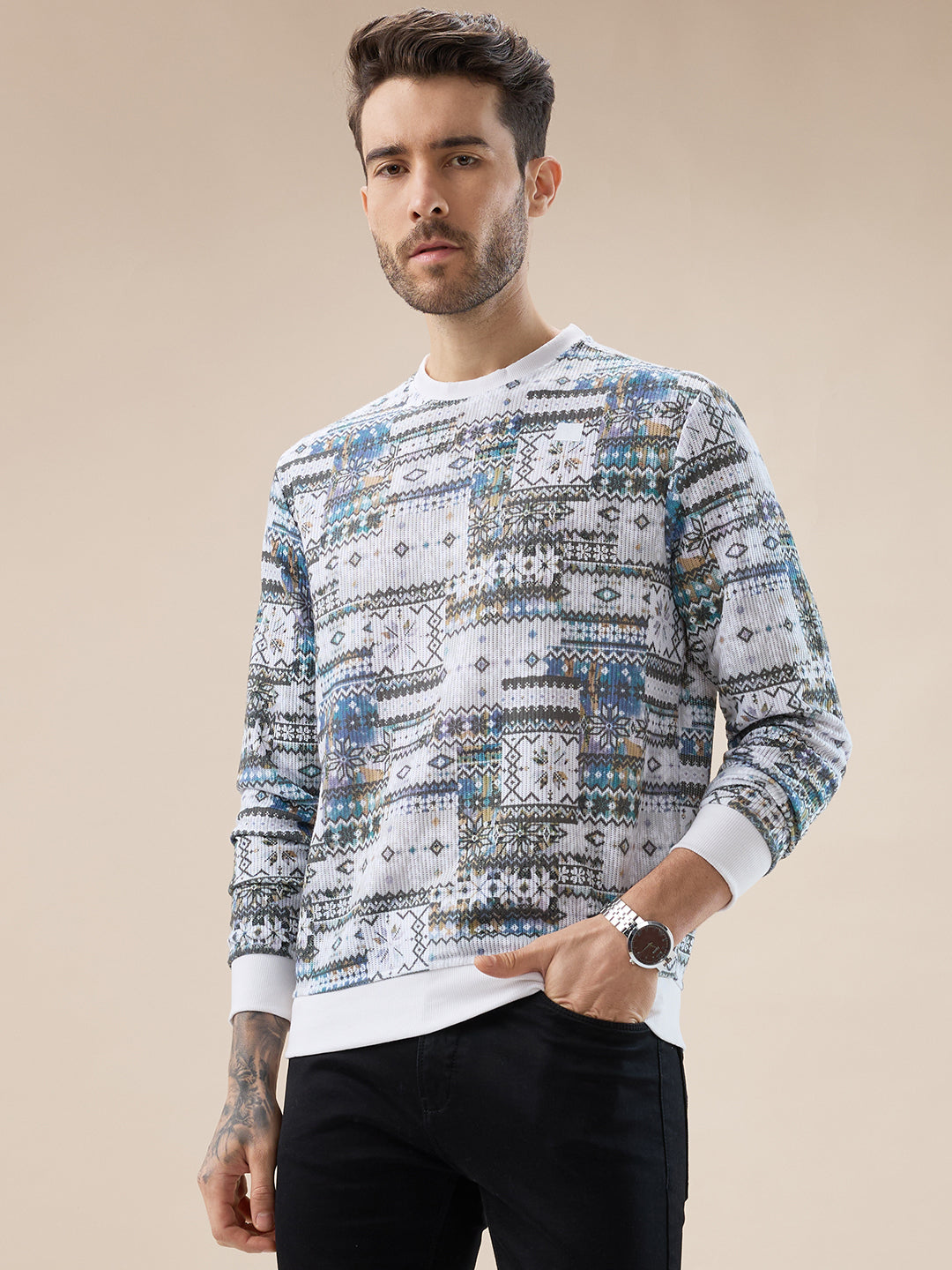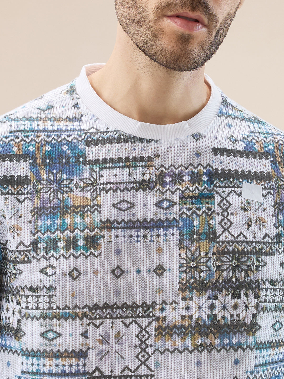 RUST Men's Abstract Geometric Print Round Neck Full Sleeves T-Shirt