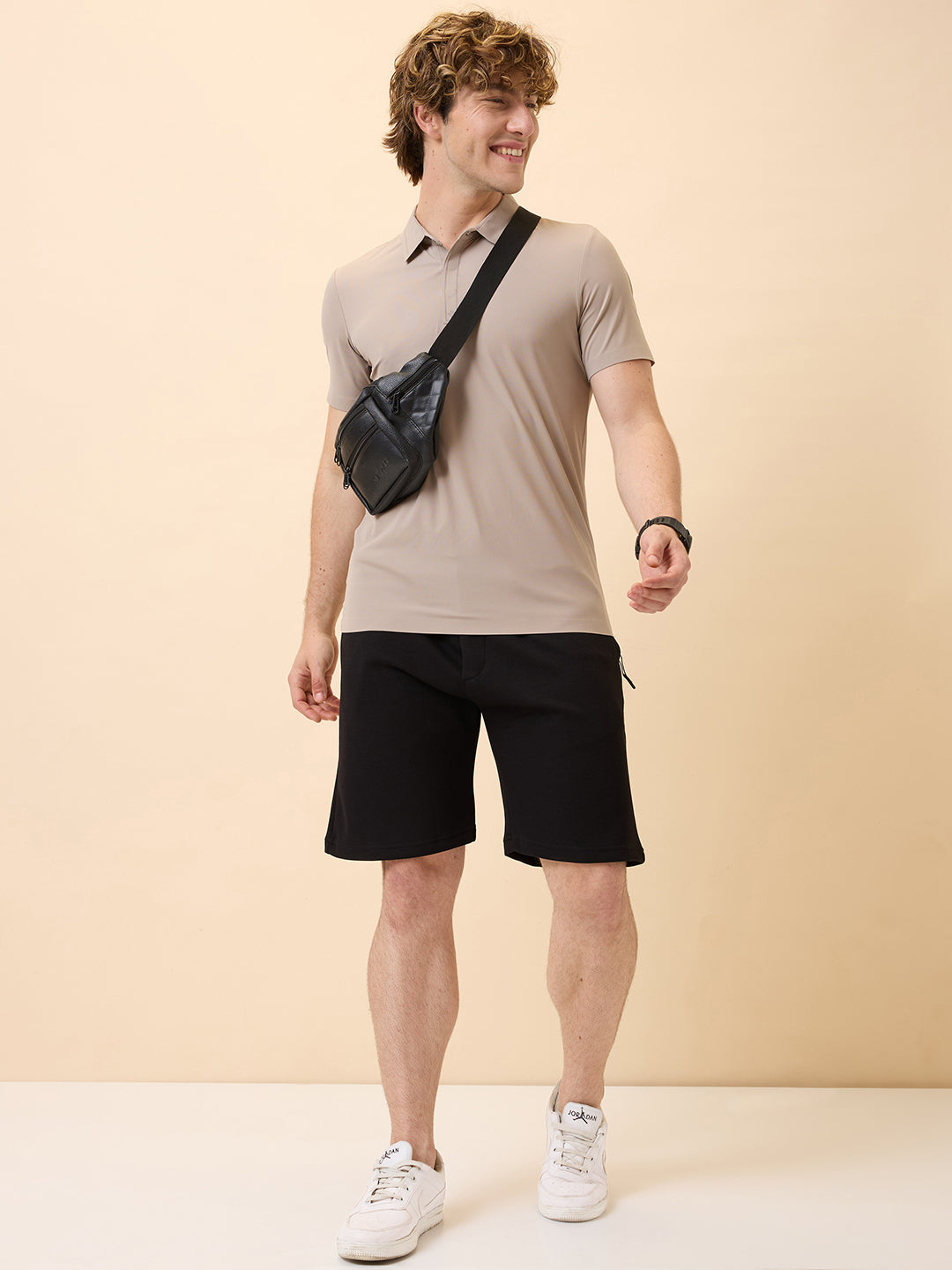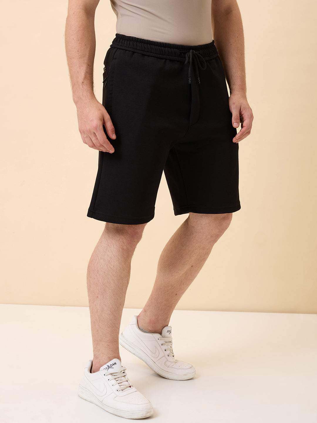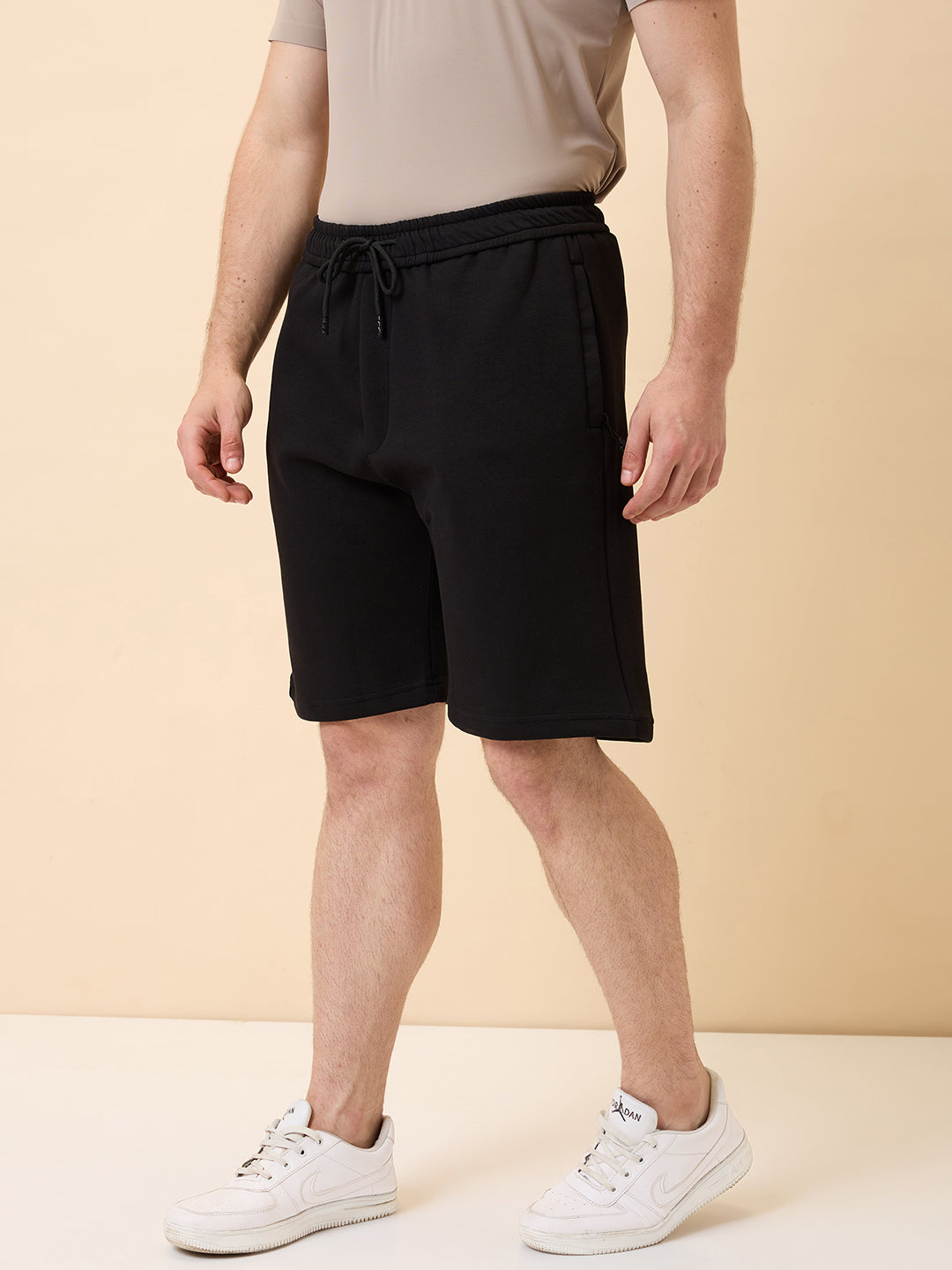 BLACK Men's Solid Regular Fit Drawstring Shorts