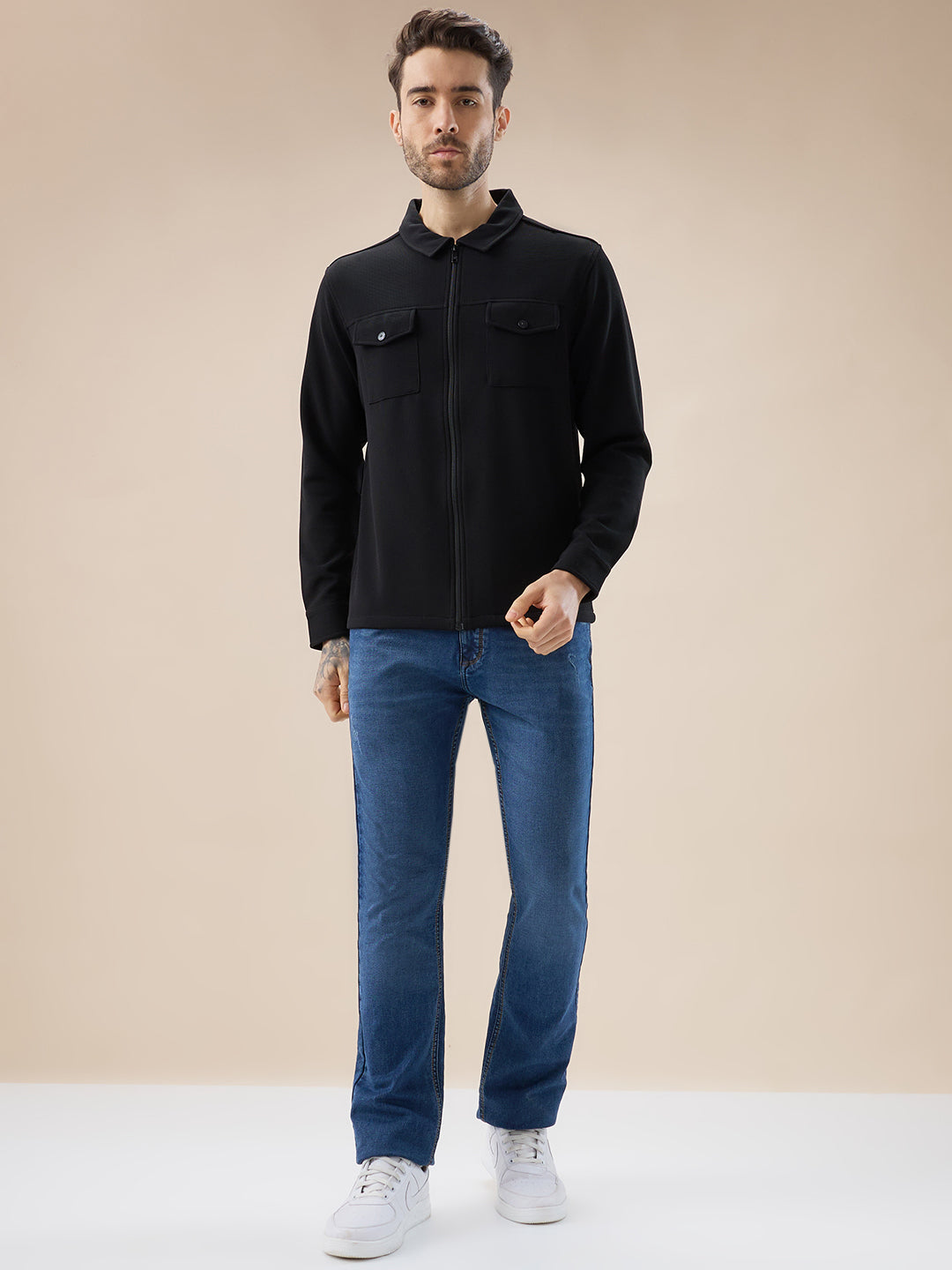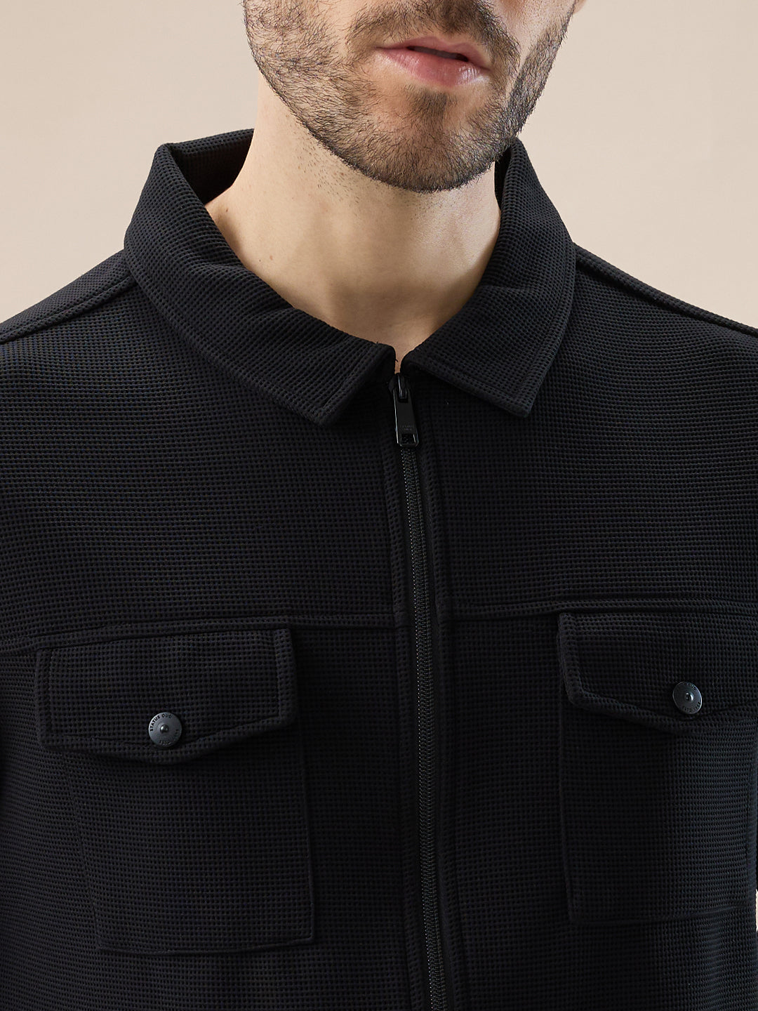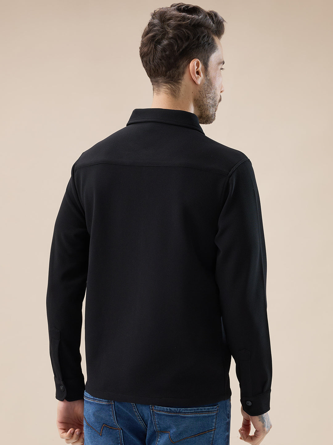 BLACK Men's Solid Textured Regular Fit Shacket with Zipper Clouser