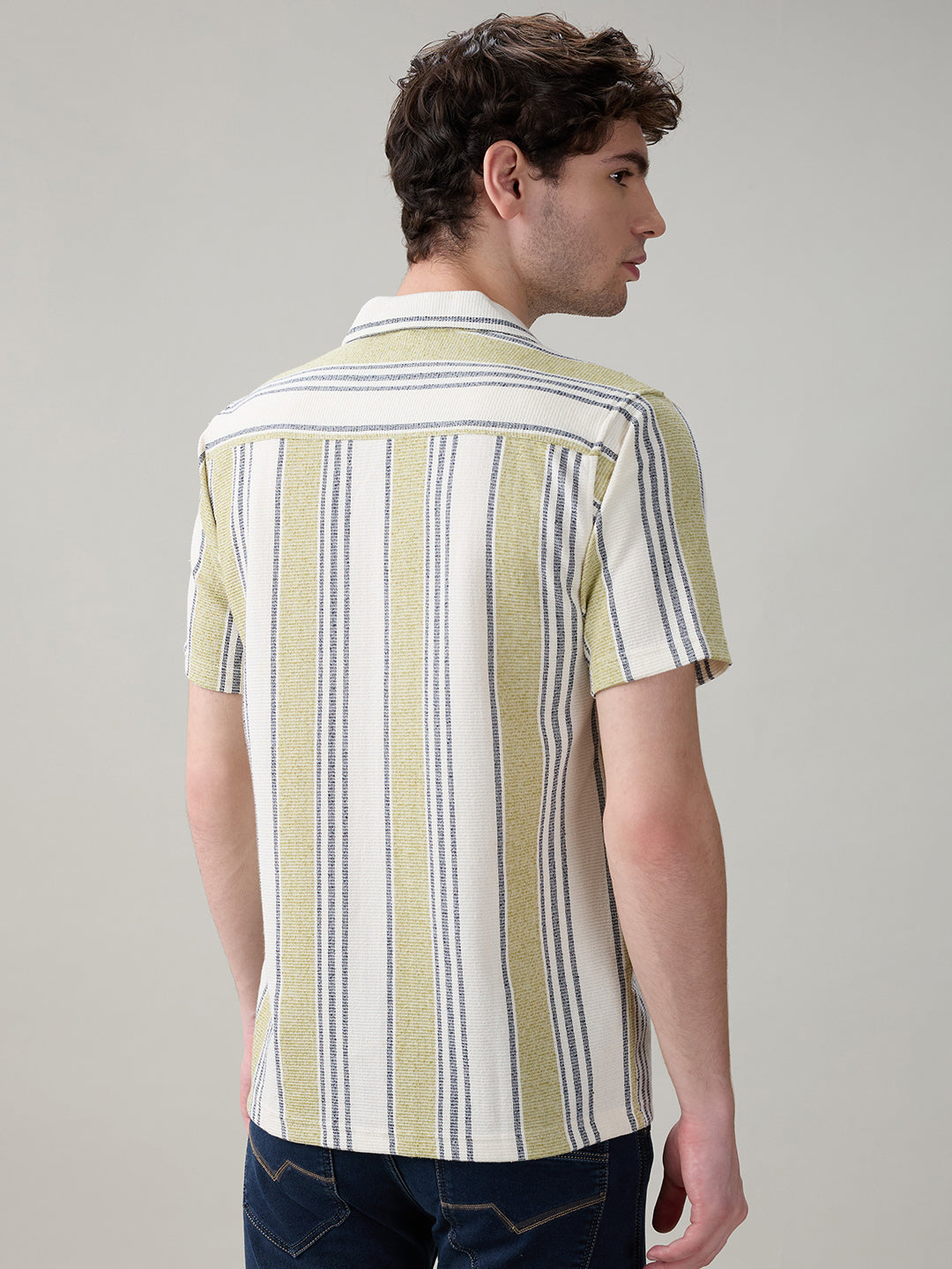 SAGE Men's Striped Cuban Collar Half Sleeves Regular Fit Shirt