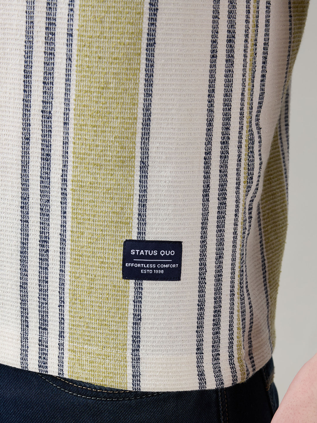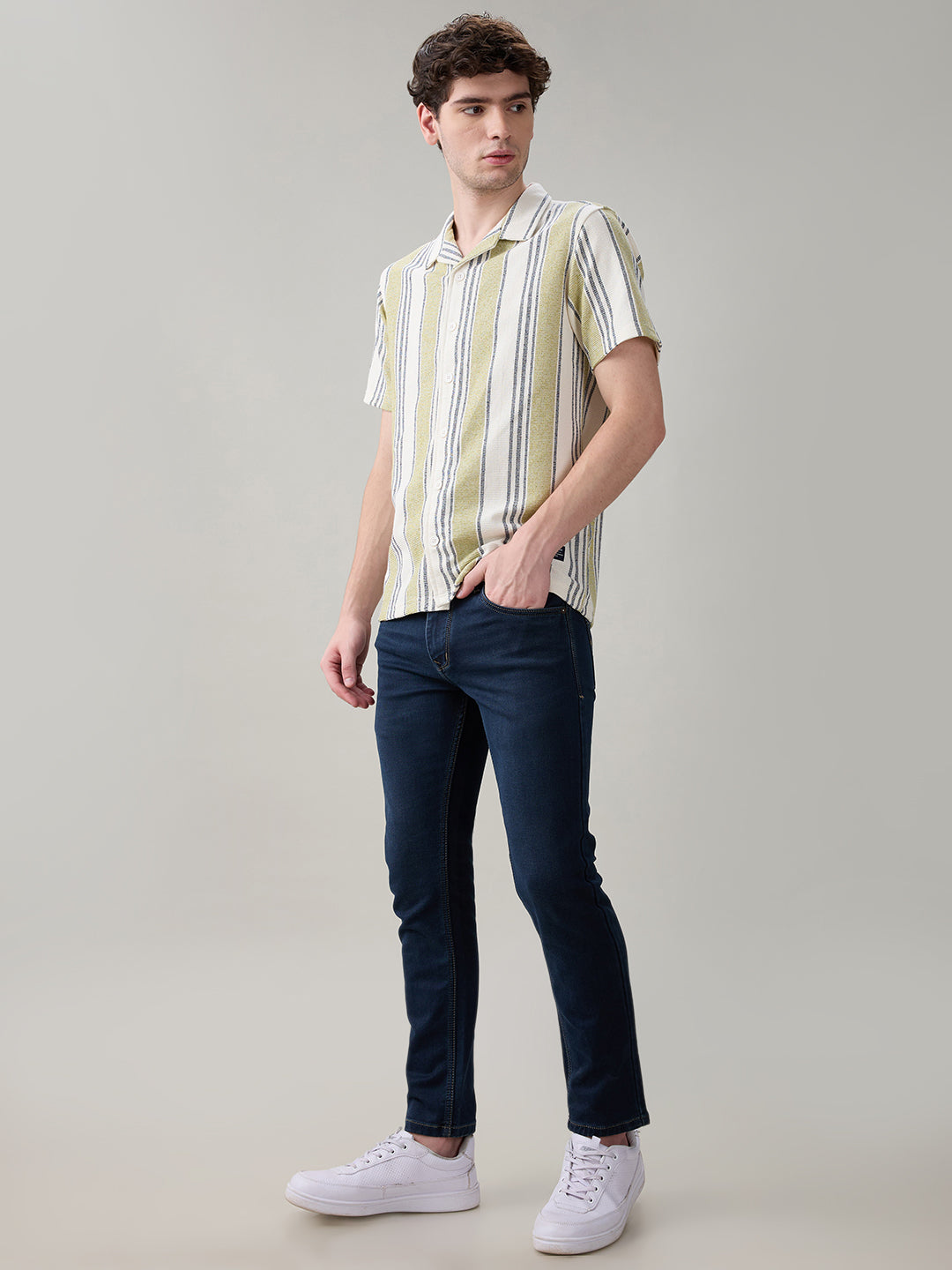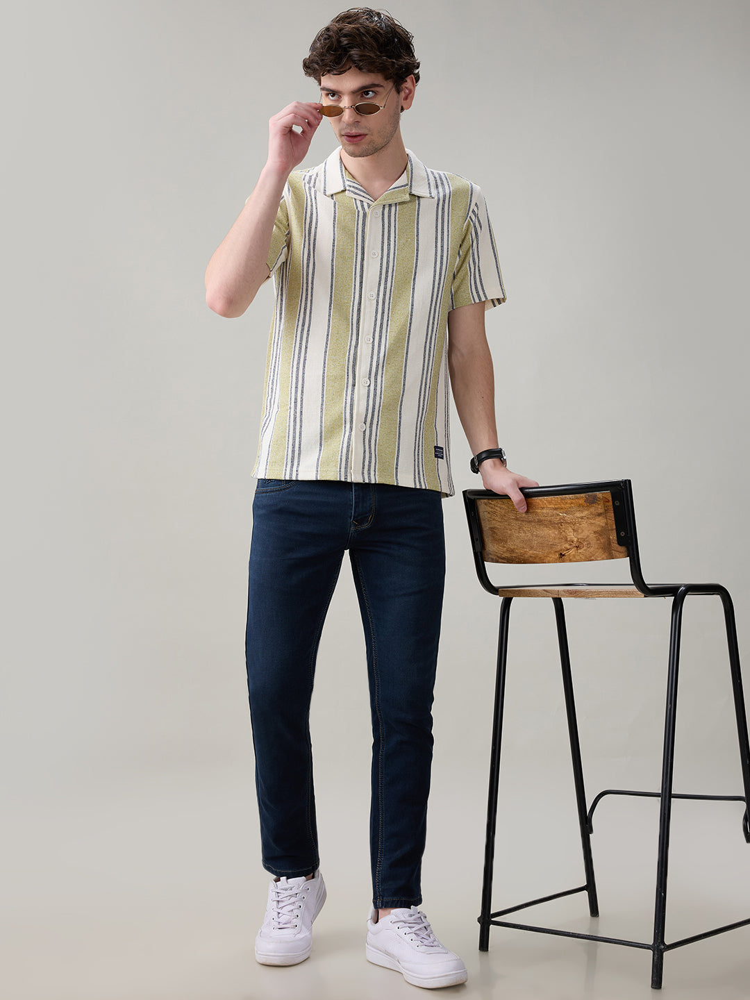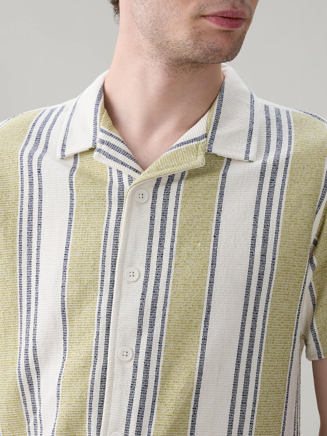 SAGE Men's Striped Cuban Collar Half Sleeves Regular Fit Shirt