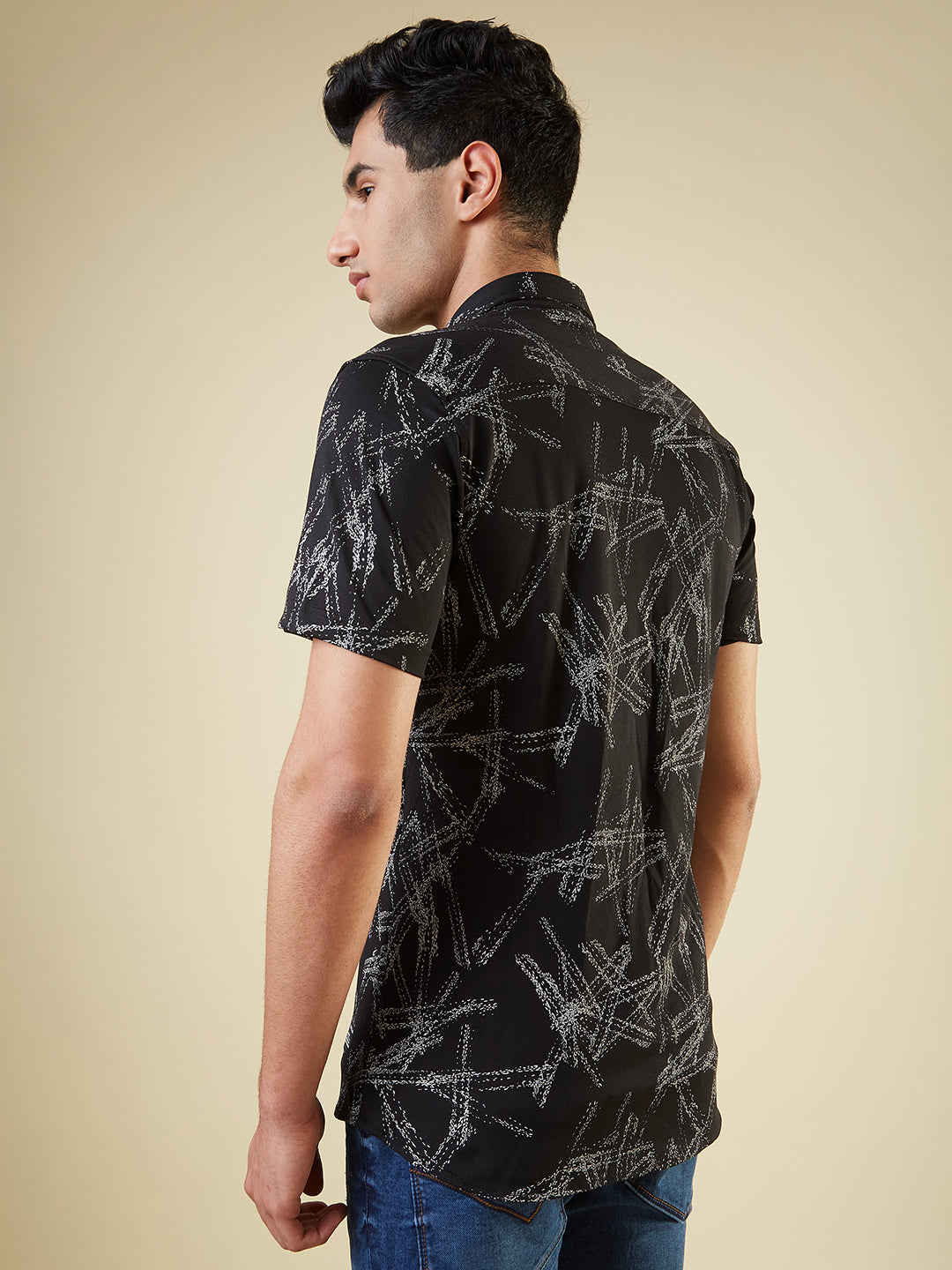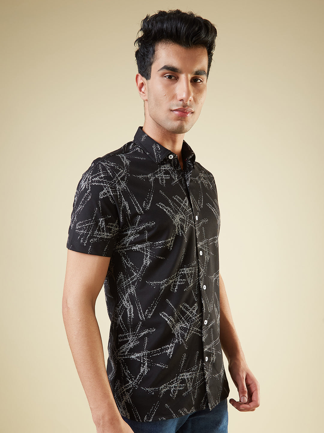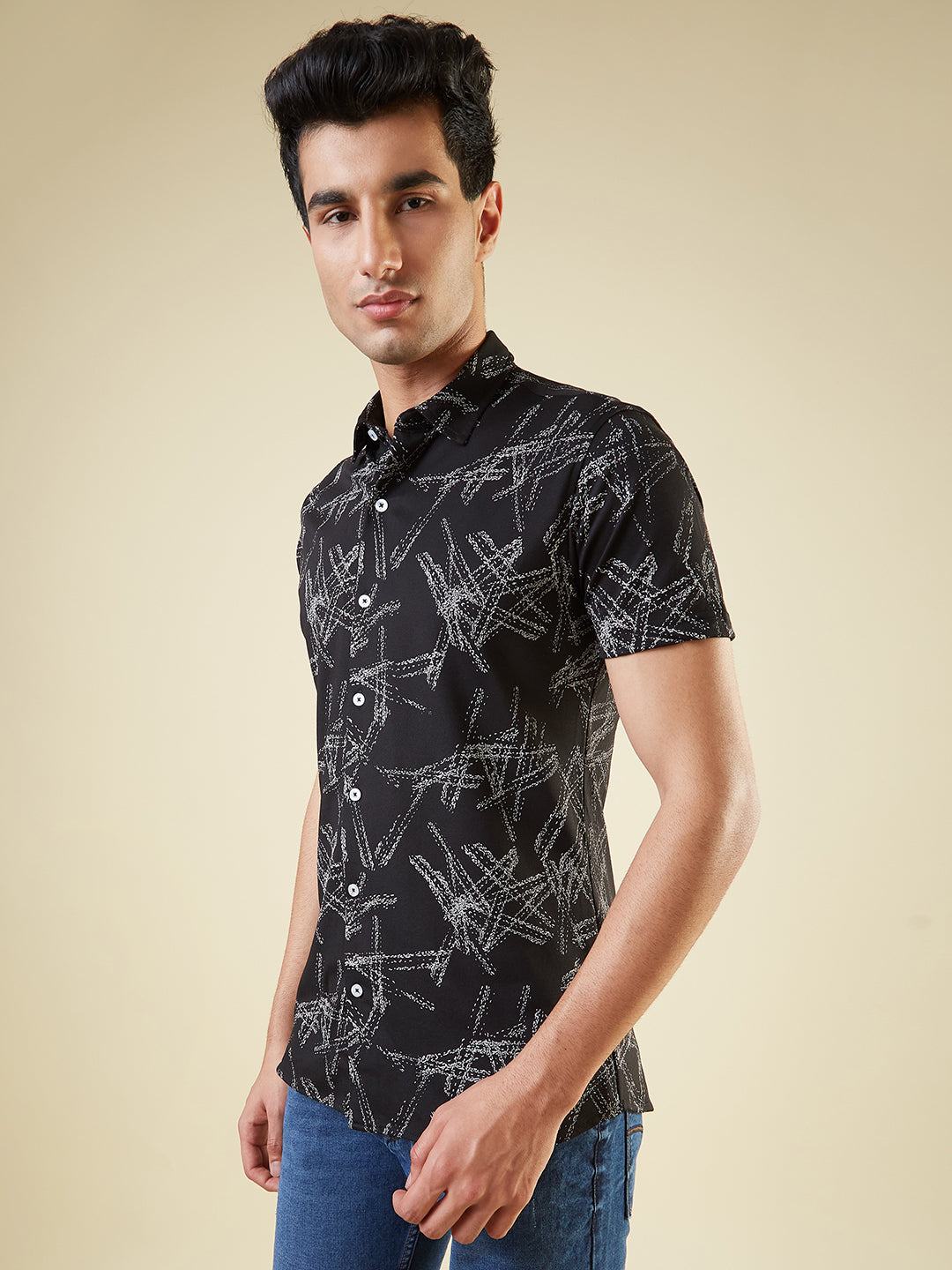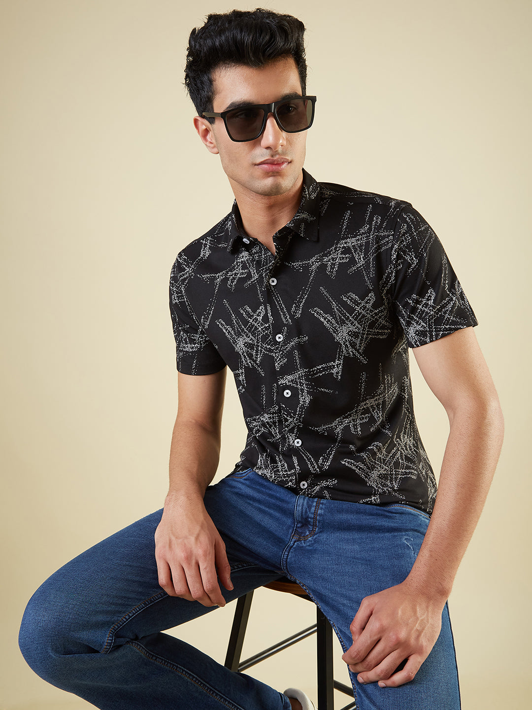 Black Mens Abstract Printed Half Sleeves Regular Fit Shirts