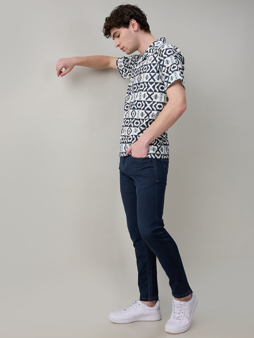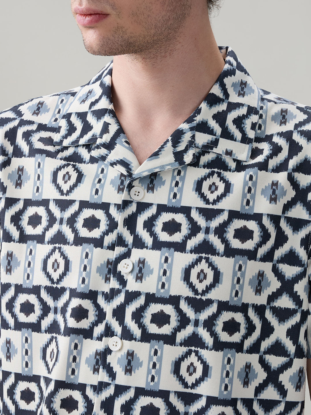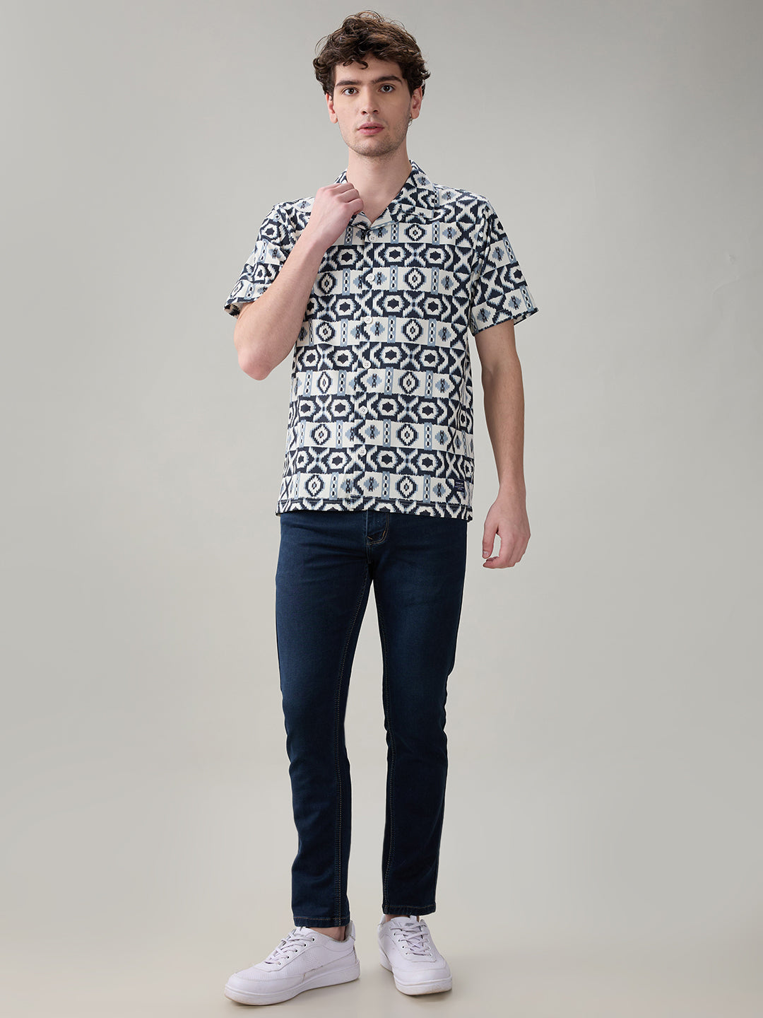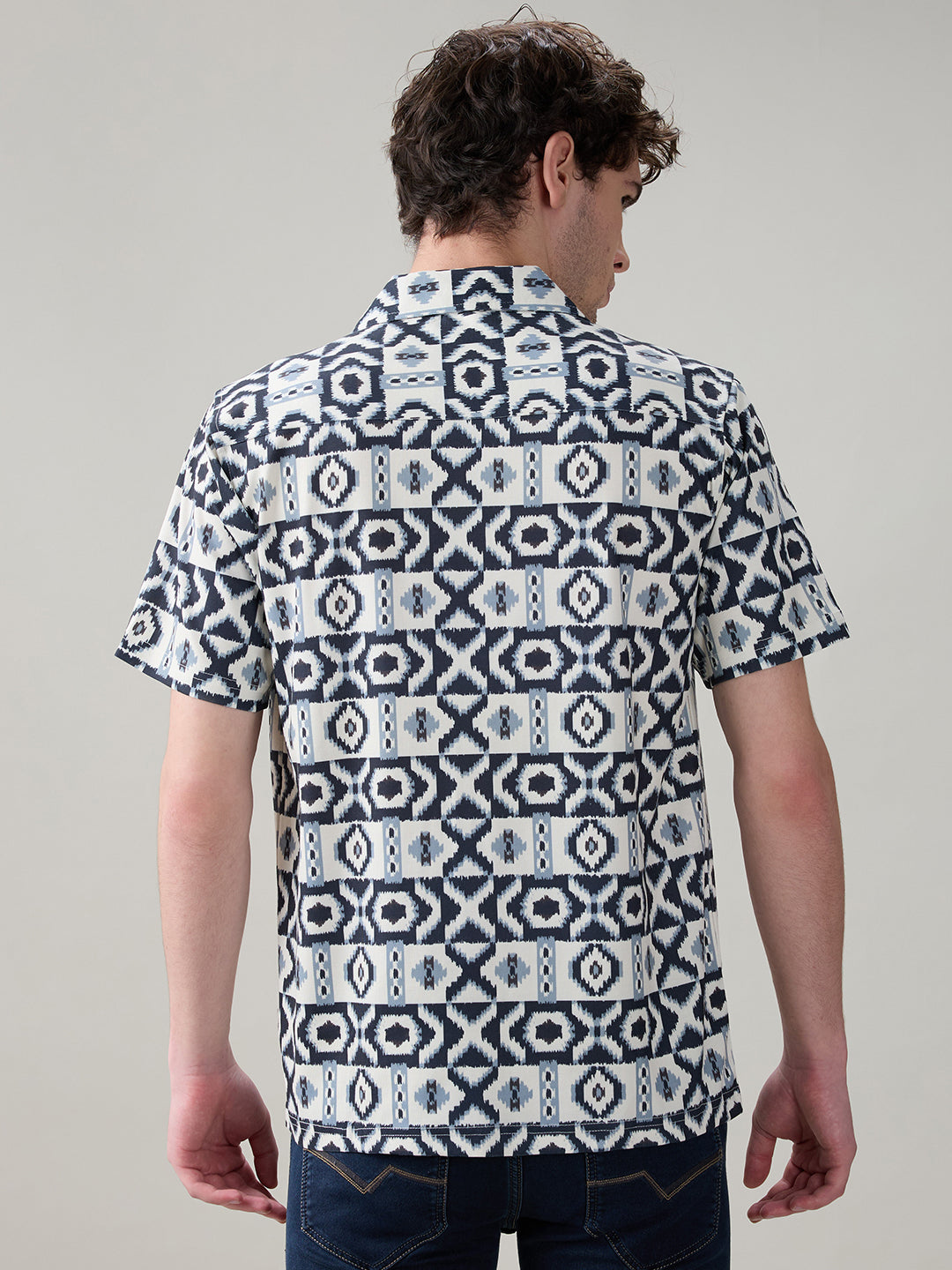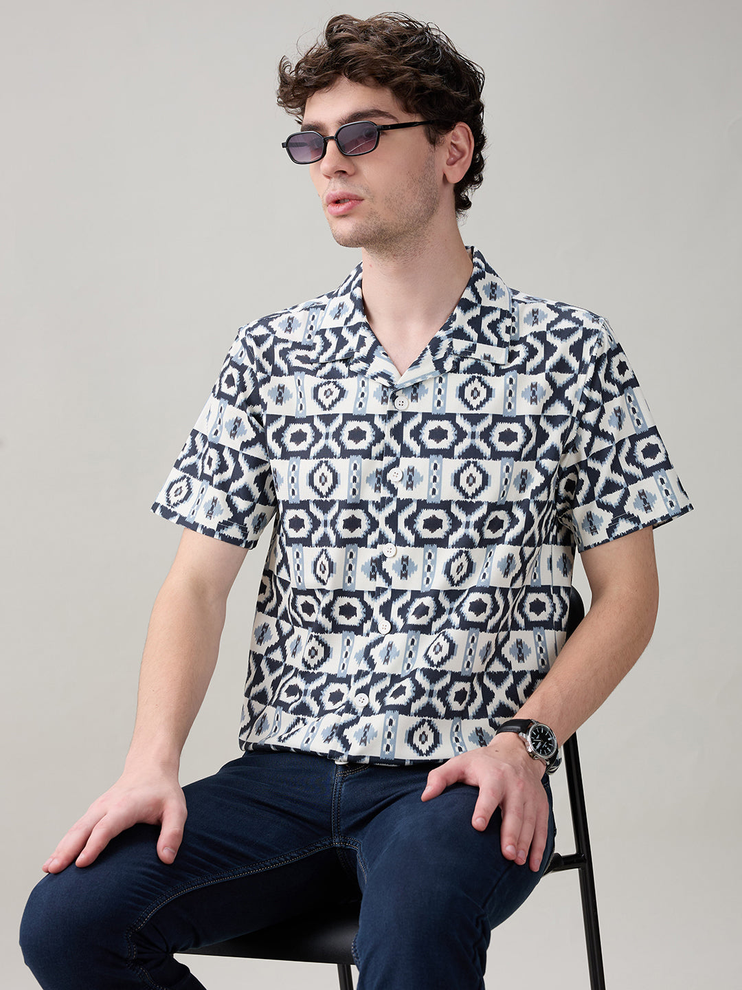 OFF WHITE Men’s Geometric Printed Cuban Collar Half Sleeves Regular Fit Shirtt