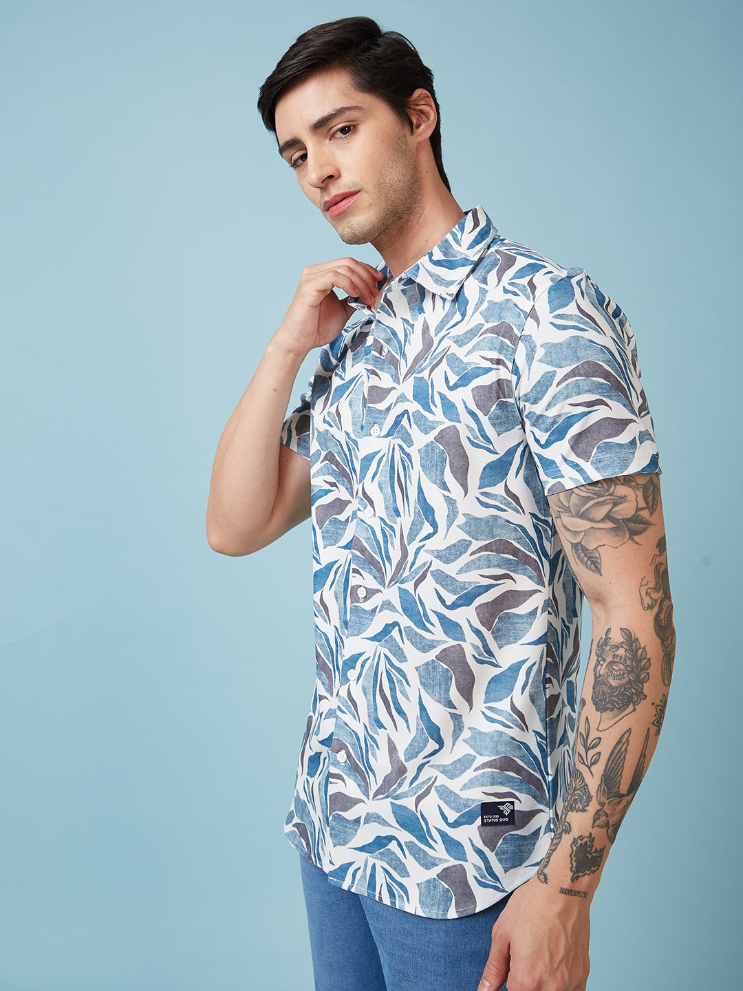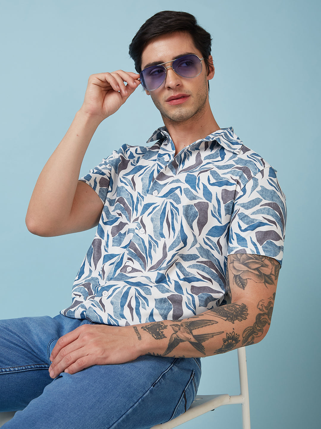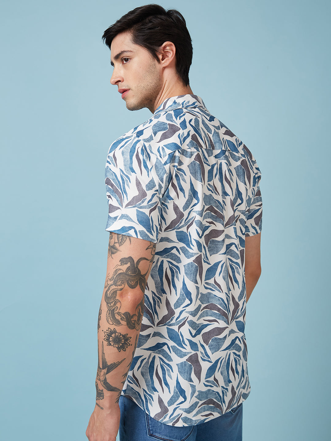 White/Blue Mens Printed Half Sleeves Shirt