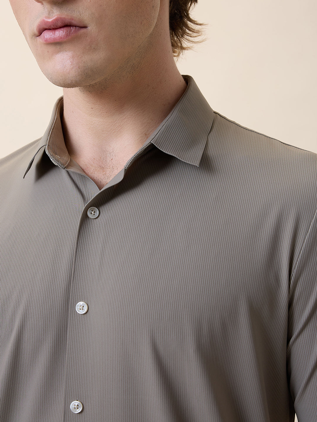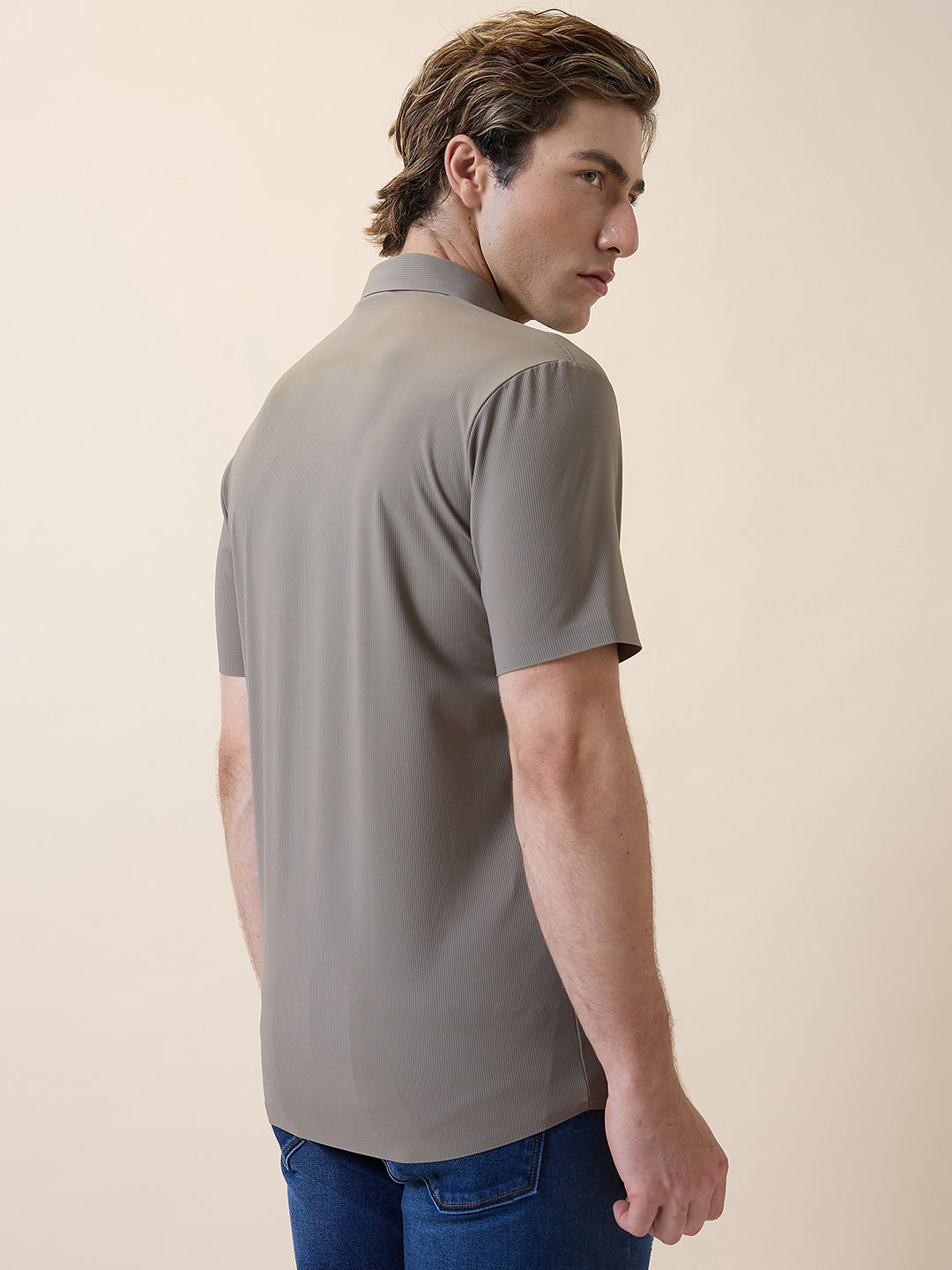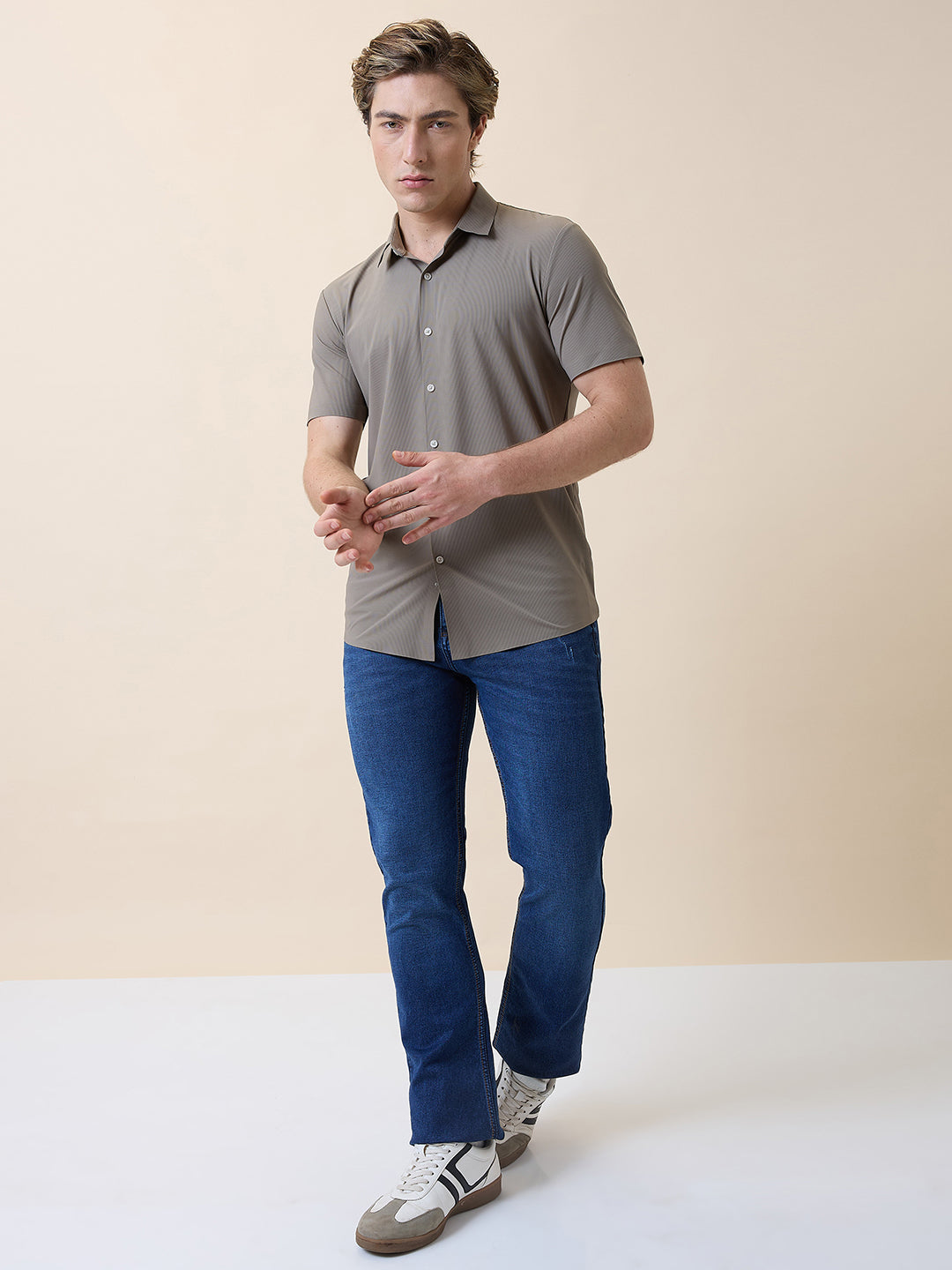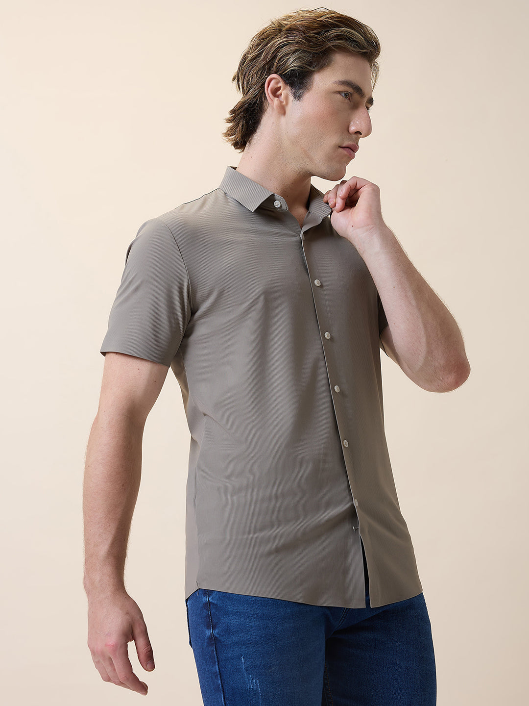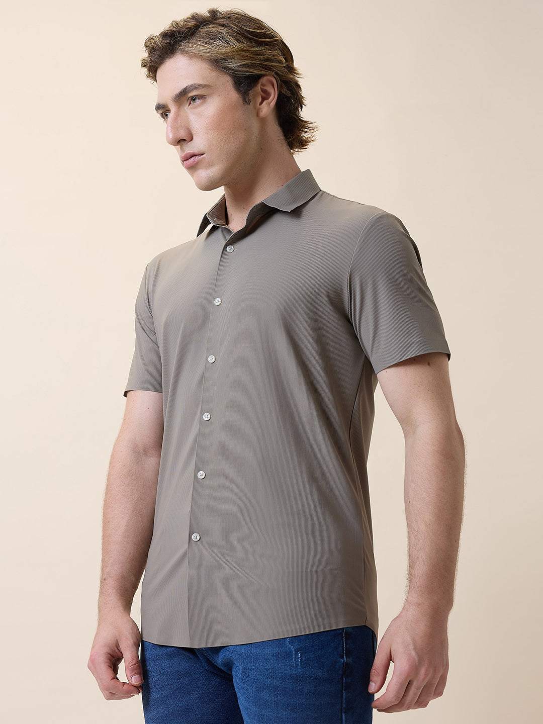 KHAKI Men's Premium Solid Polo Collar Half Sleeves Regular Fit Shirt