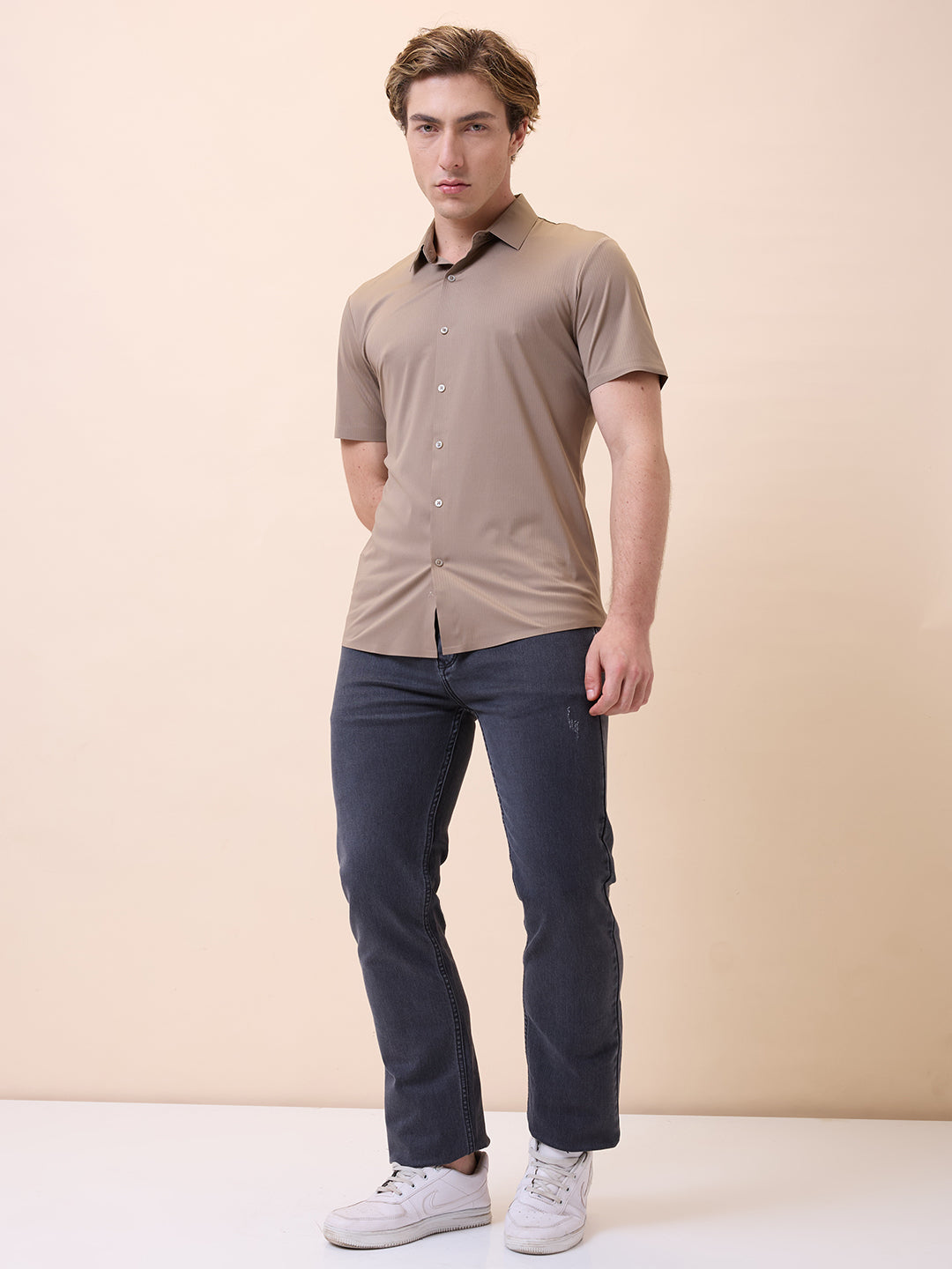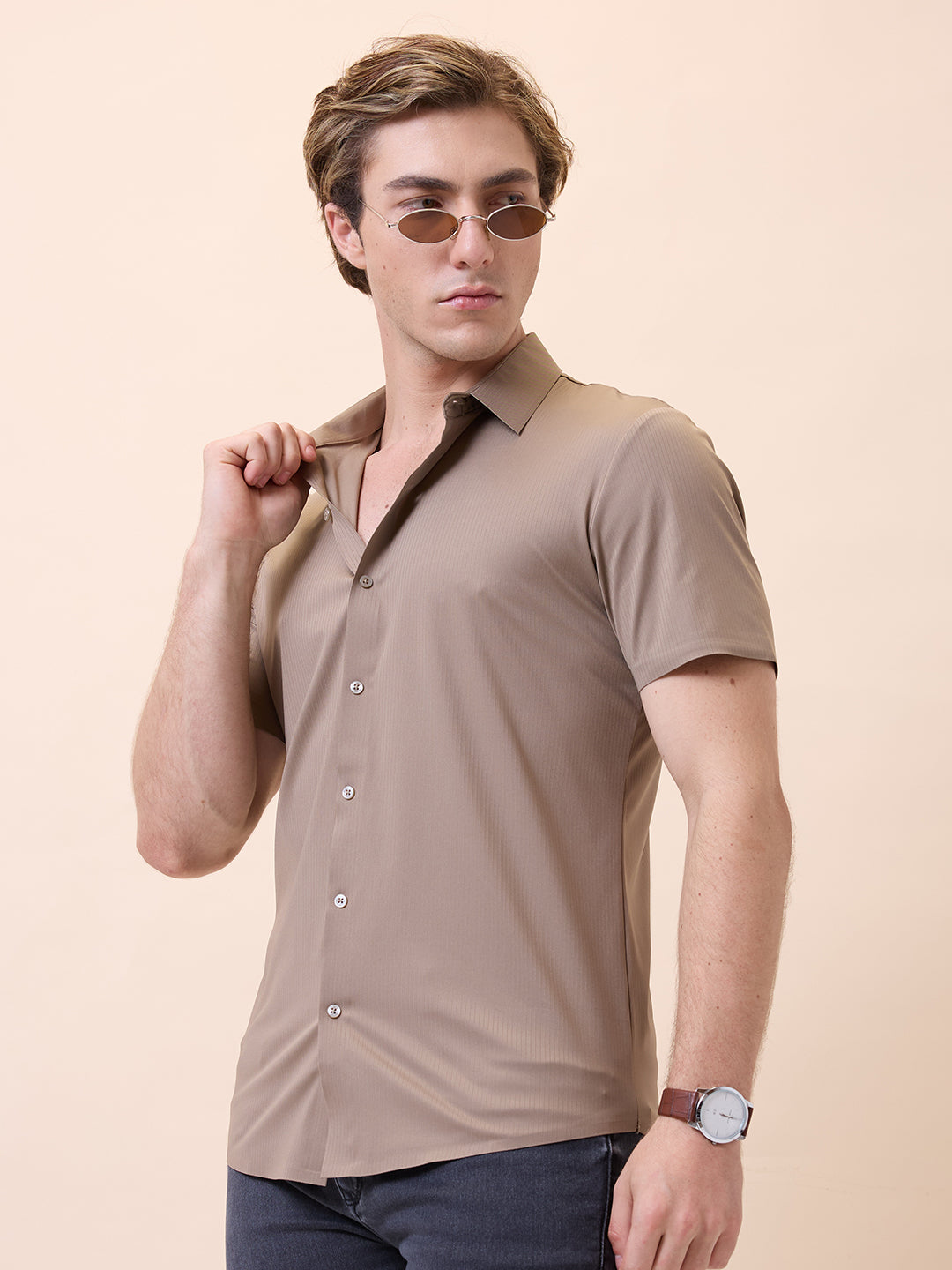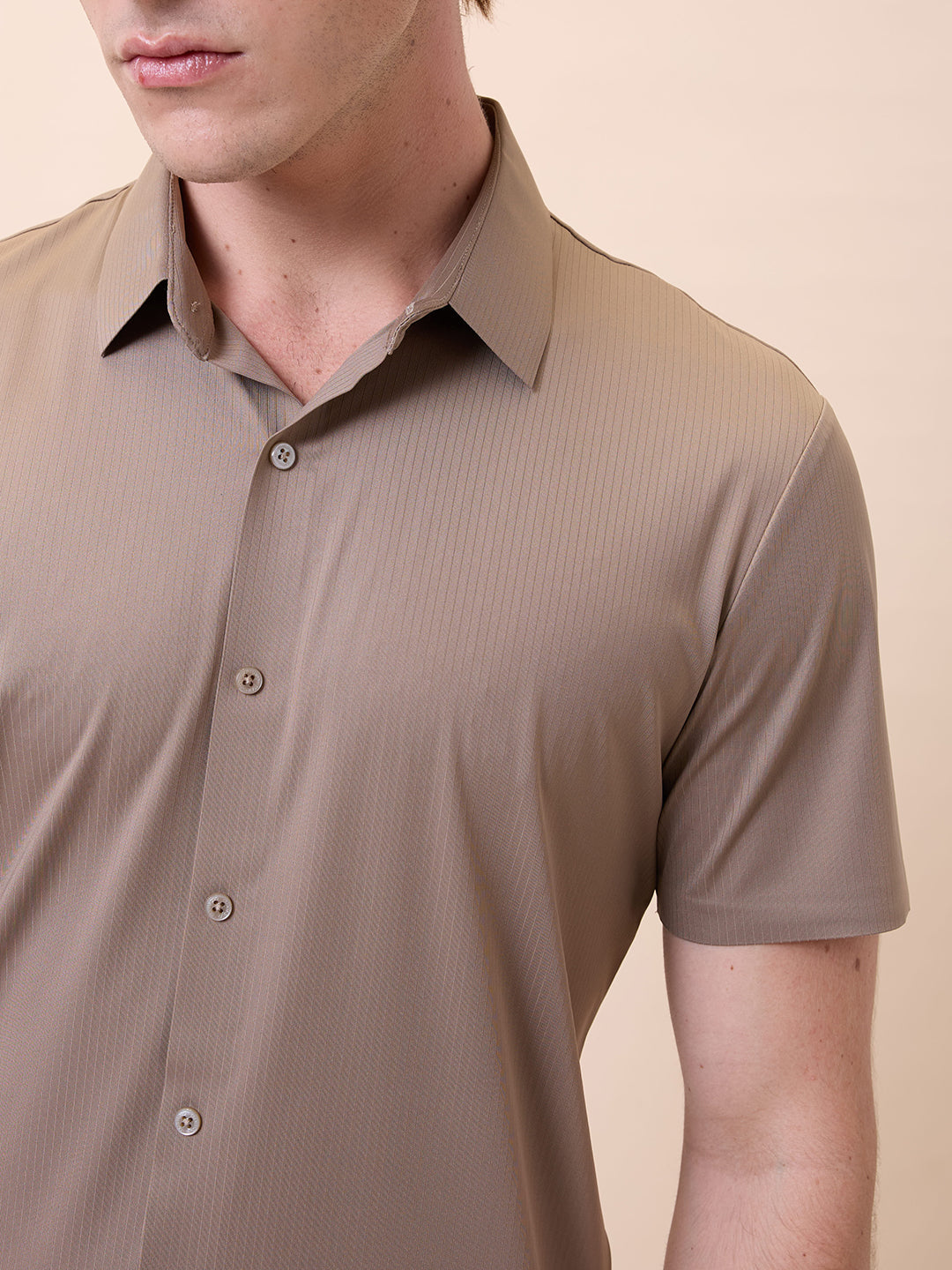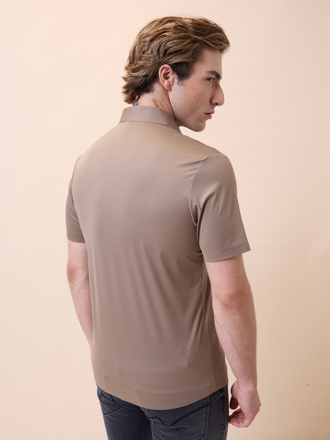 KHAKI Men's Premium Solid Polo Collar Half Sleeves Regular Fit Shirt