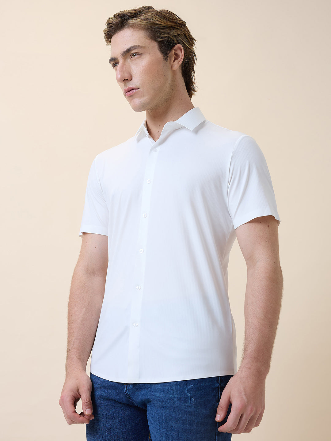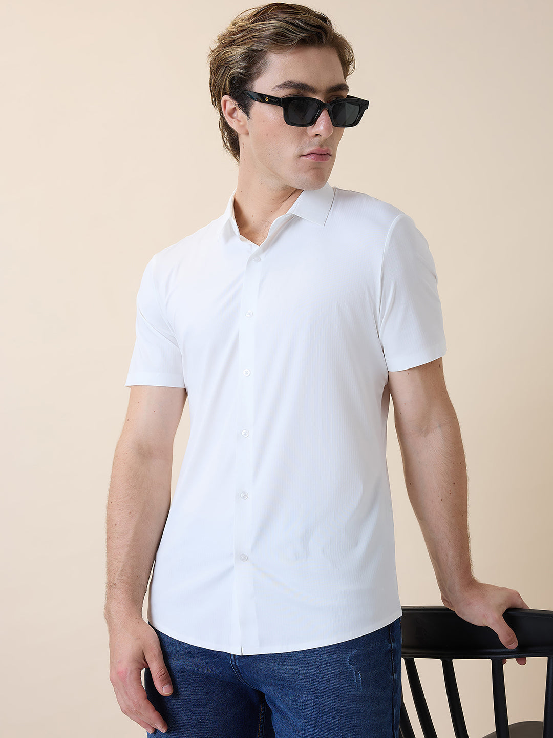 OFF WHITE Men's Premium Solid Polo Collar Half Sleeves Regular Fit Shirt
