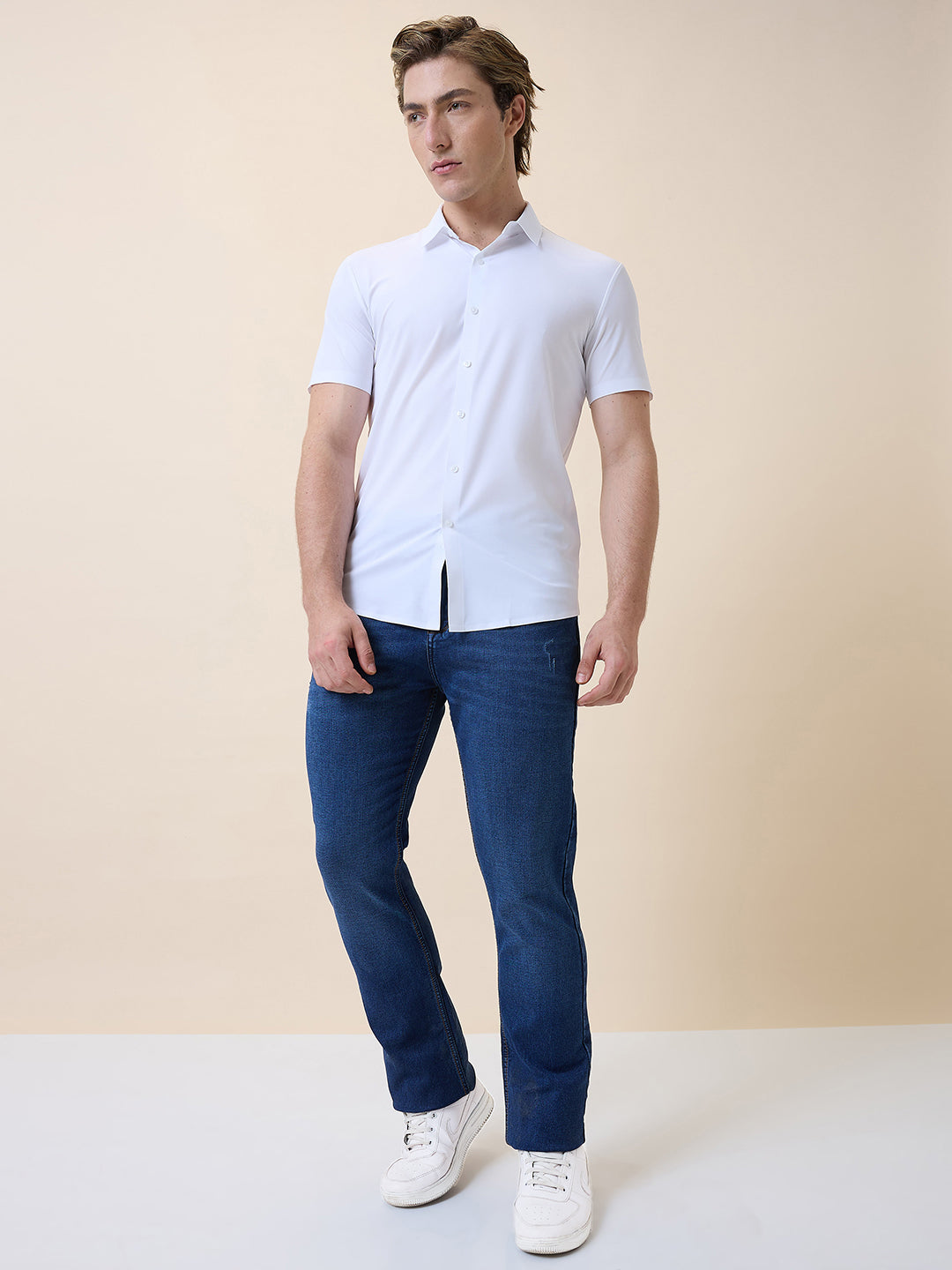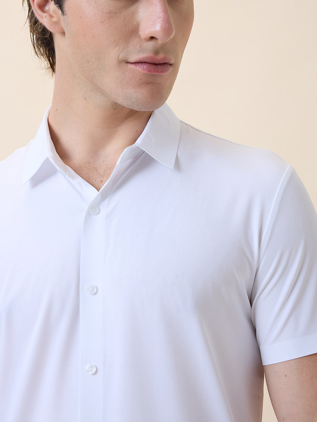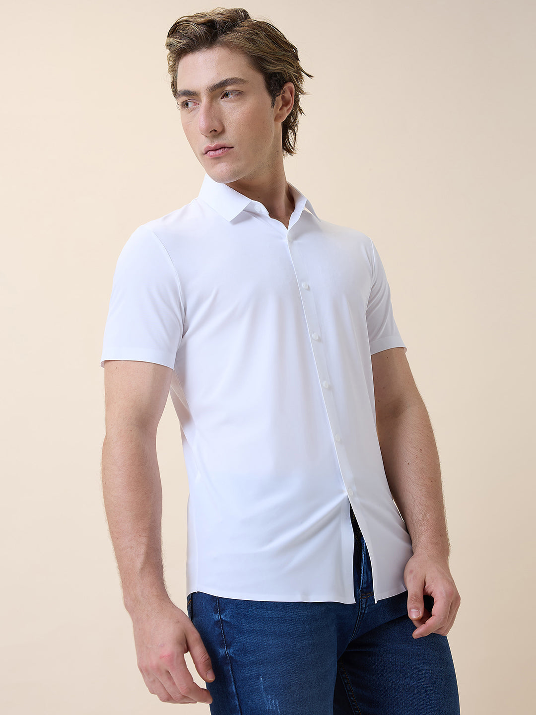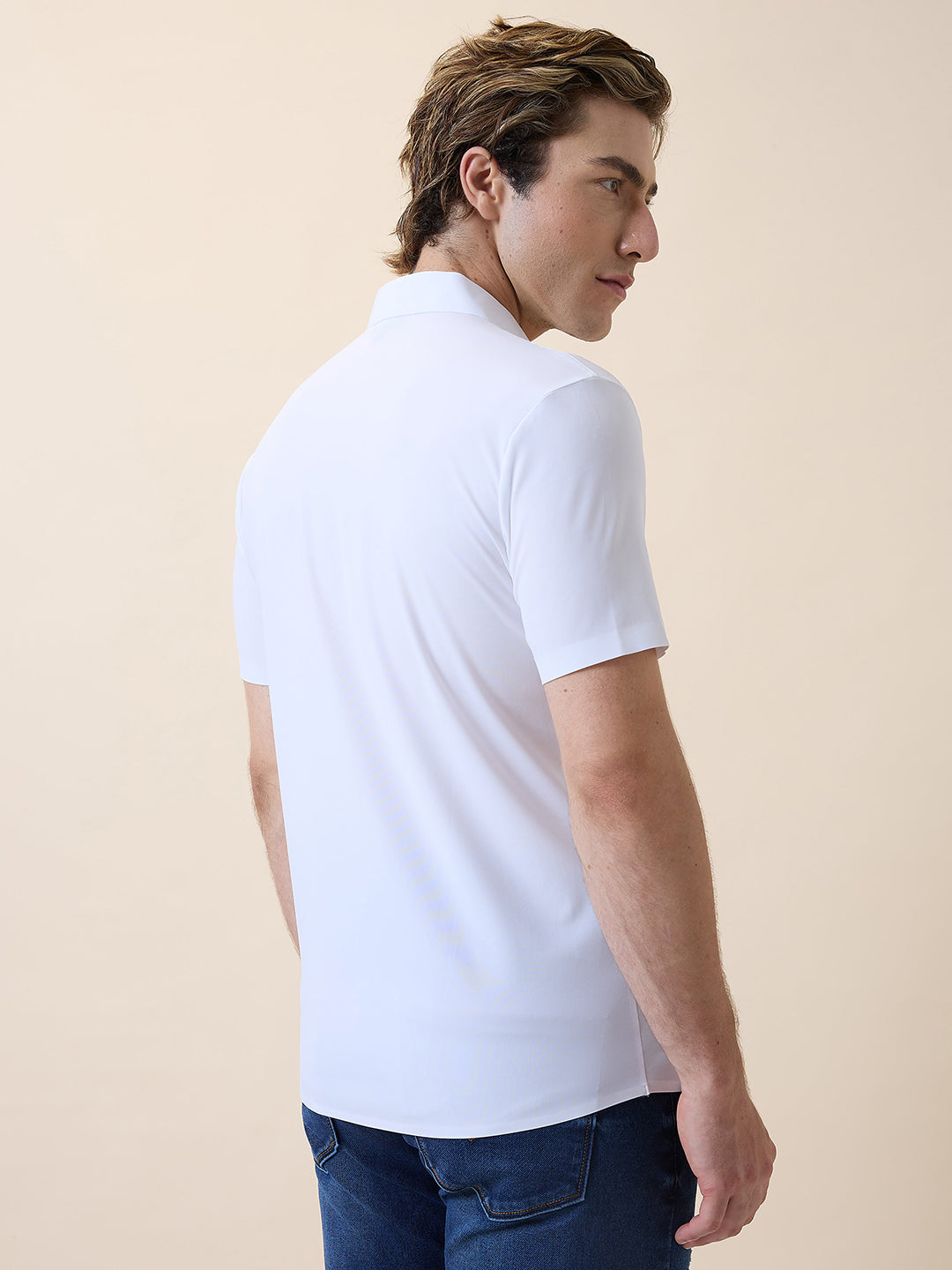 WHITE Men's Premium Solid Polo Collar Half Sleeves Regular Fit Shirt
