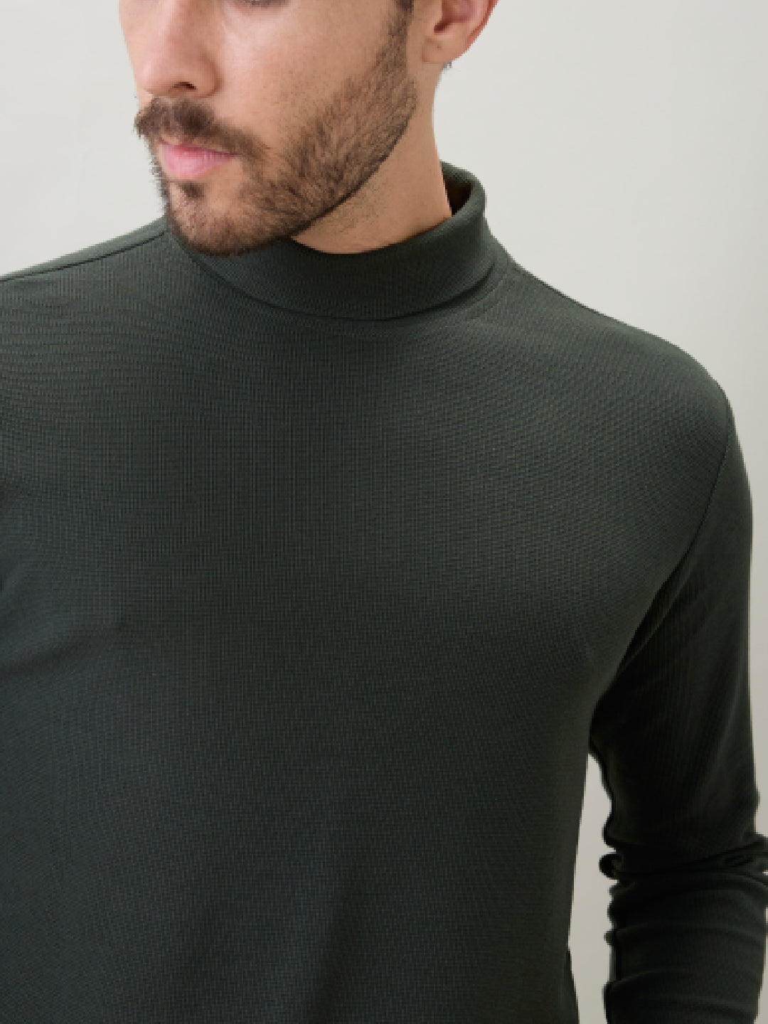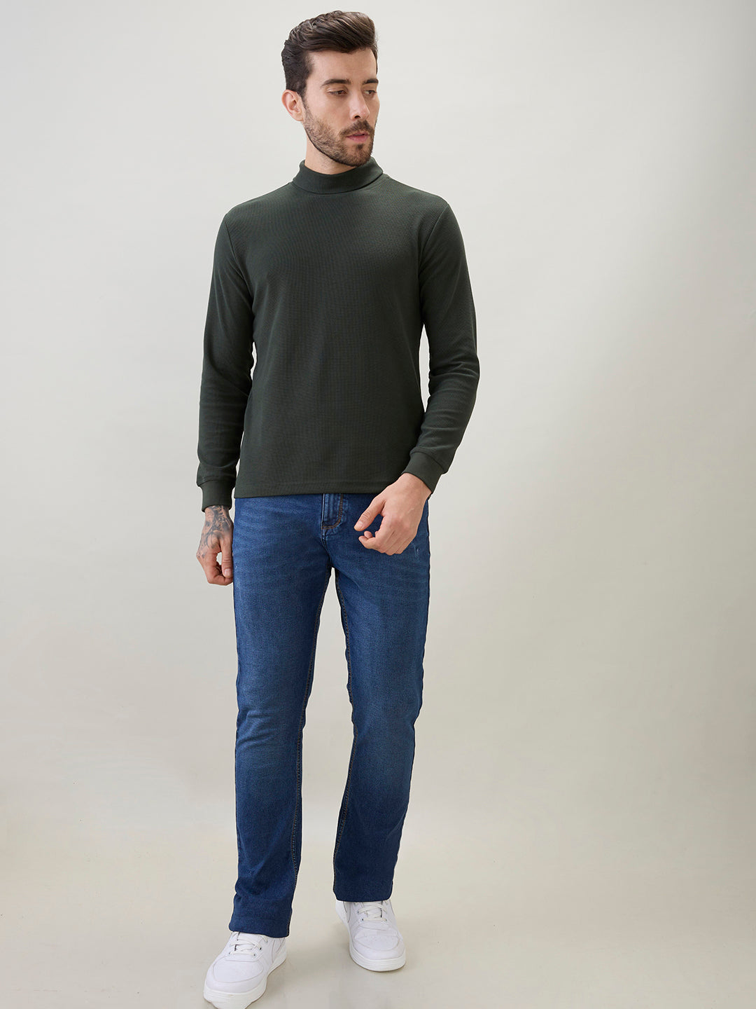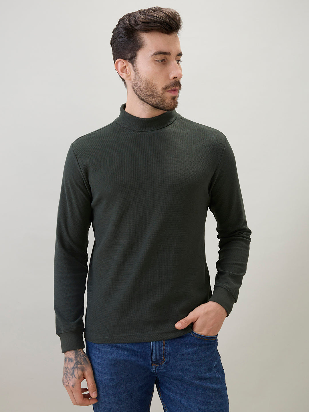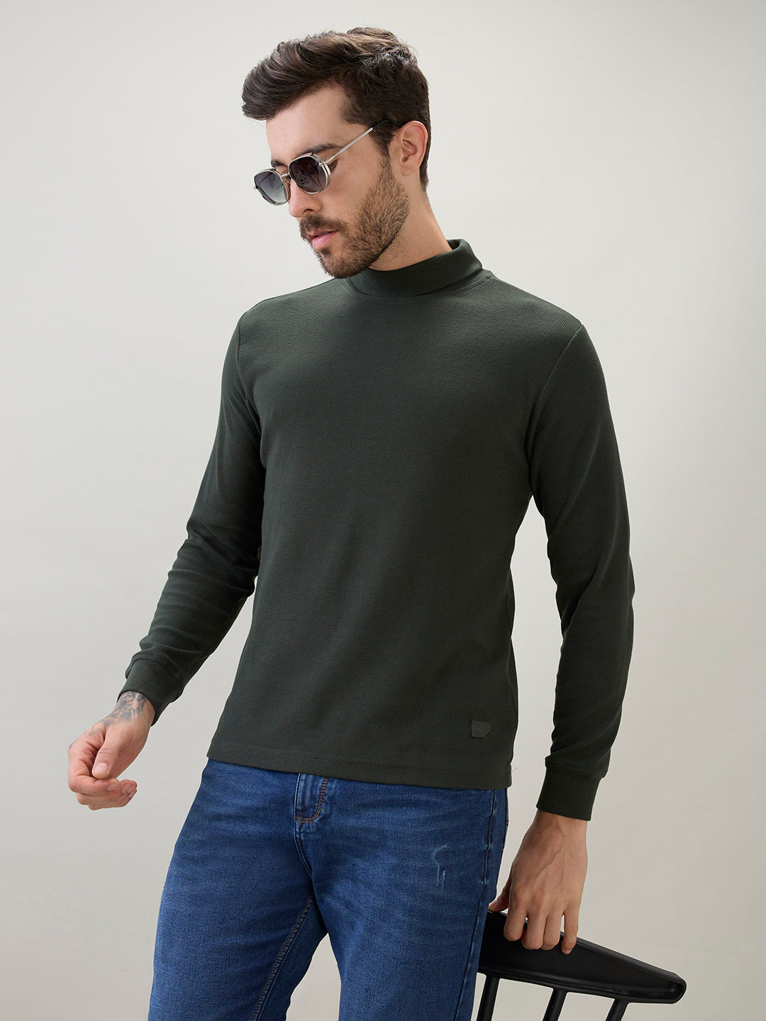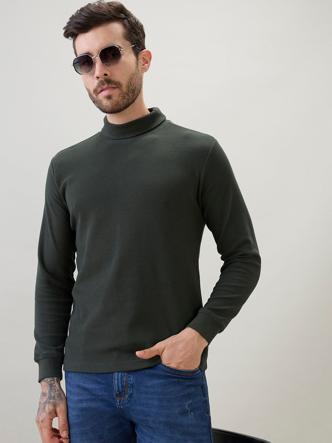 OLIVE Men's Solid High Neck Full Sleeve Regular Fit T-Shirt