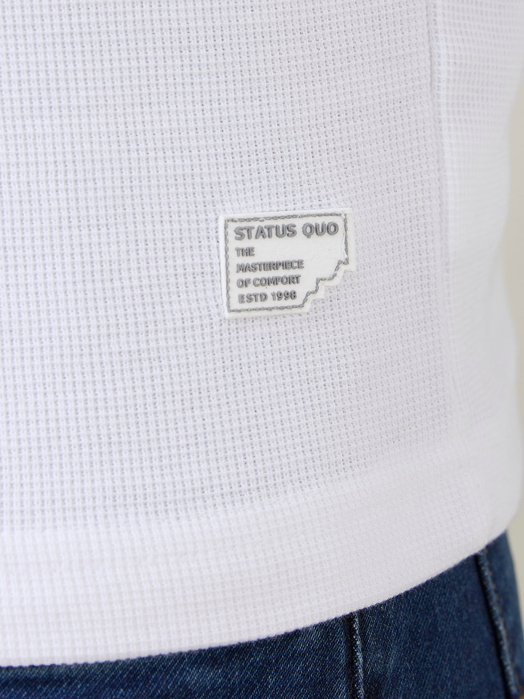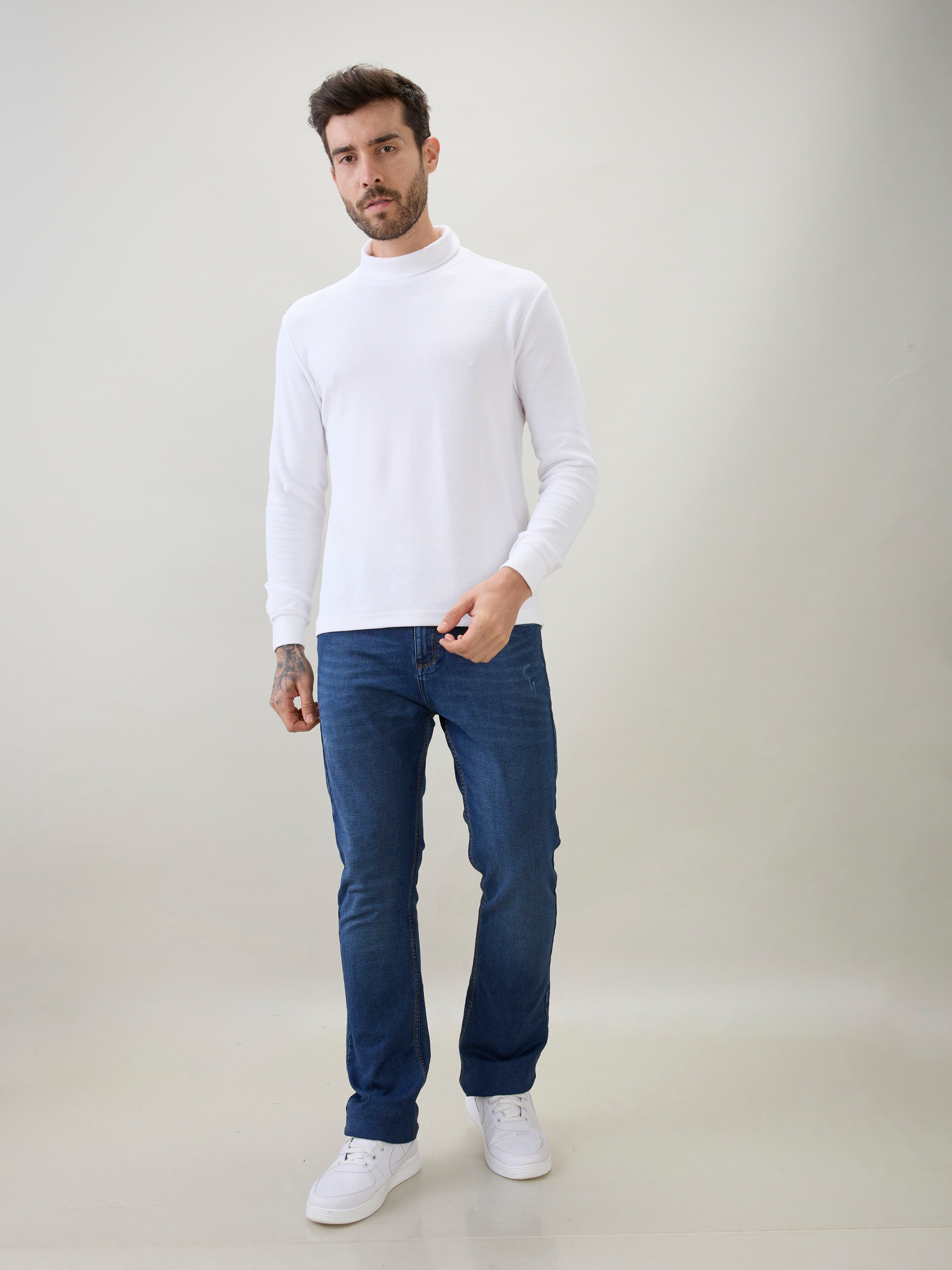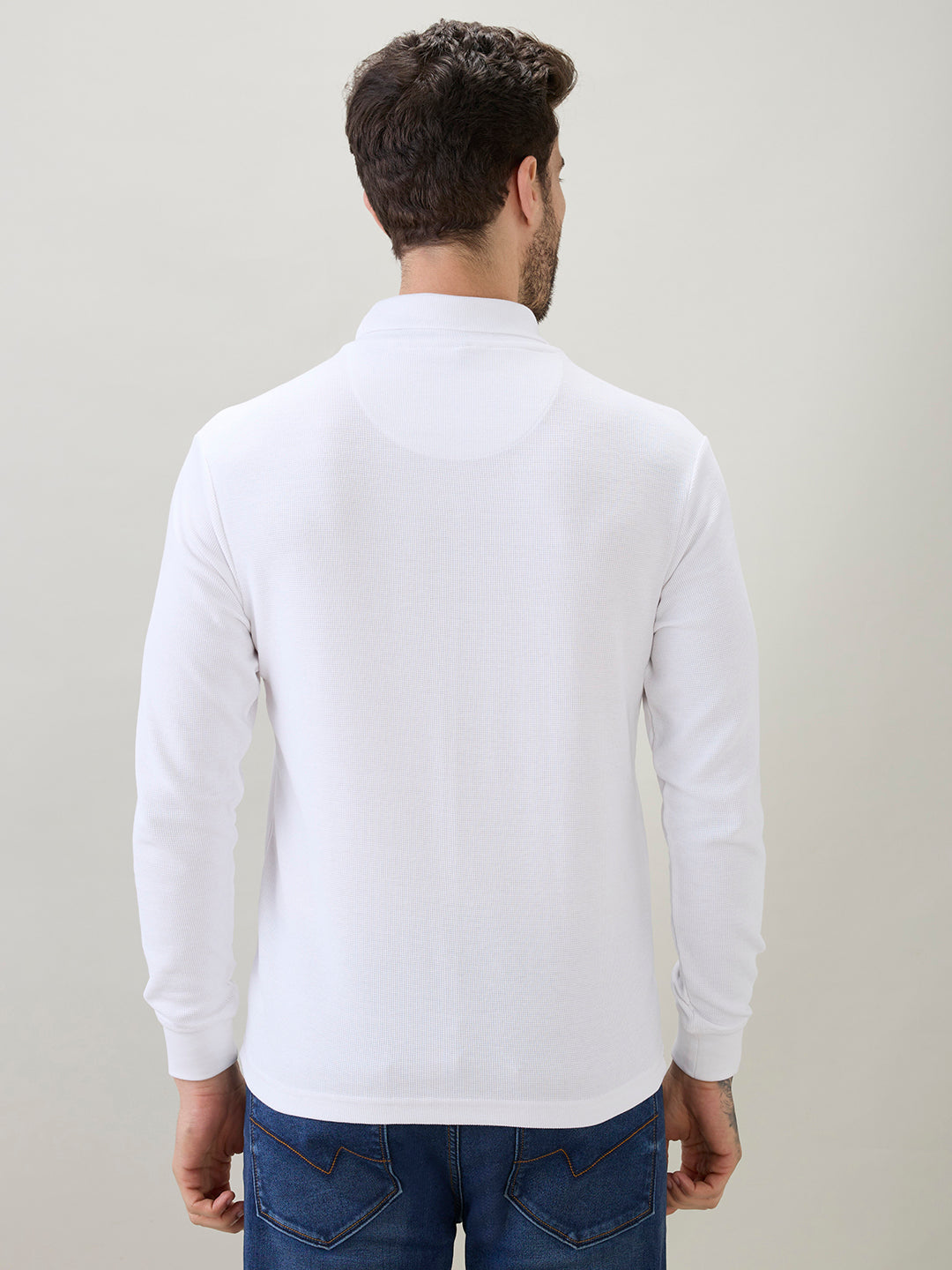 WHITE Men's Solid High Neck Full Sleeve Regular Fit T-Shirt