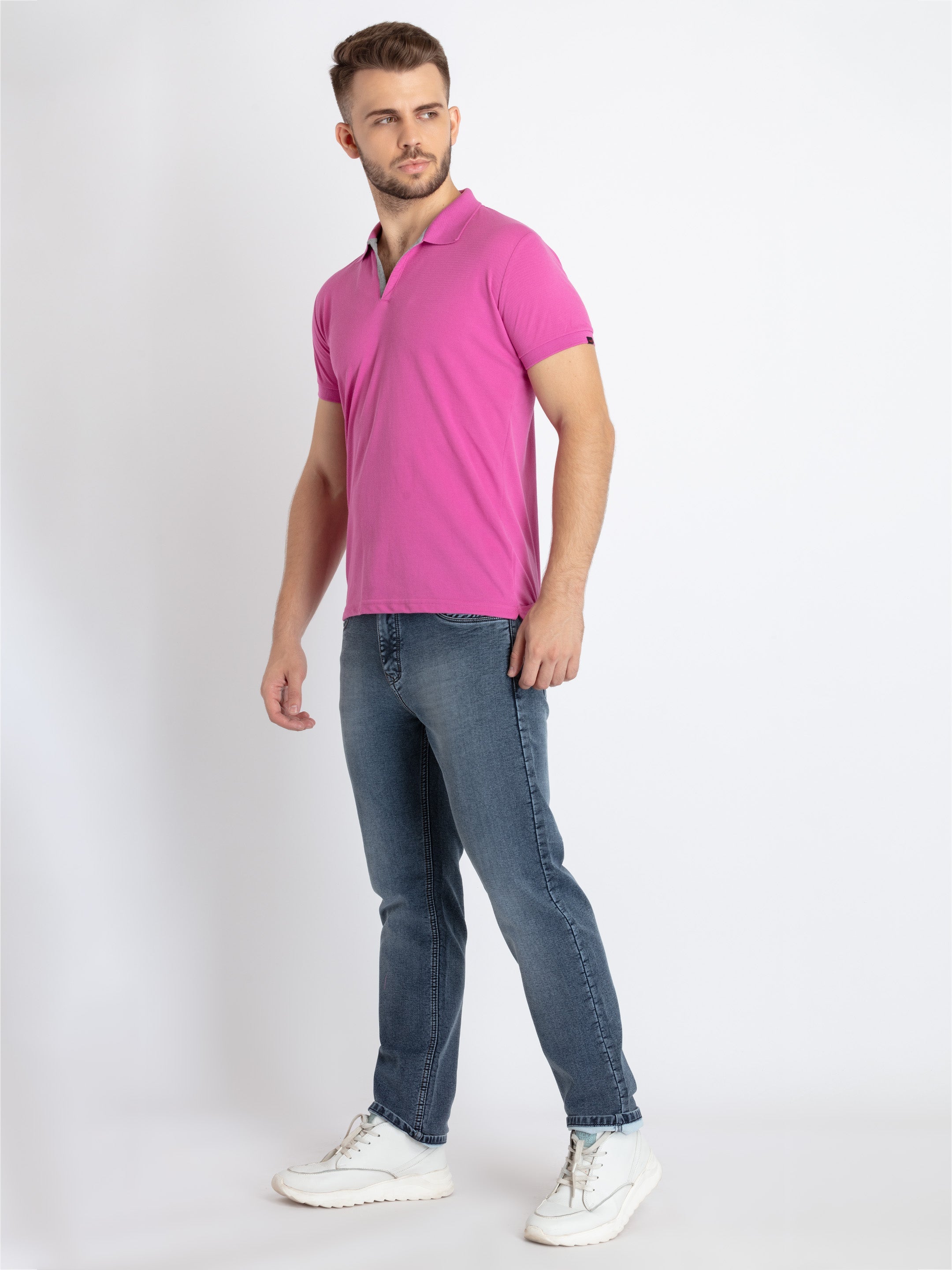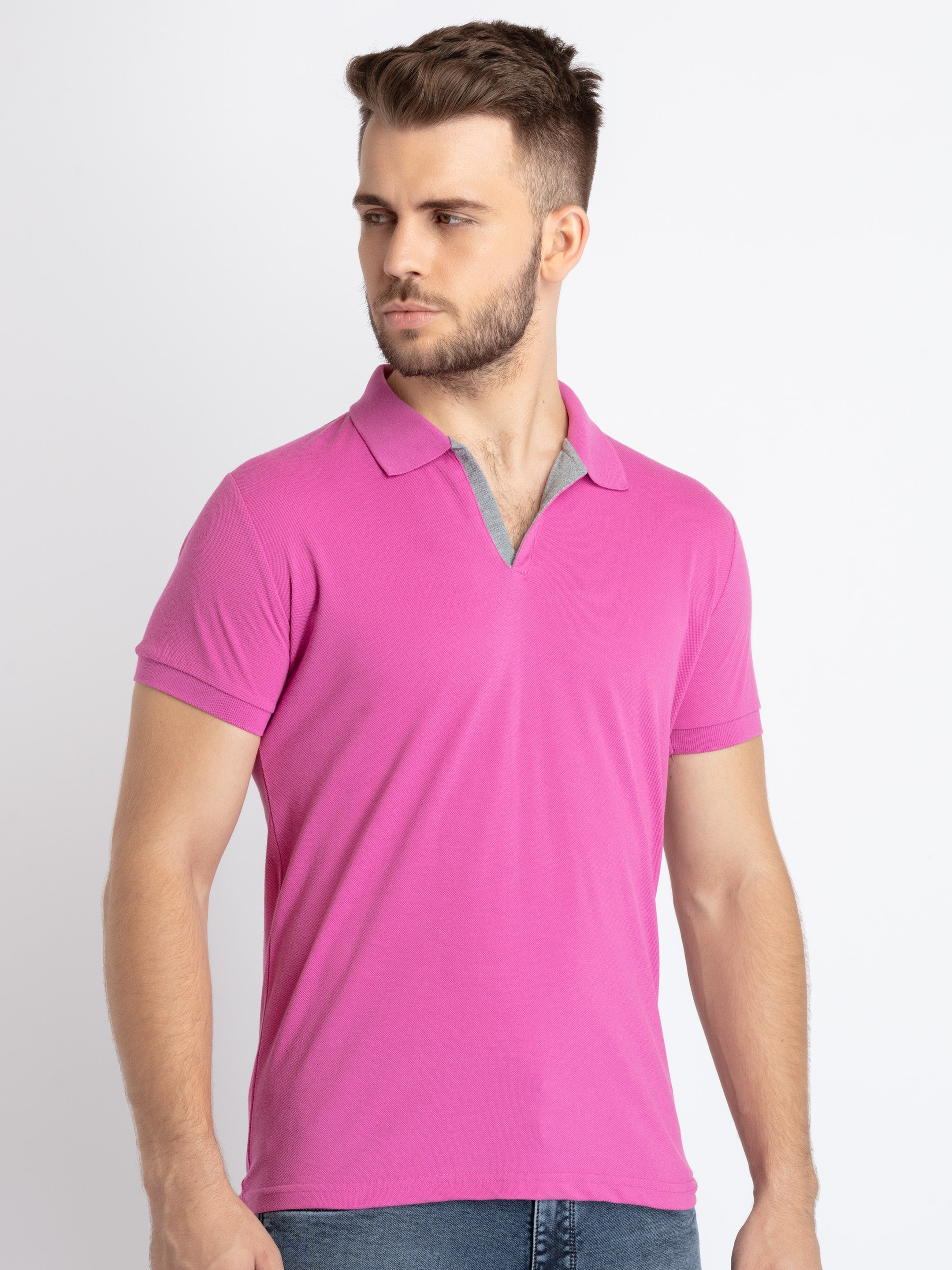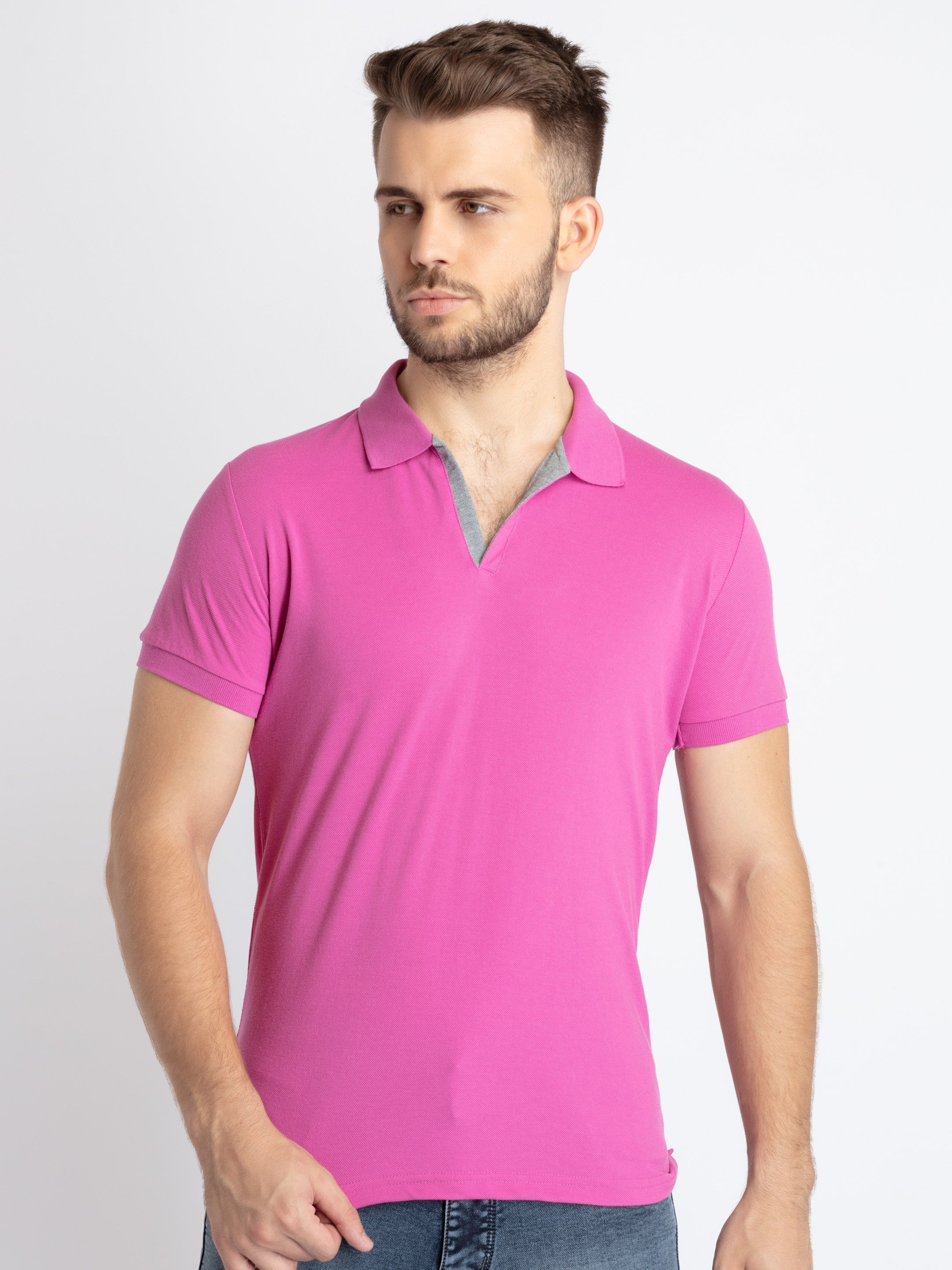 Mouve Solid T-shirt, has a Polo Collar, Short Sleeves.