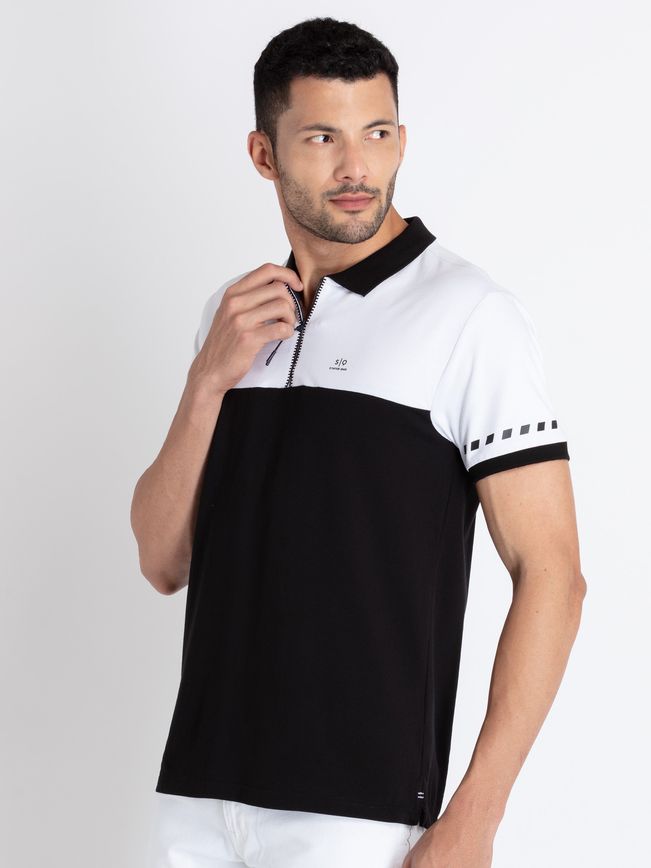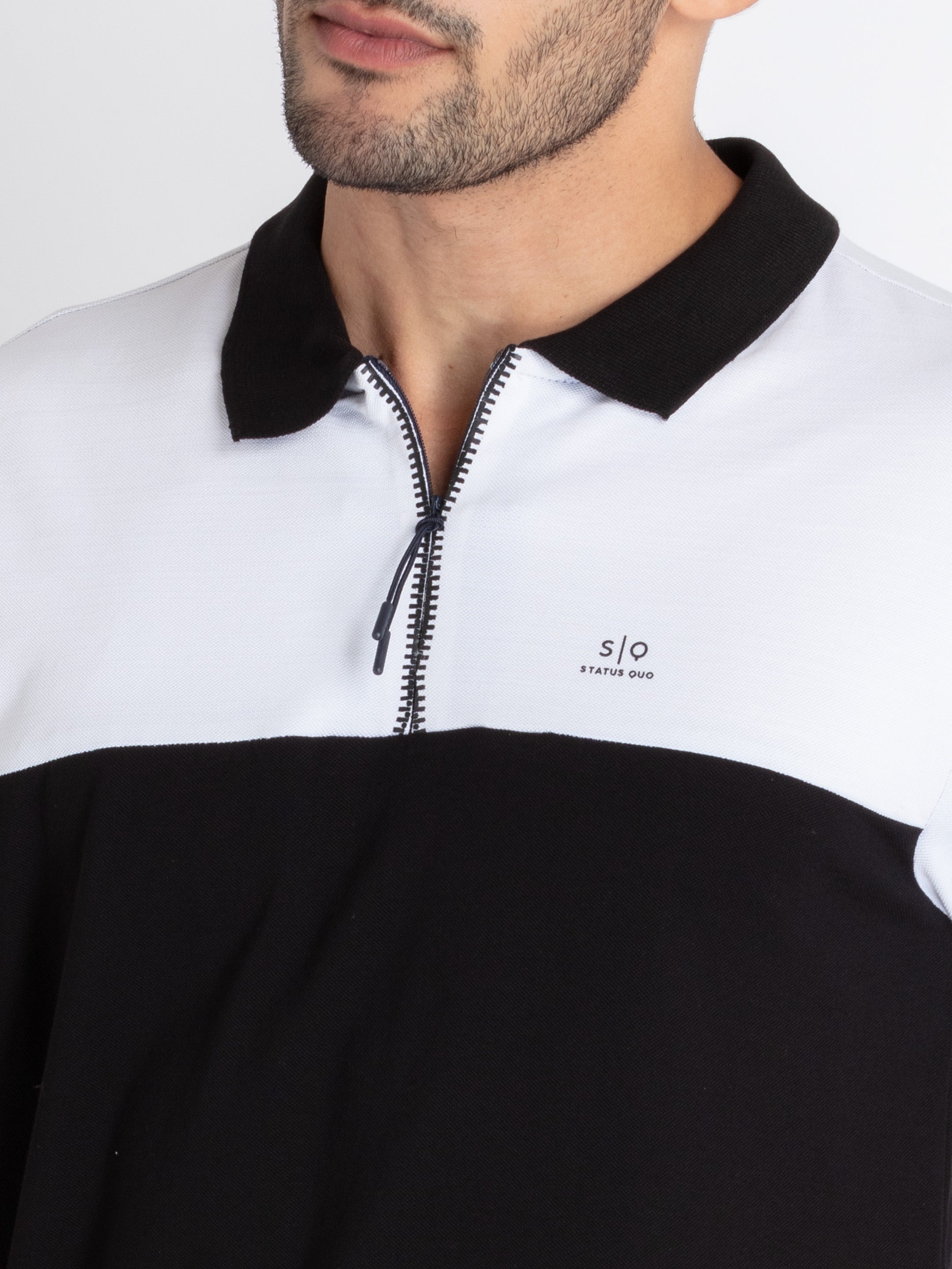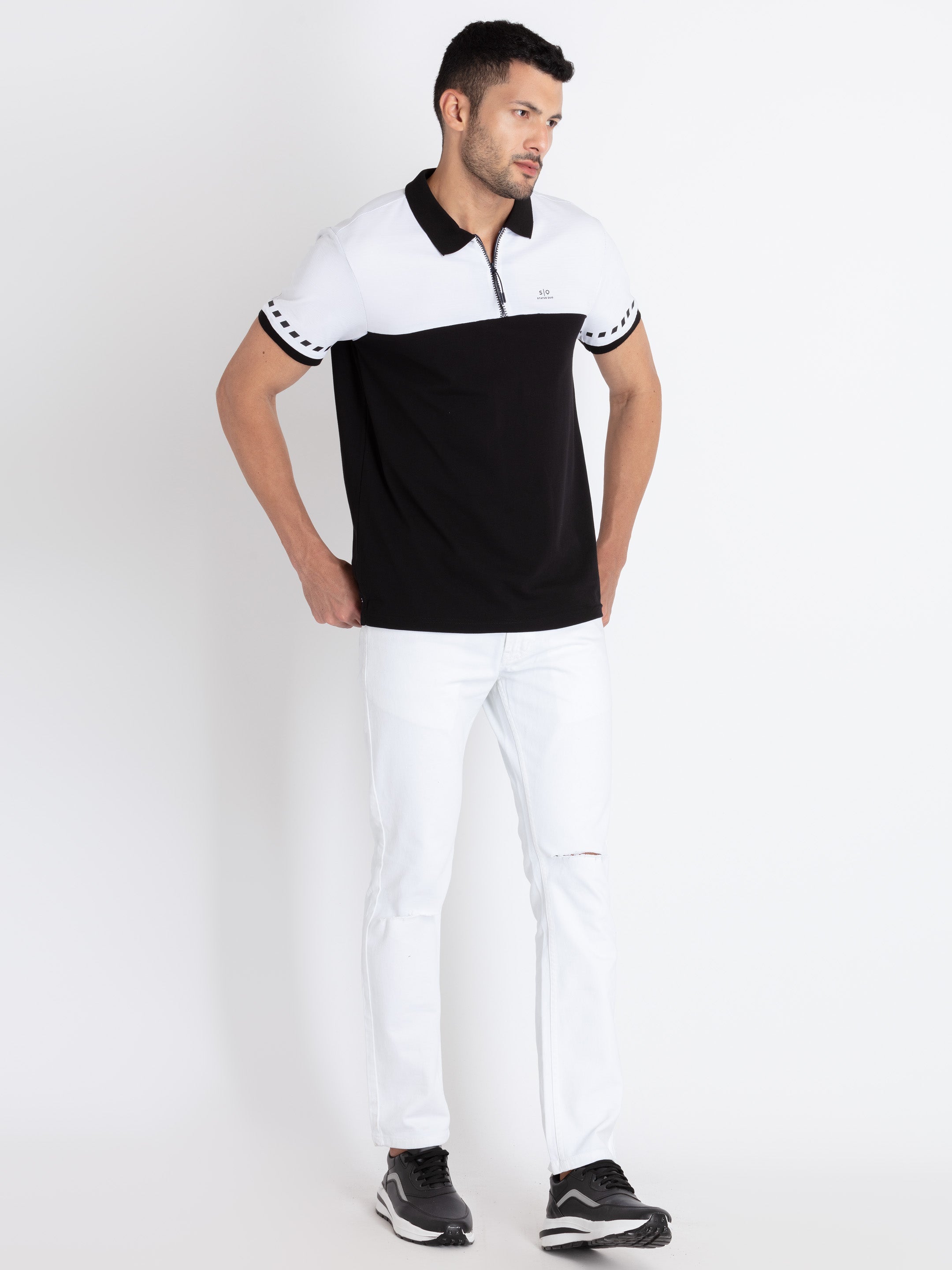 WHITE/BLACK Polo T-Shirt Has Half Sleeves