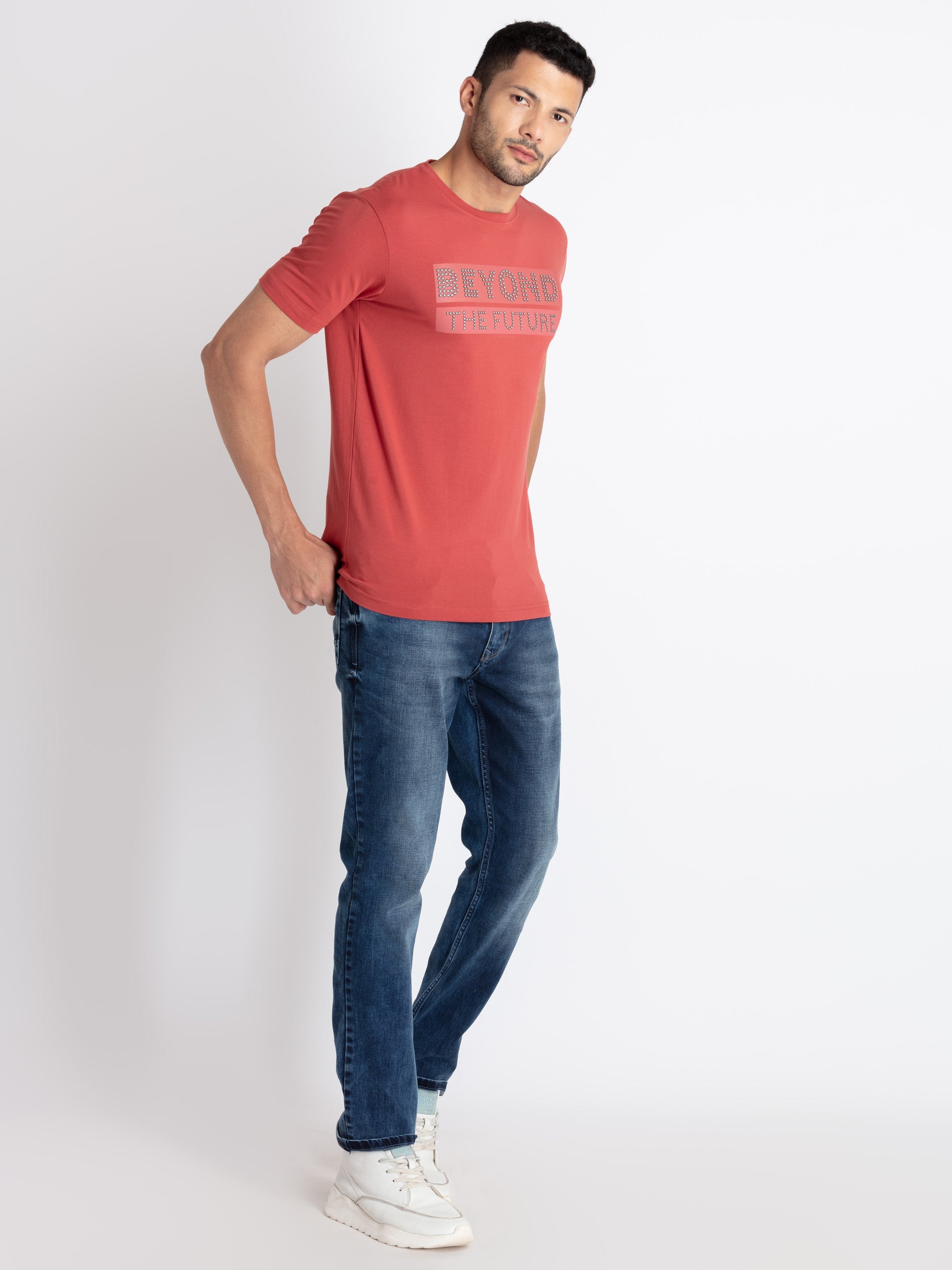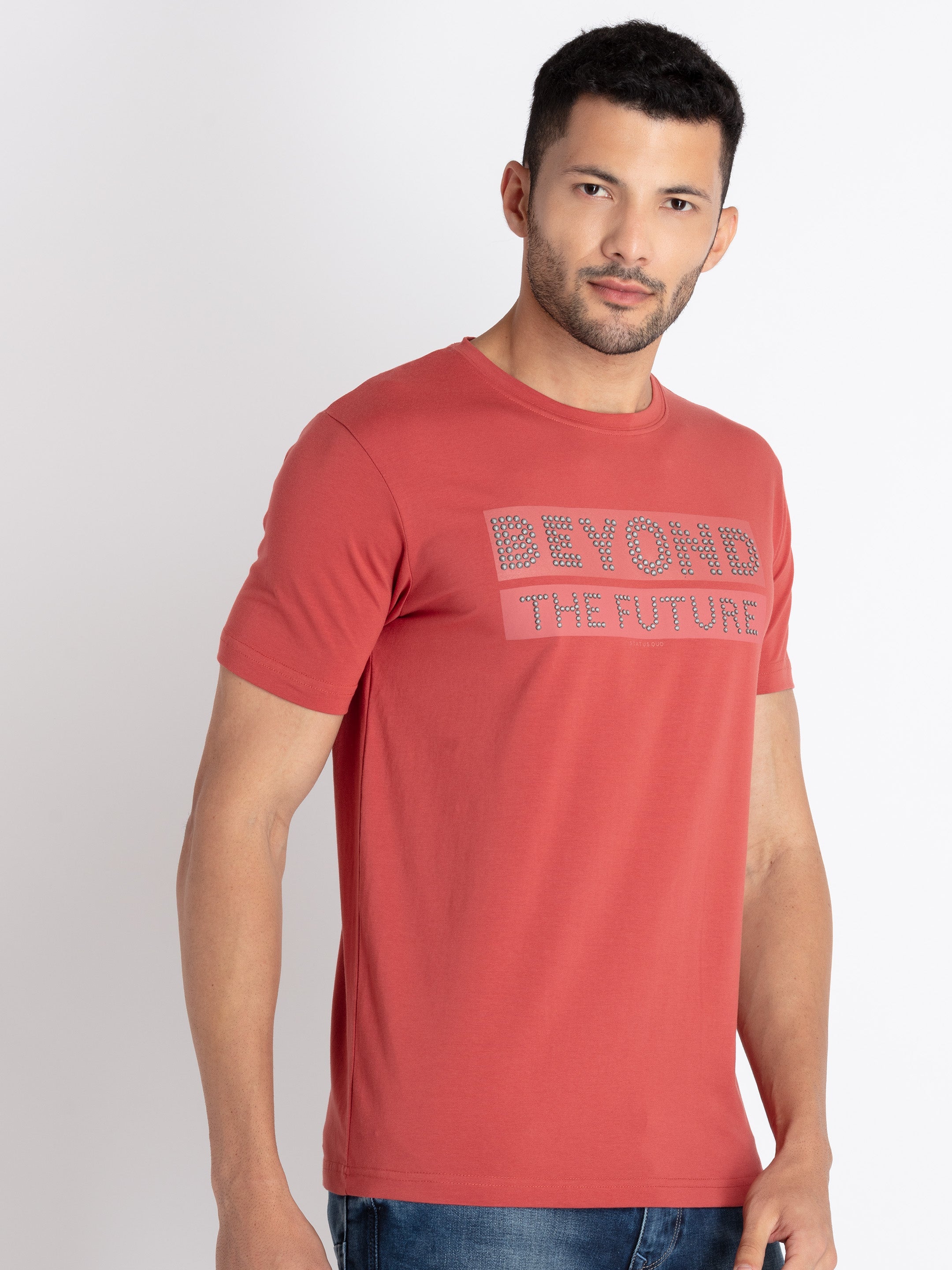 RUST Printed T-Shirt Has Round Neck, Half Sleeves