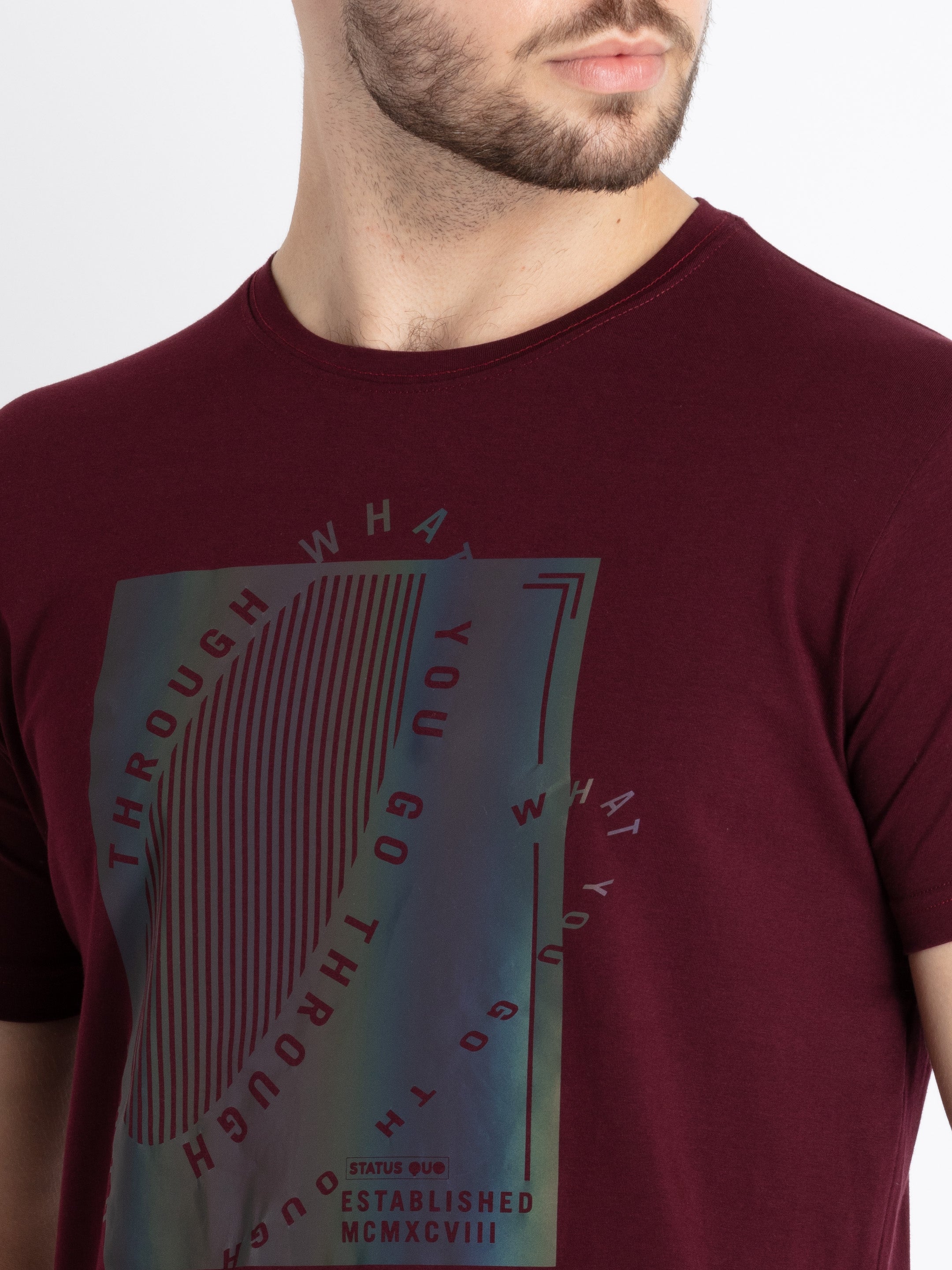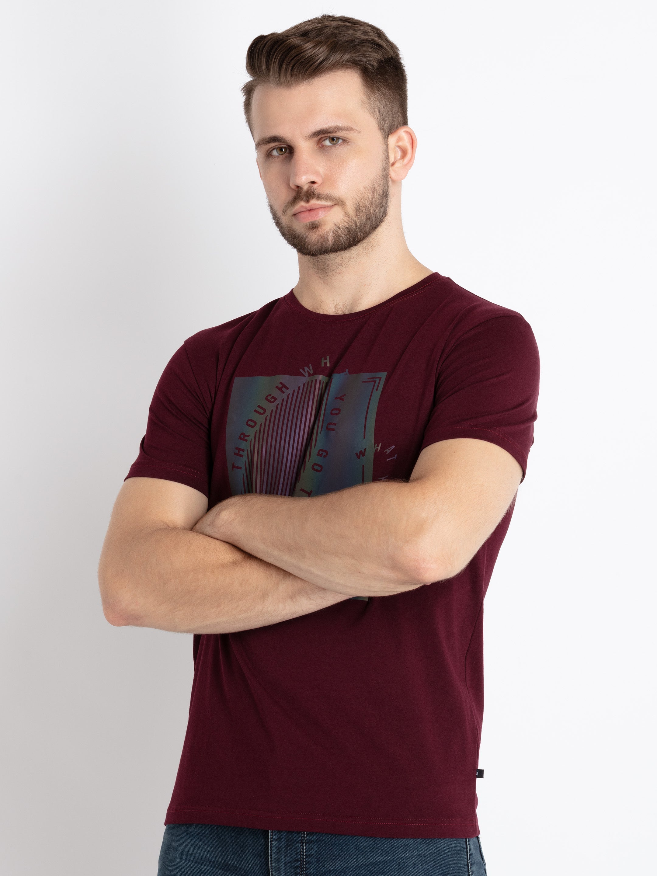 WINE Printed T-Shirt Has Round Neck, Half Sleeves