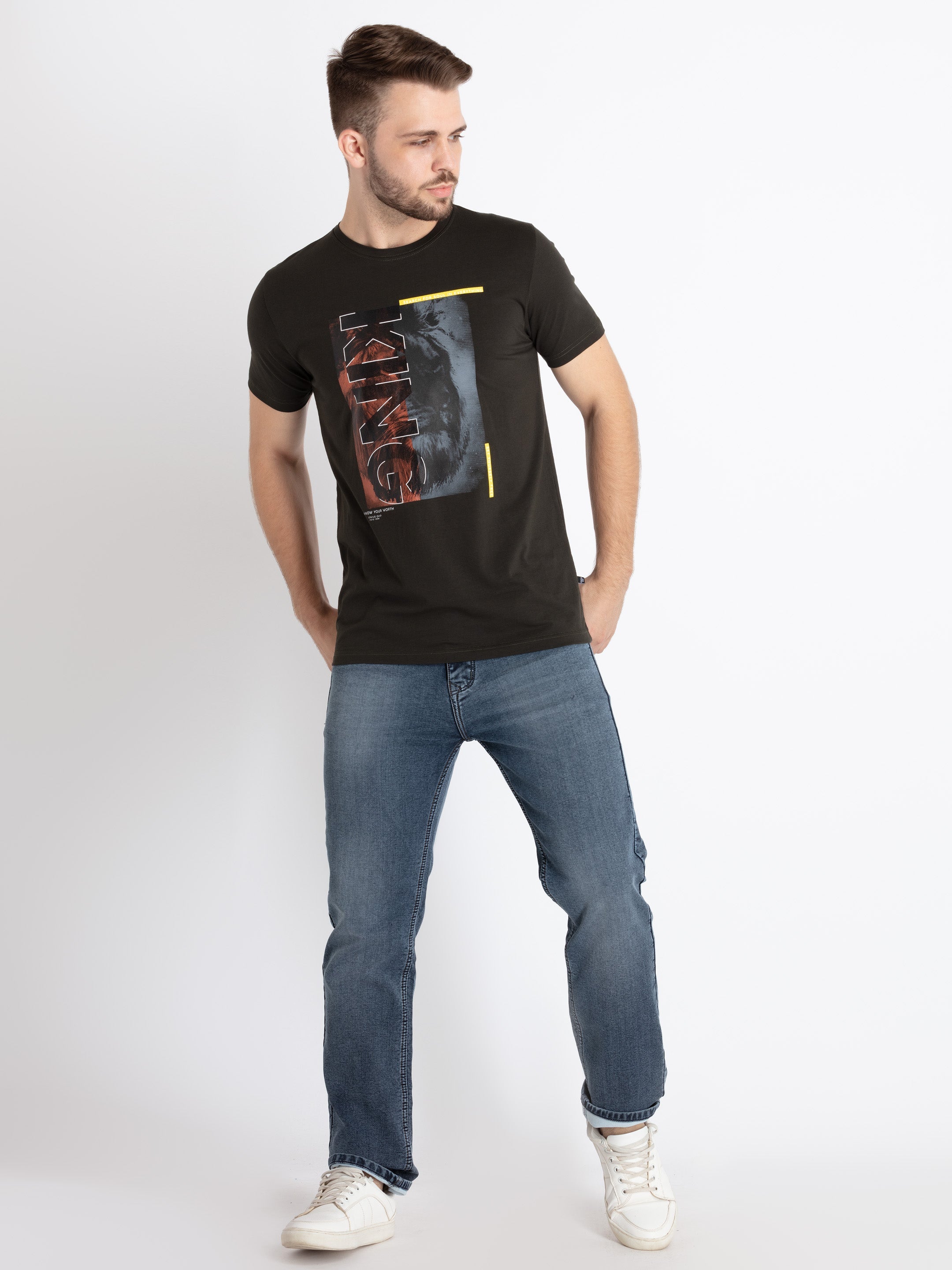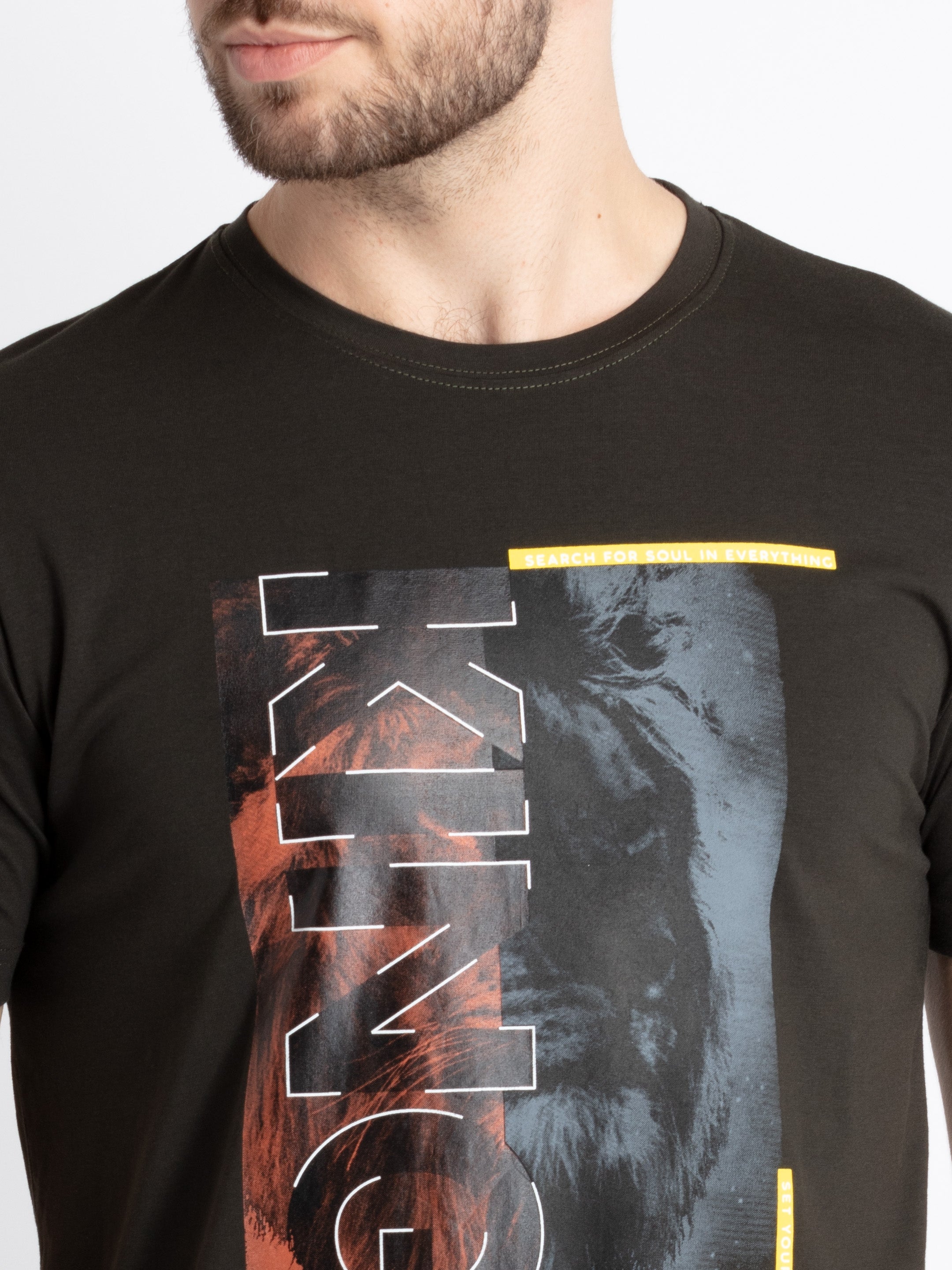 OLIVE Printed T-Shirt Has Round Neck, Half Sleeves