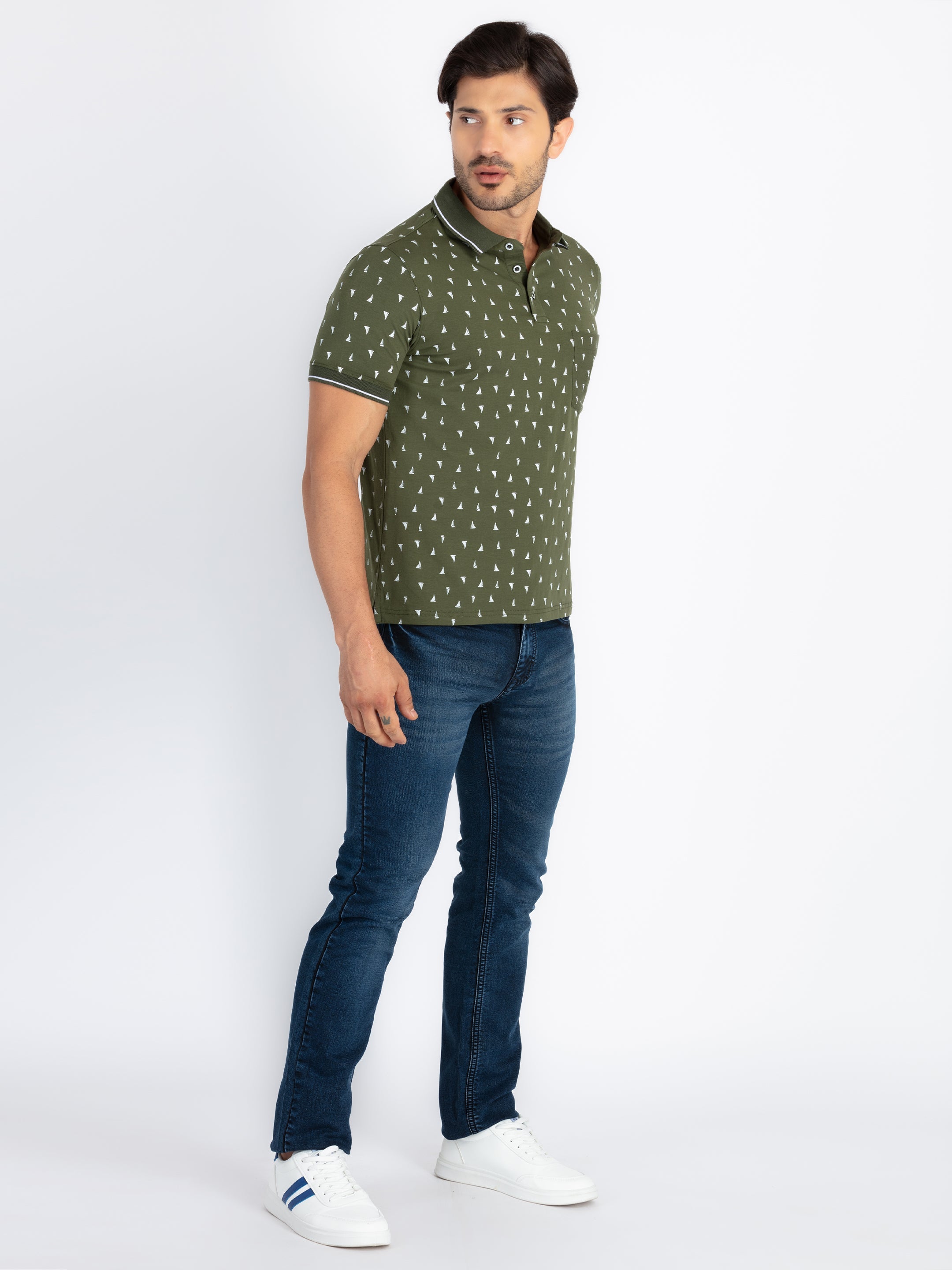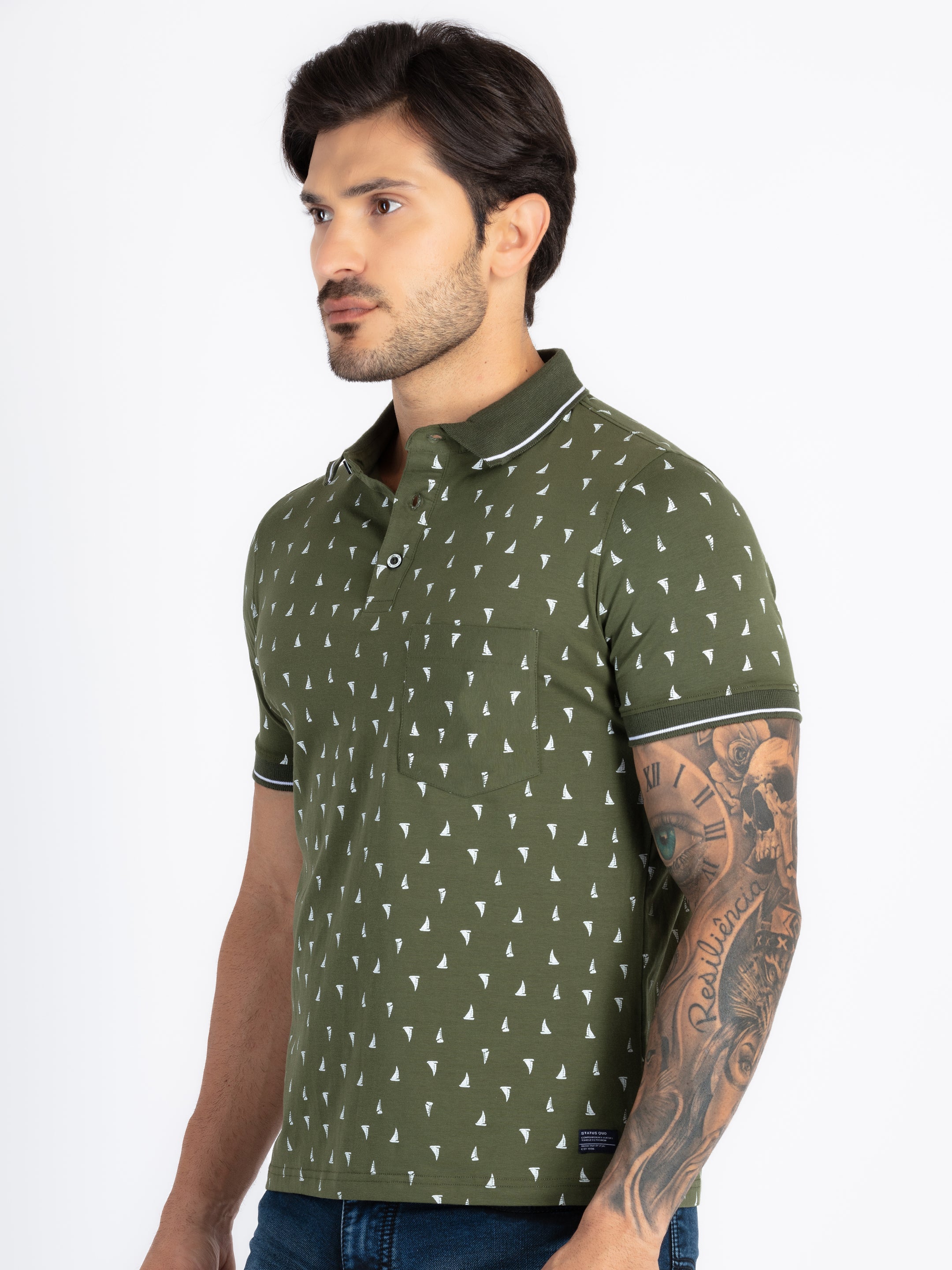 OLIVE Printed Polo T-Shirt Has Half Sleeves