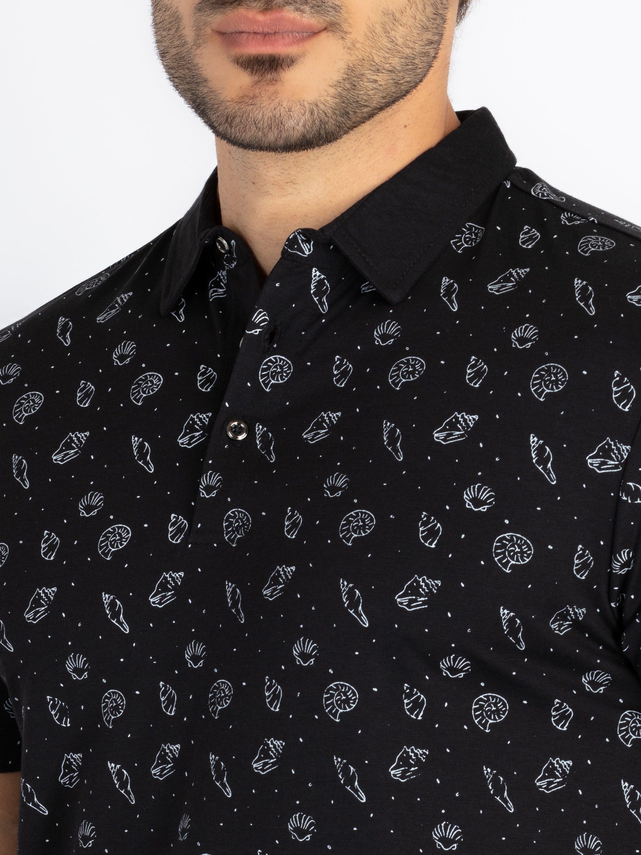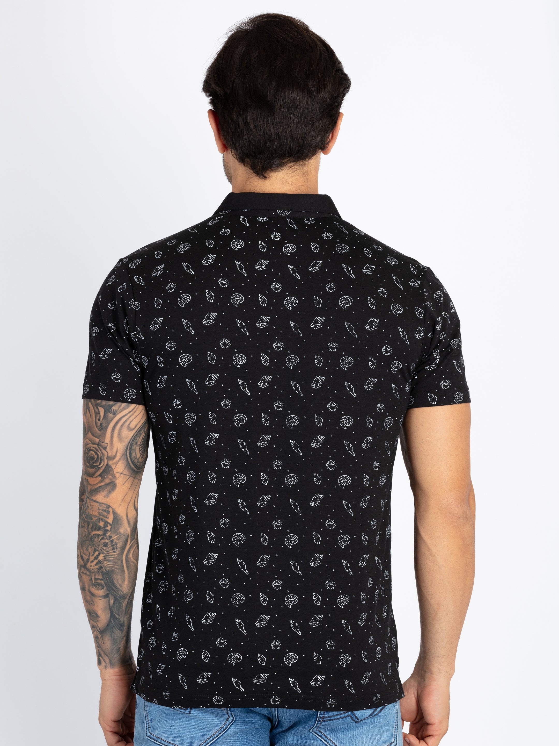 BLACK Printed Polo T-Shirt Has Half Sleeves