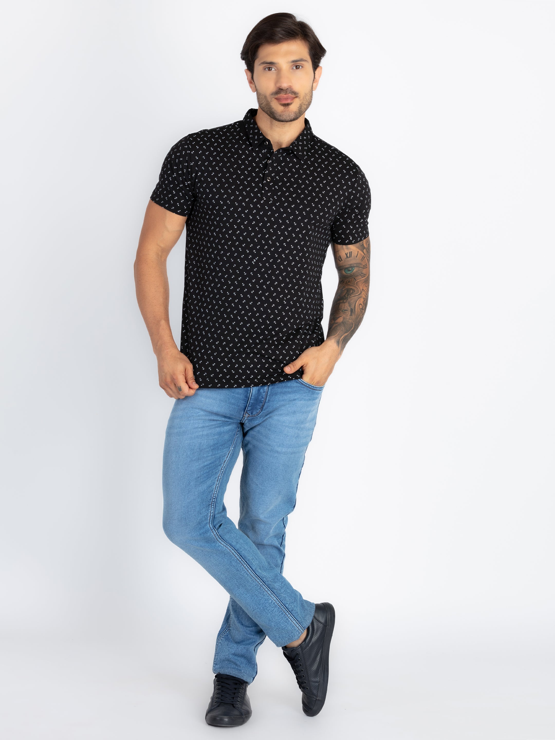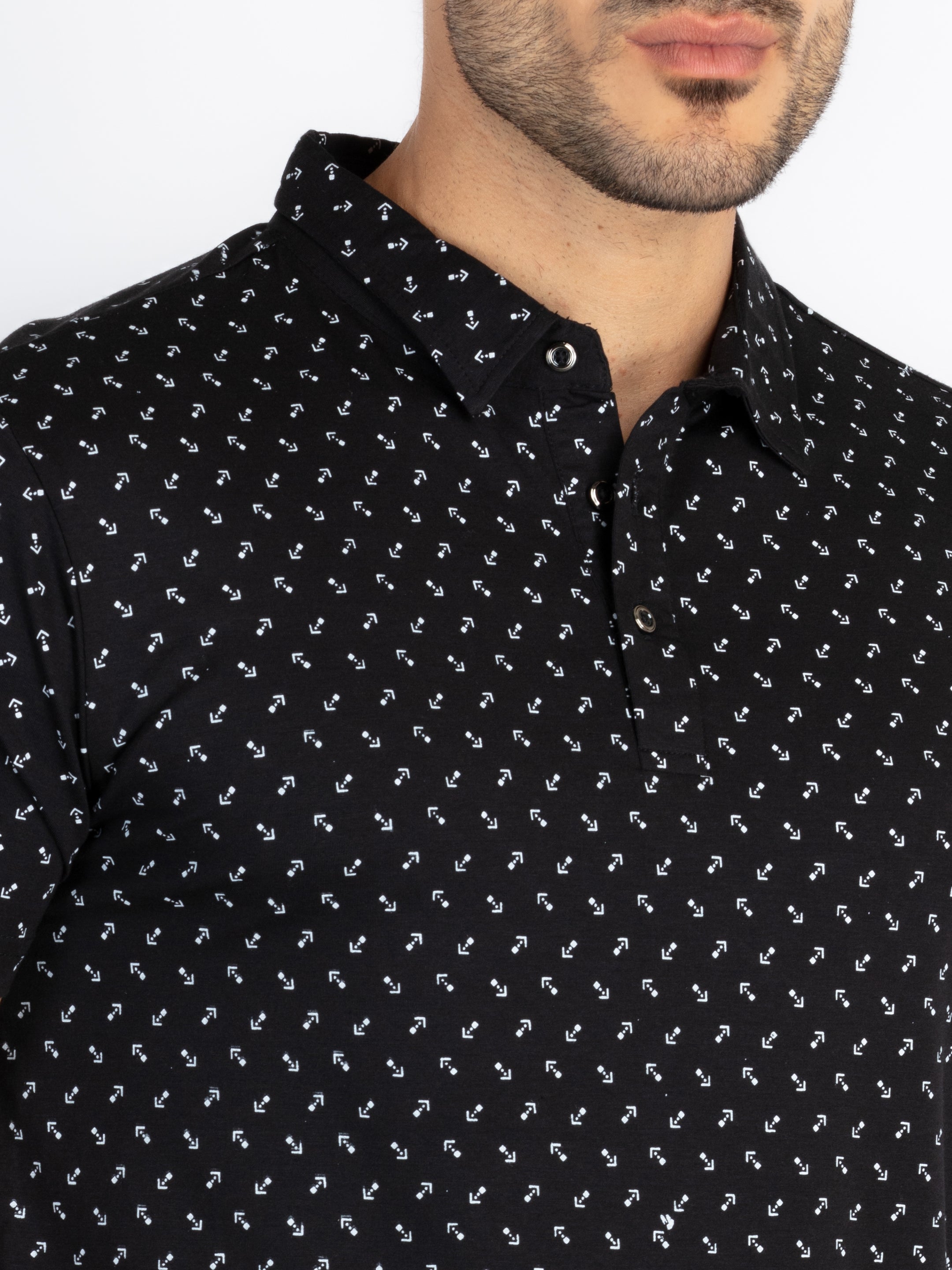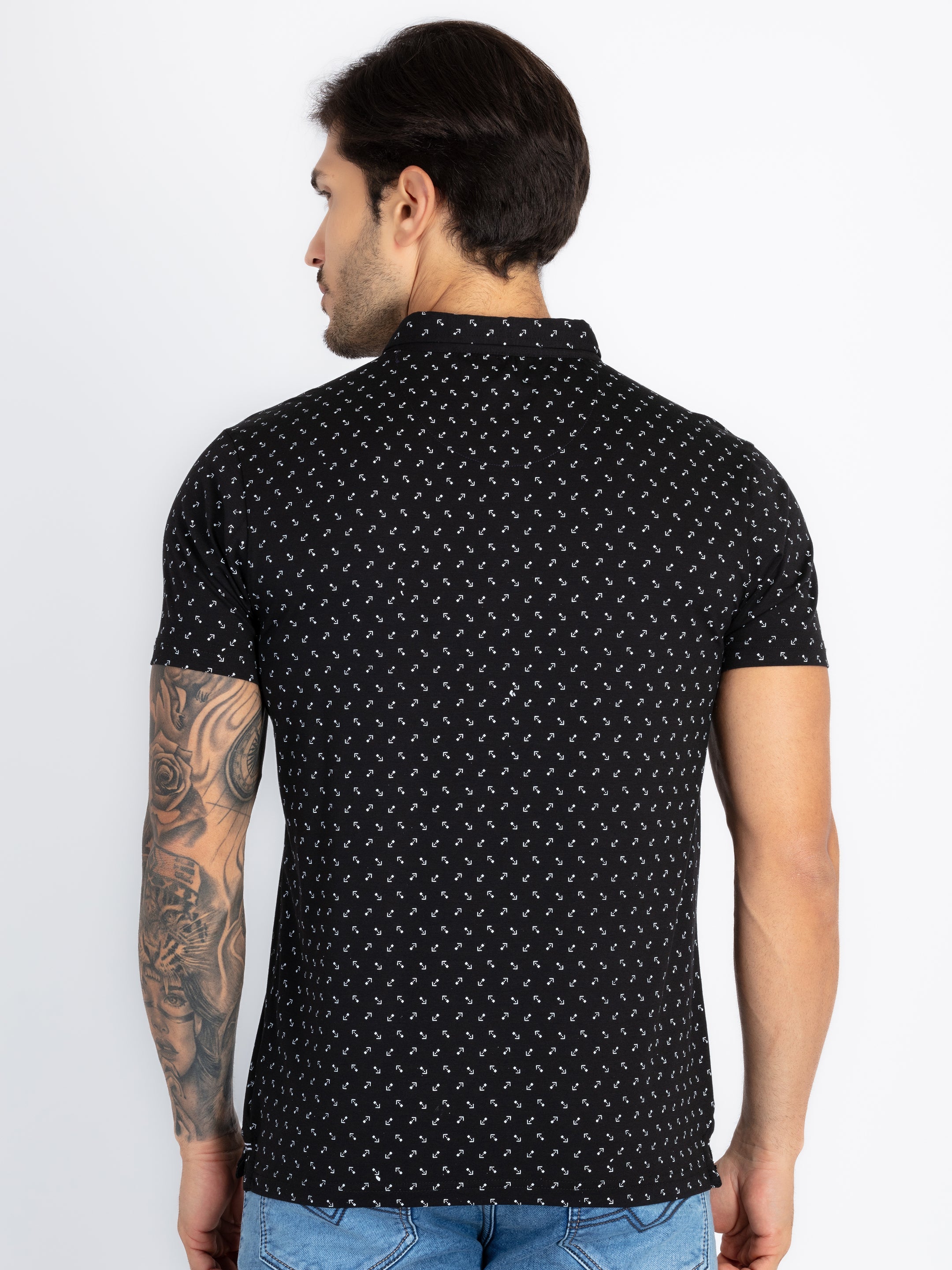 BLACK Printed Polo T-Shirt Has Half Sleeves