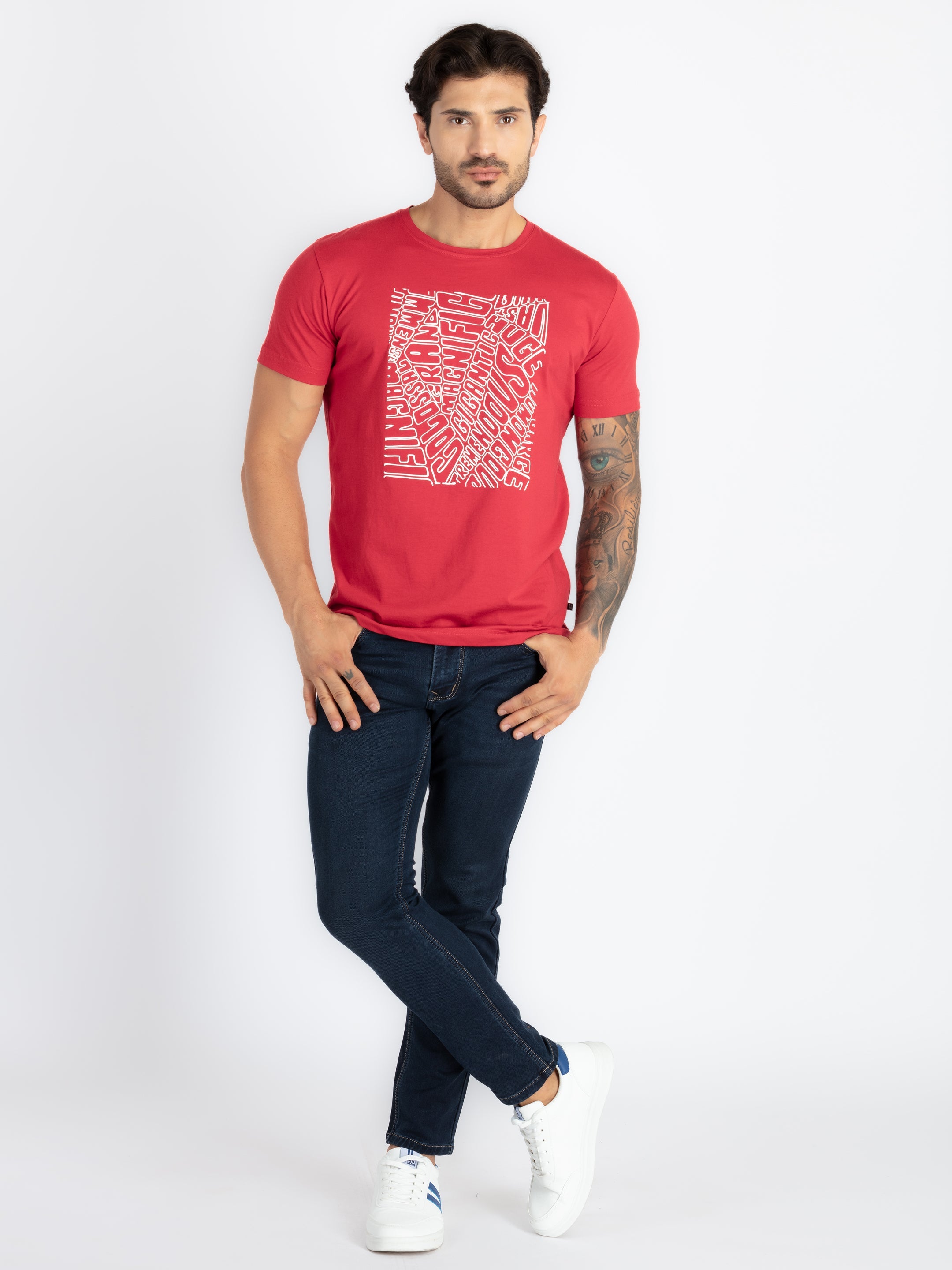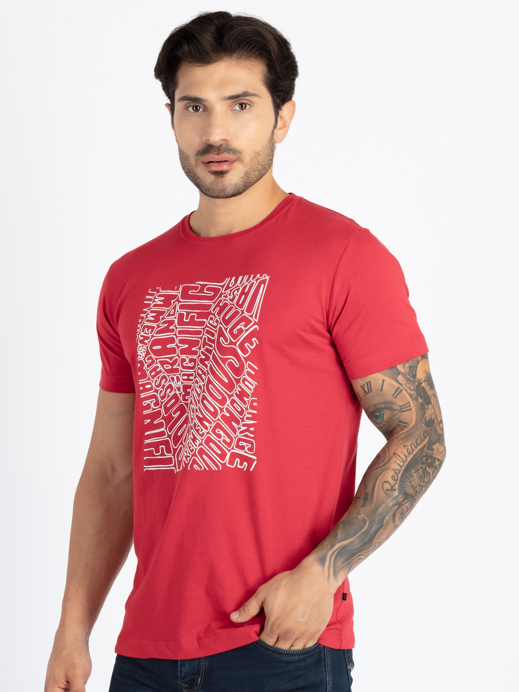 B.RED Printed T-Shirt Has Round Neck, Half Sleeves