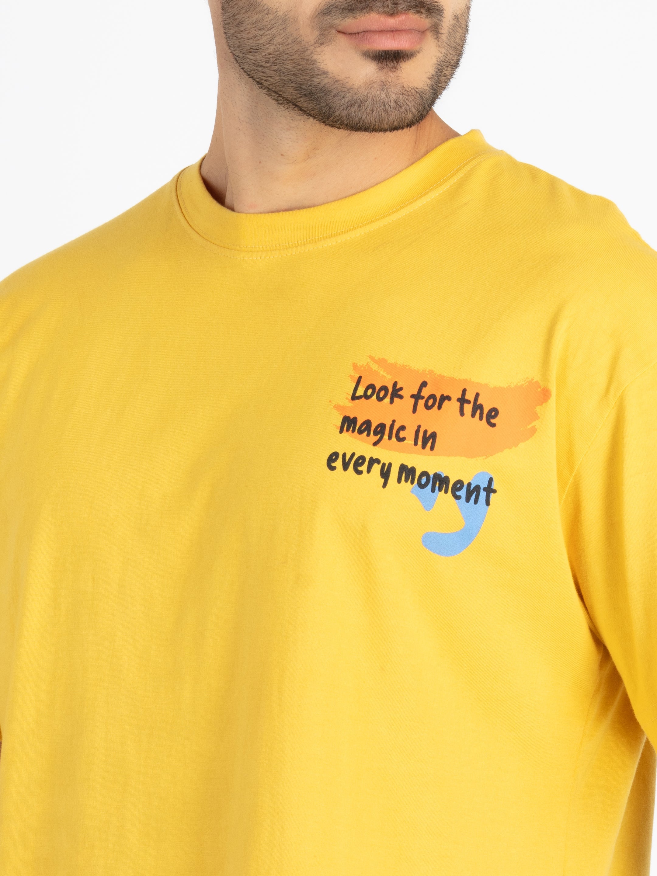 GOLD Printed Oversized T-Shirt Has Round Neck, Half Sleeves
