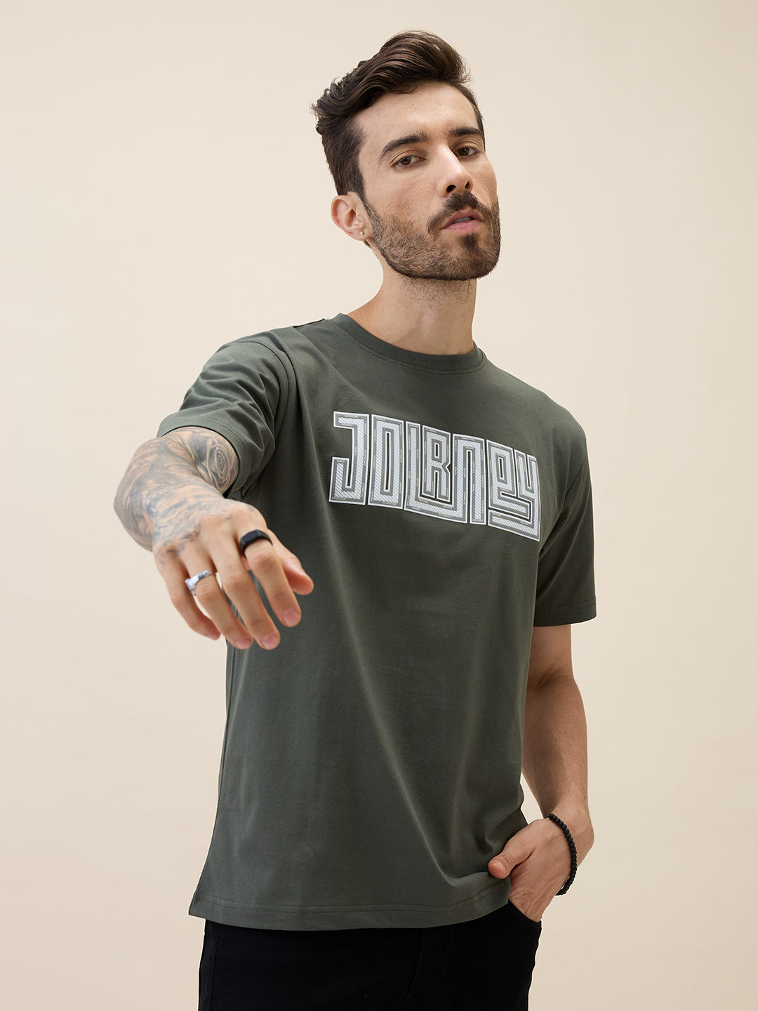 DK.GREEN Men's Printed Round Neck Half Sleeves Oversized Tshirt