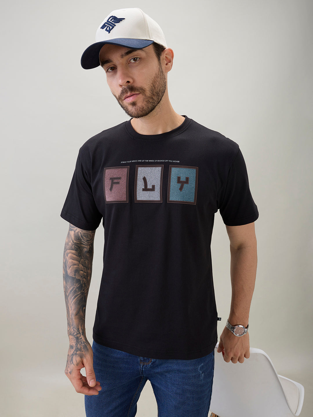 BLACK Men's Typography Chest Print Half Sleeves Regular Fit Polo T-Shirt