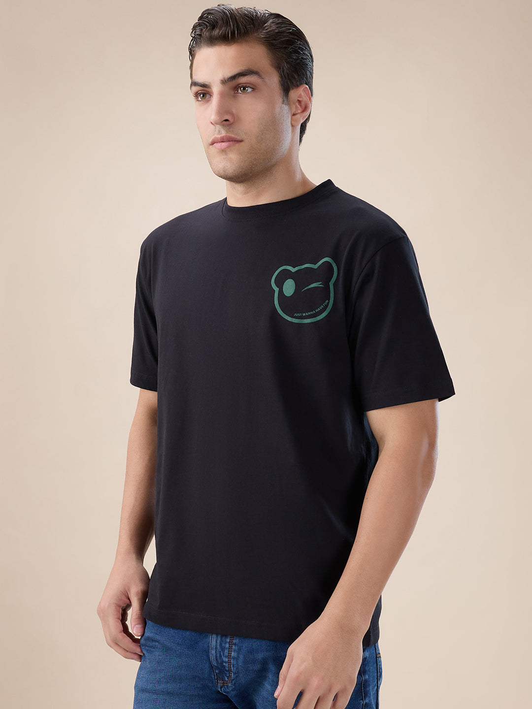 BLACK Men's Oversized Round Neck T-shirt with Back Typography Print