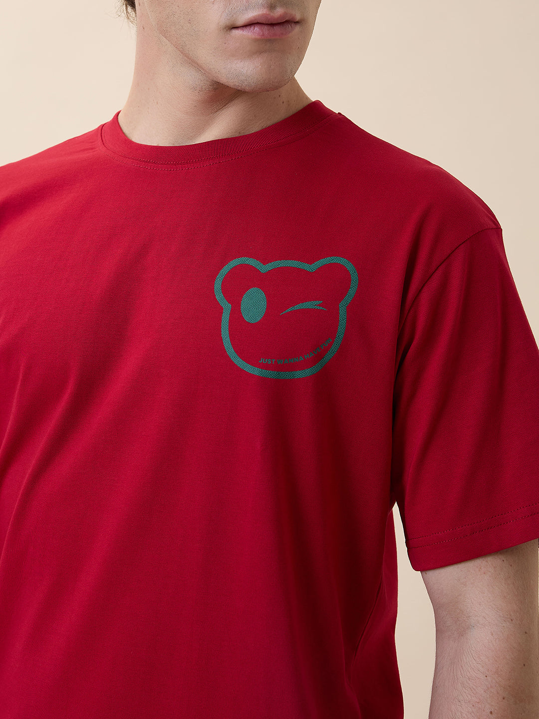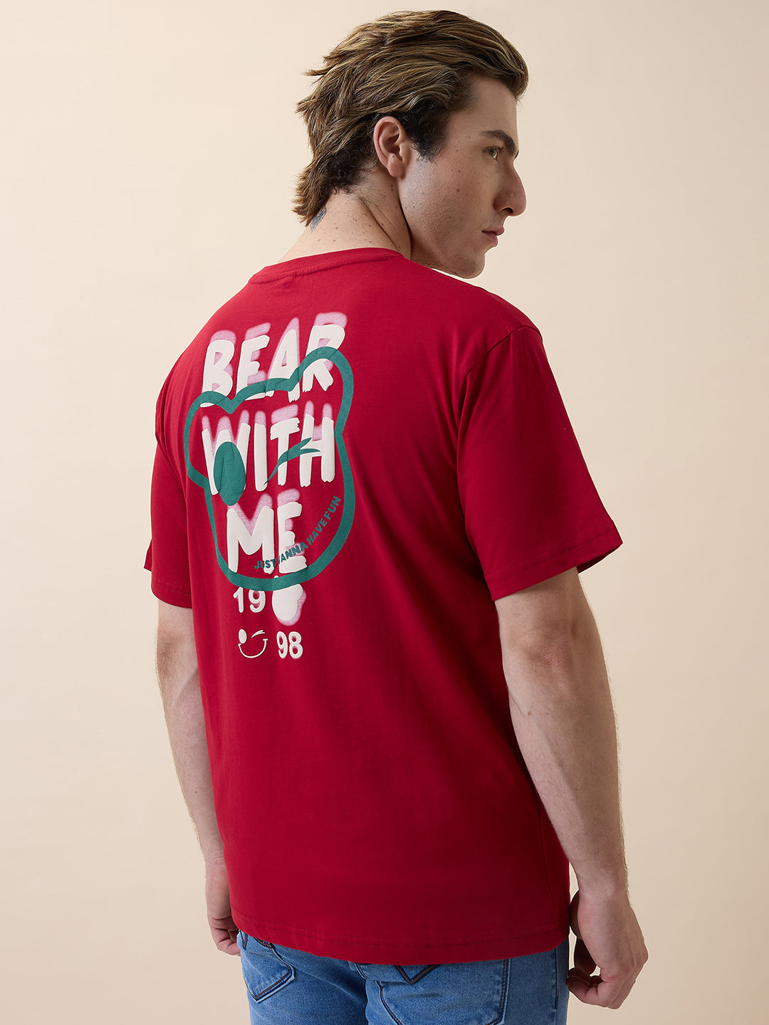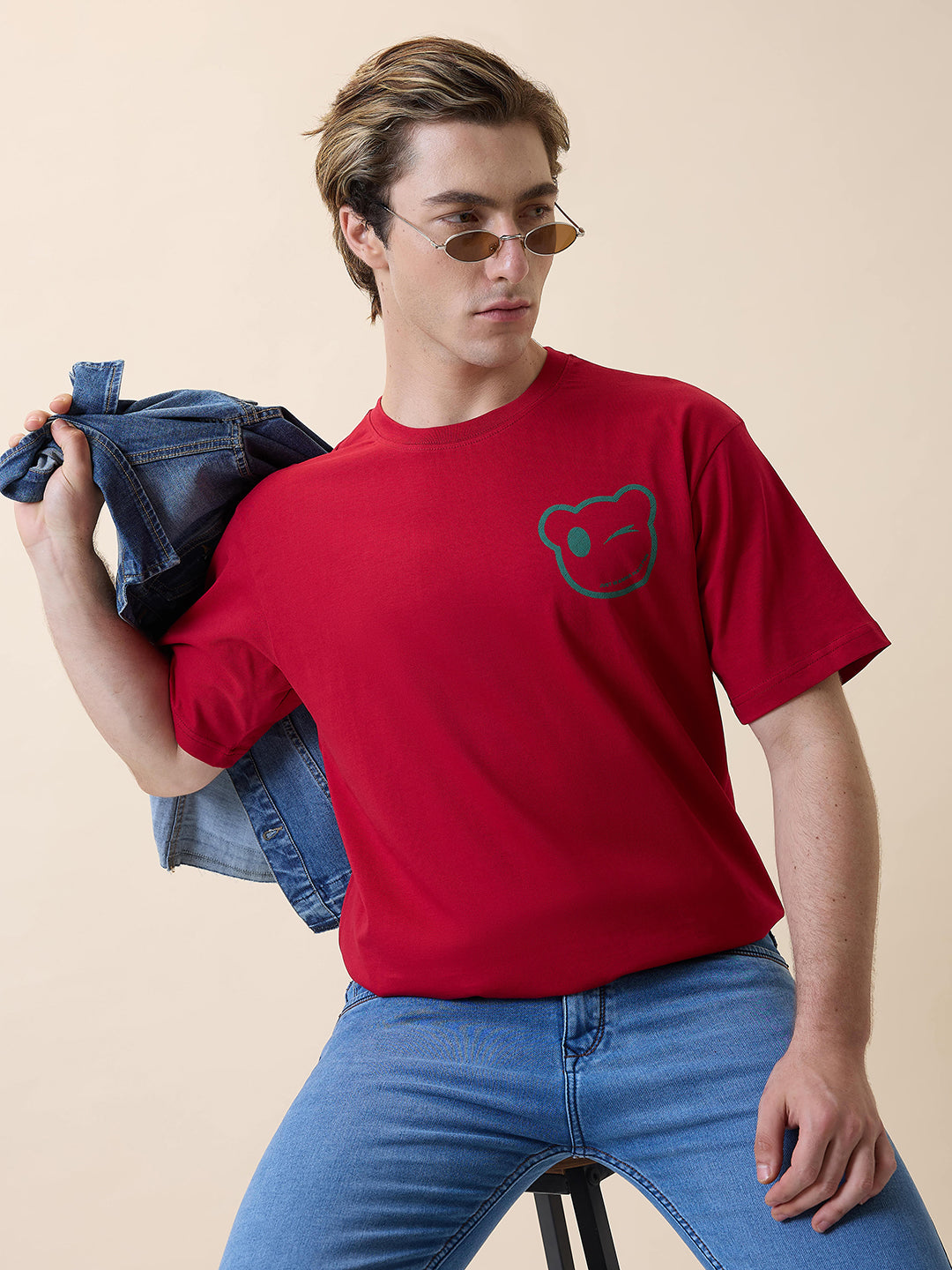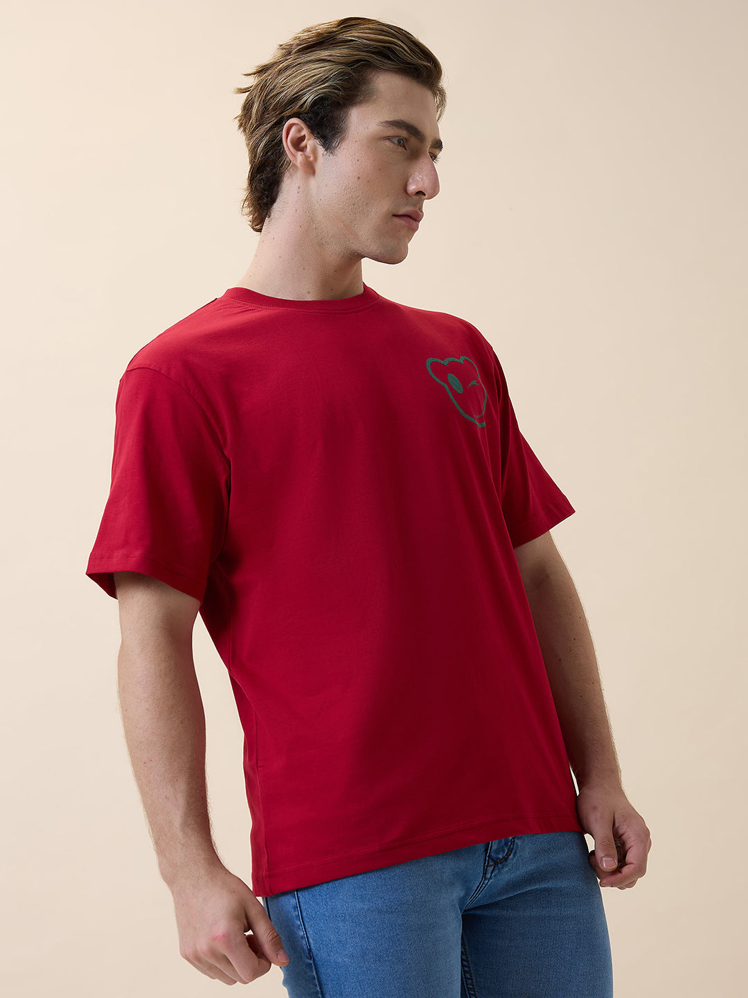 MAROON Status Quo Men's Printed Round Neck Half Sleeves Oversized T-shirt