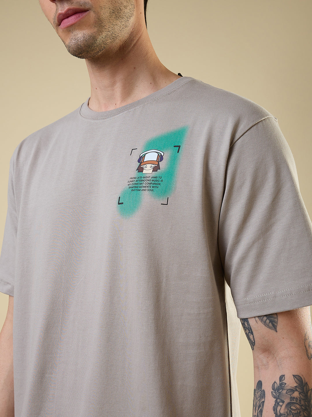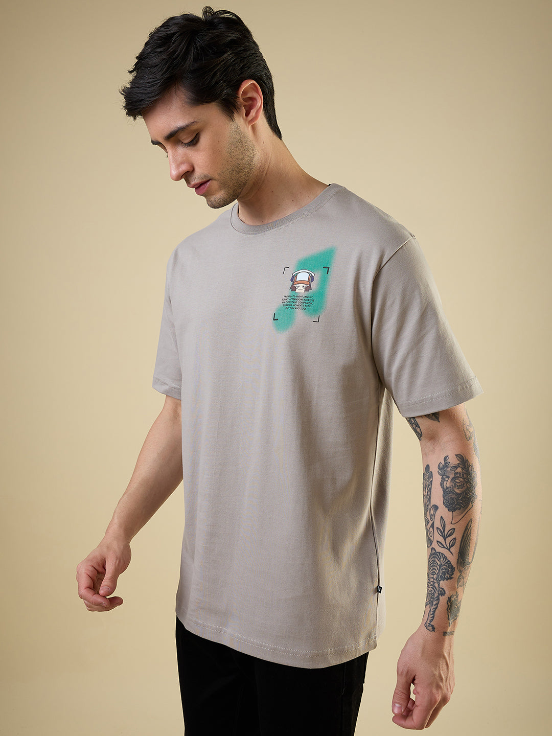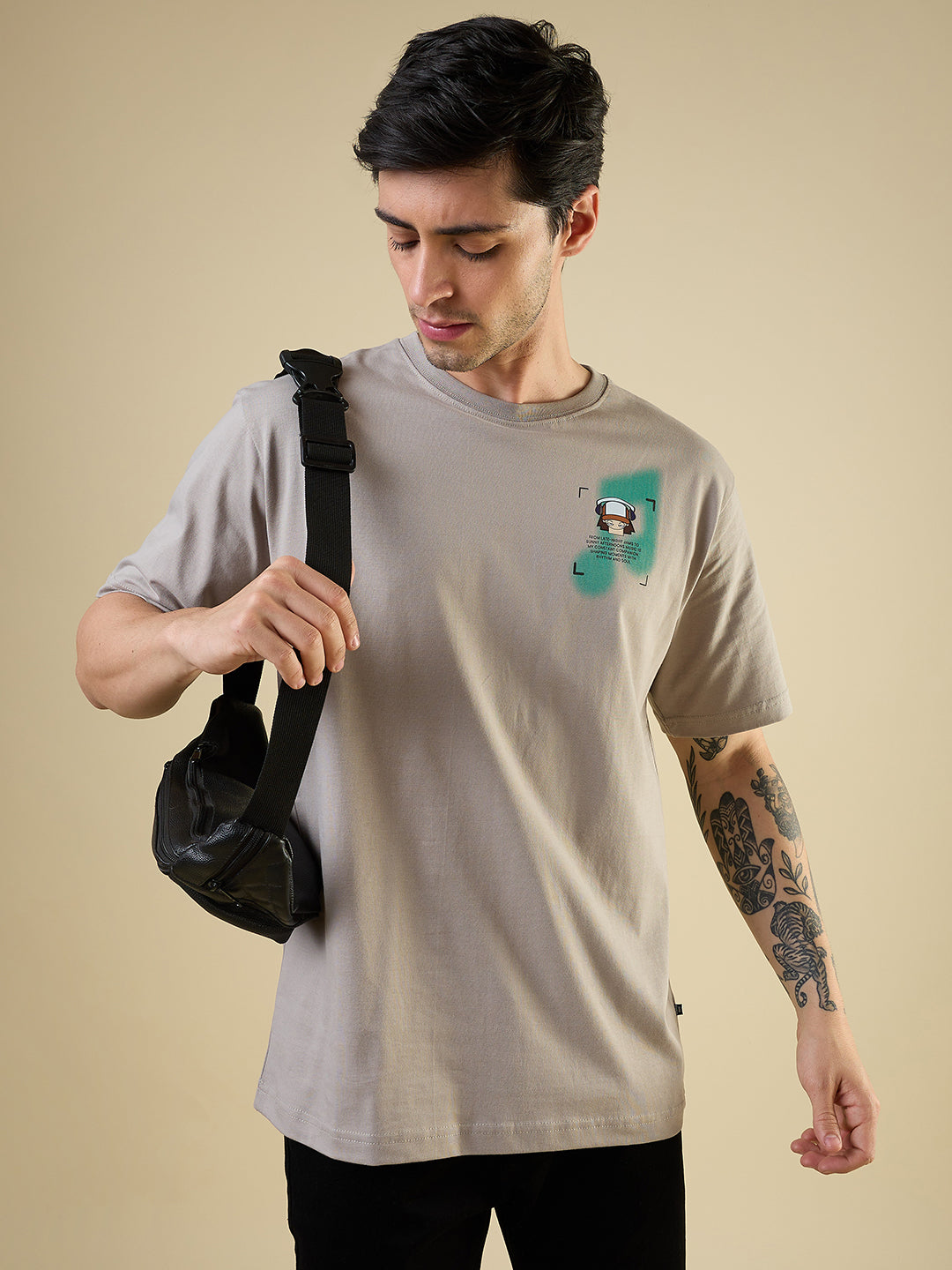 GREY Mens Placement Graphic Printed Half Sleeves Oversized T-shirt