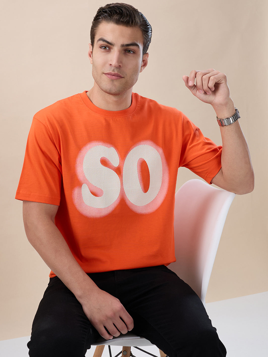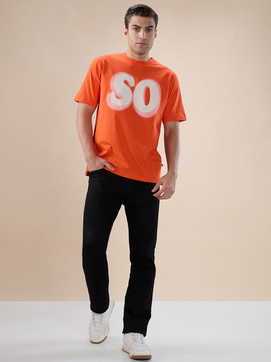 RUST Men's Back Typogardphy Print Round Neck Half Sleeves Oversized T-shirt