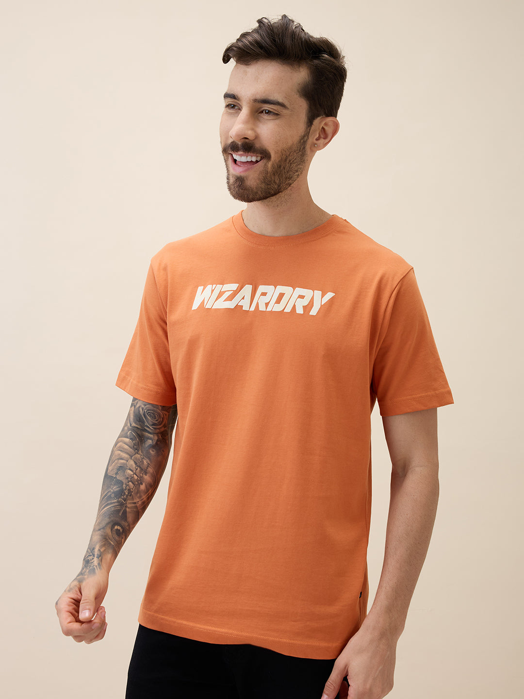 RUST Men's Printed Round Neck Half Sleeves Oversized Tshirt