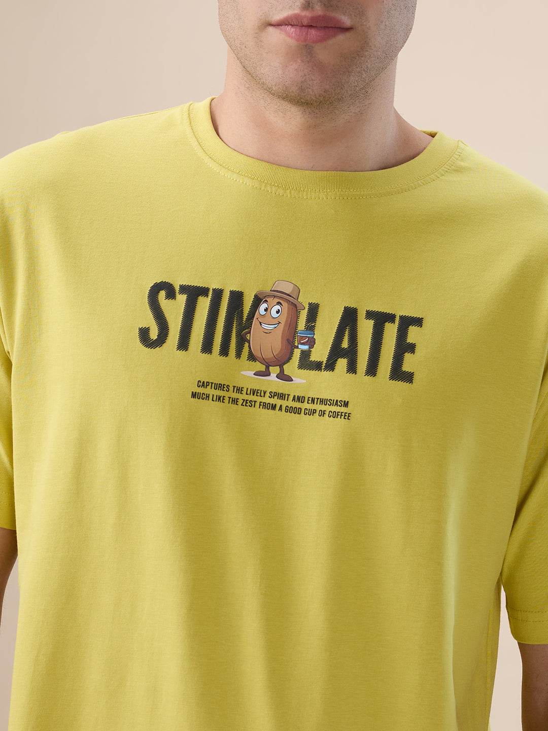 LIME Men's Oversized Round Neck Half Sleeves T-shirt with Back Typography Print