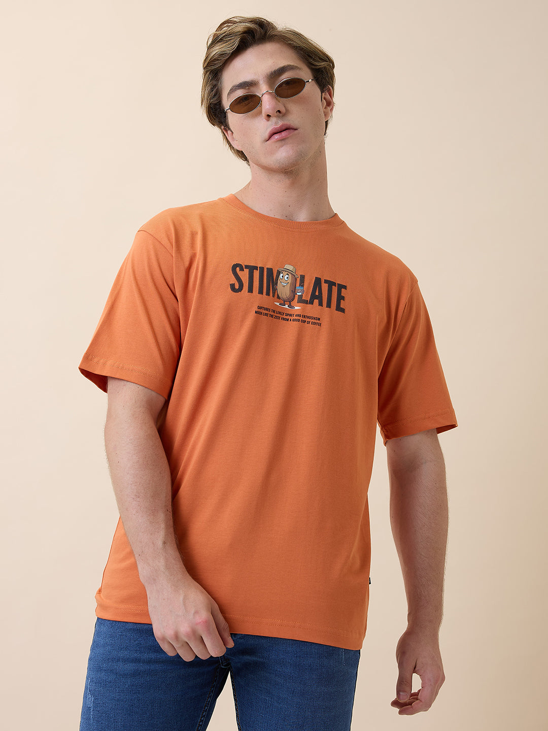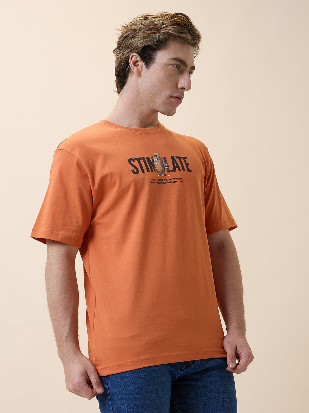 RUST Status Quo Men's Printed Round Neck Half Sleeves Oversized T-shirt