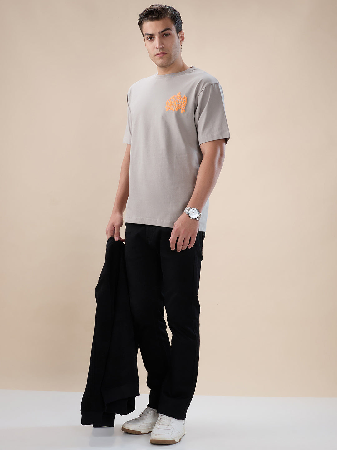 CEMENT Men's Graphic Print Round Neck Half Sleeves Oversized T-shirt