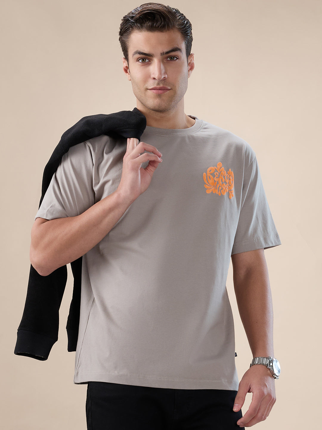 CEMENT Men's Graphic Print Round Neck Half Sleeves Oversized T-shirt