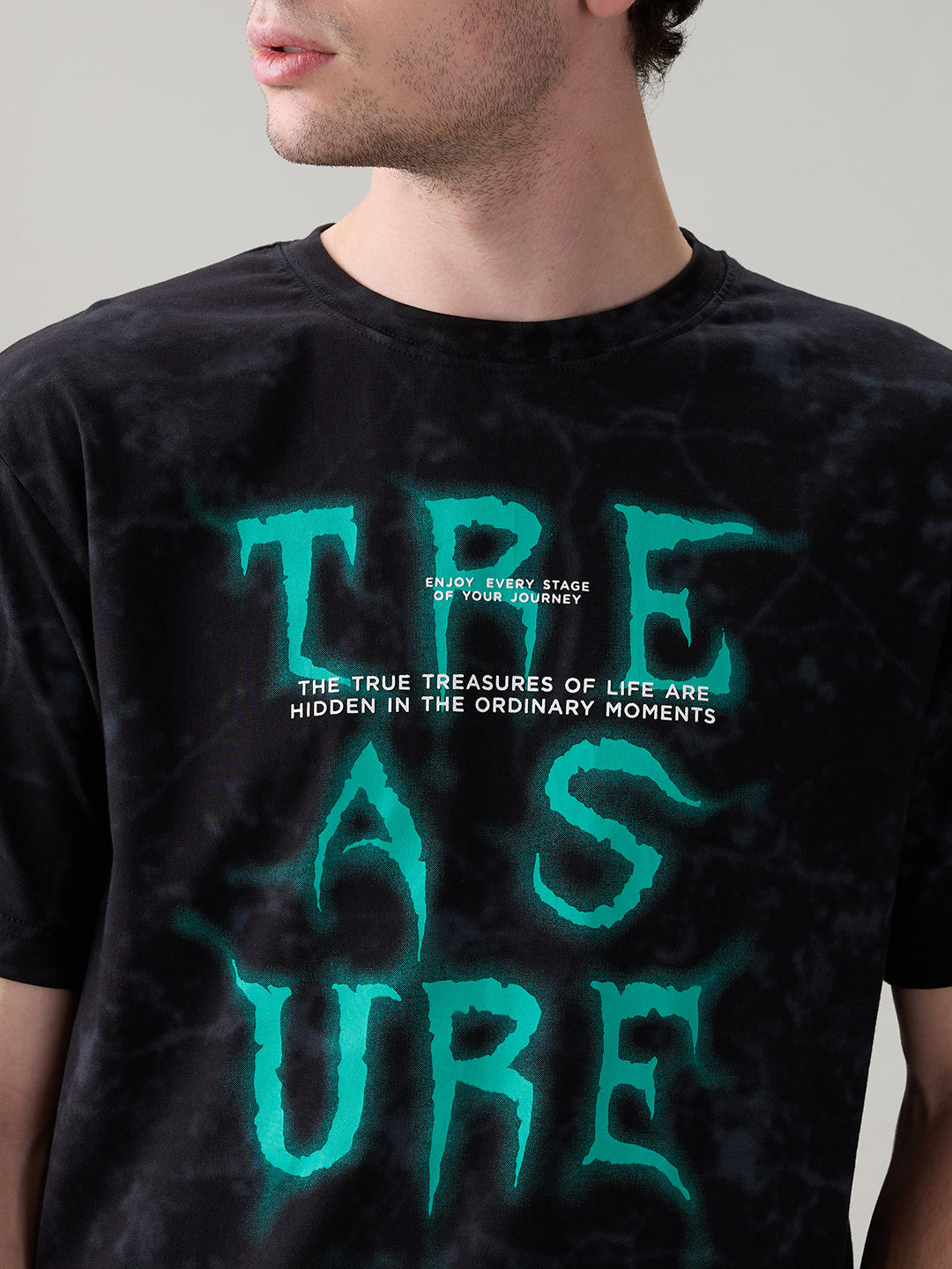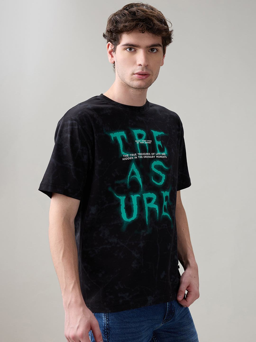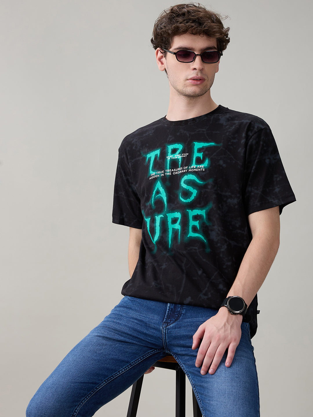 BLACK Status Quo Men's Typography Print Round Neck Regular Fit T-Shirt