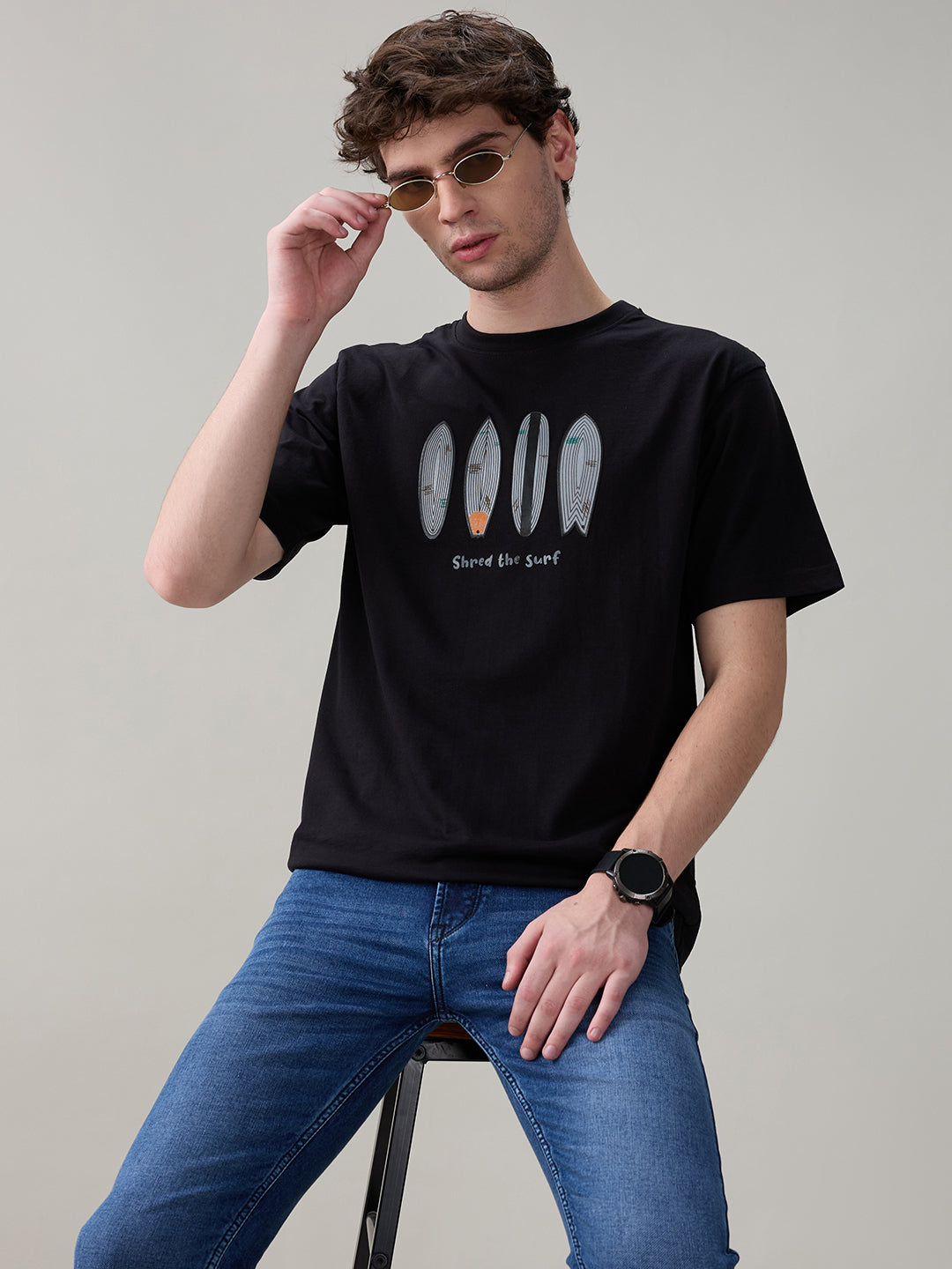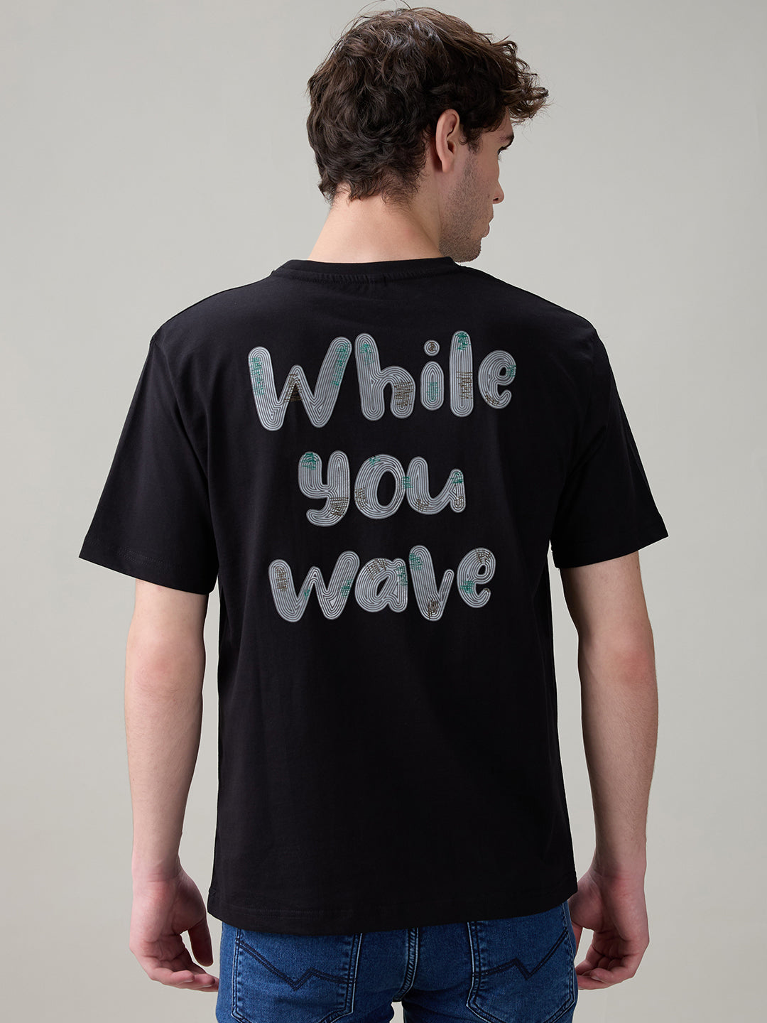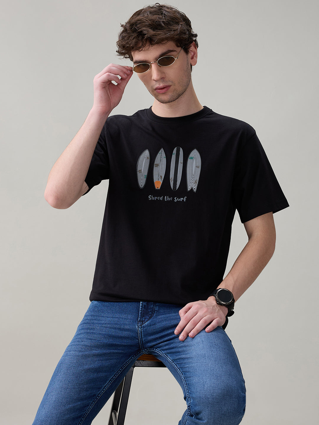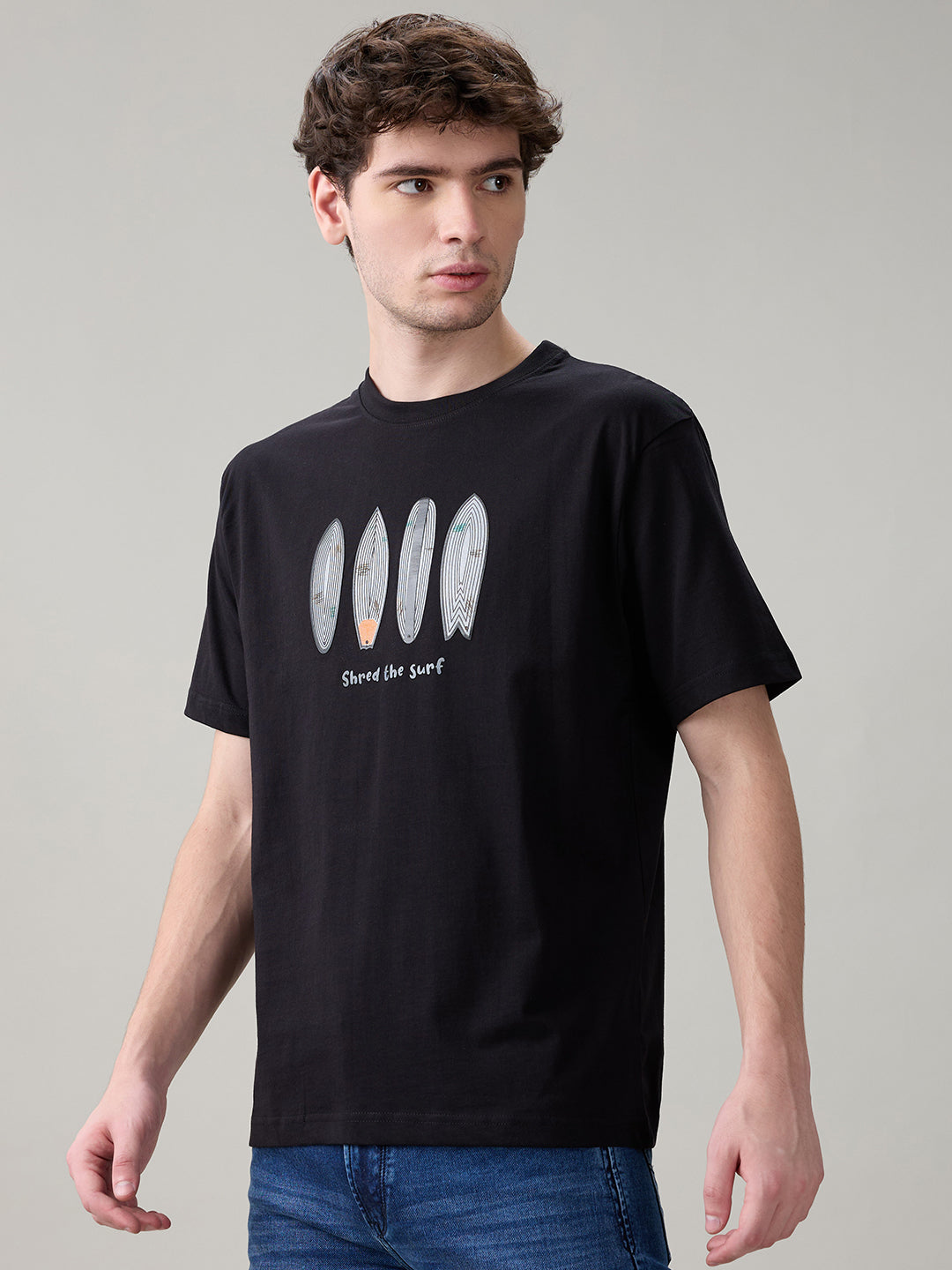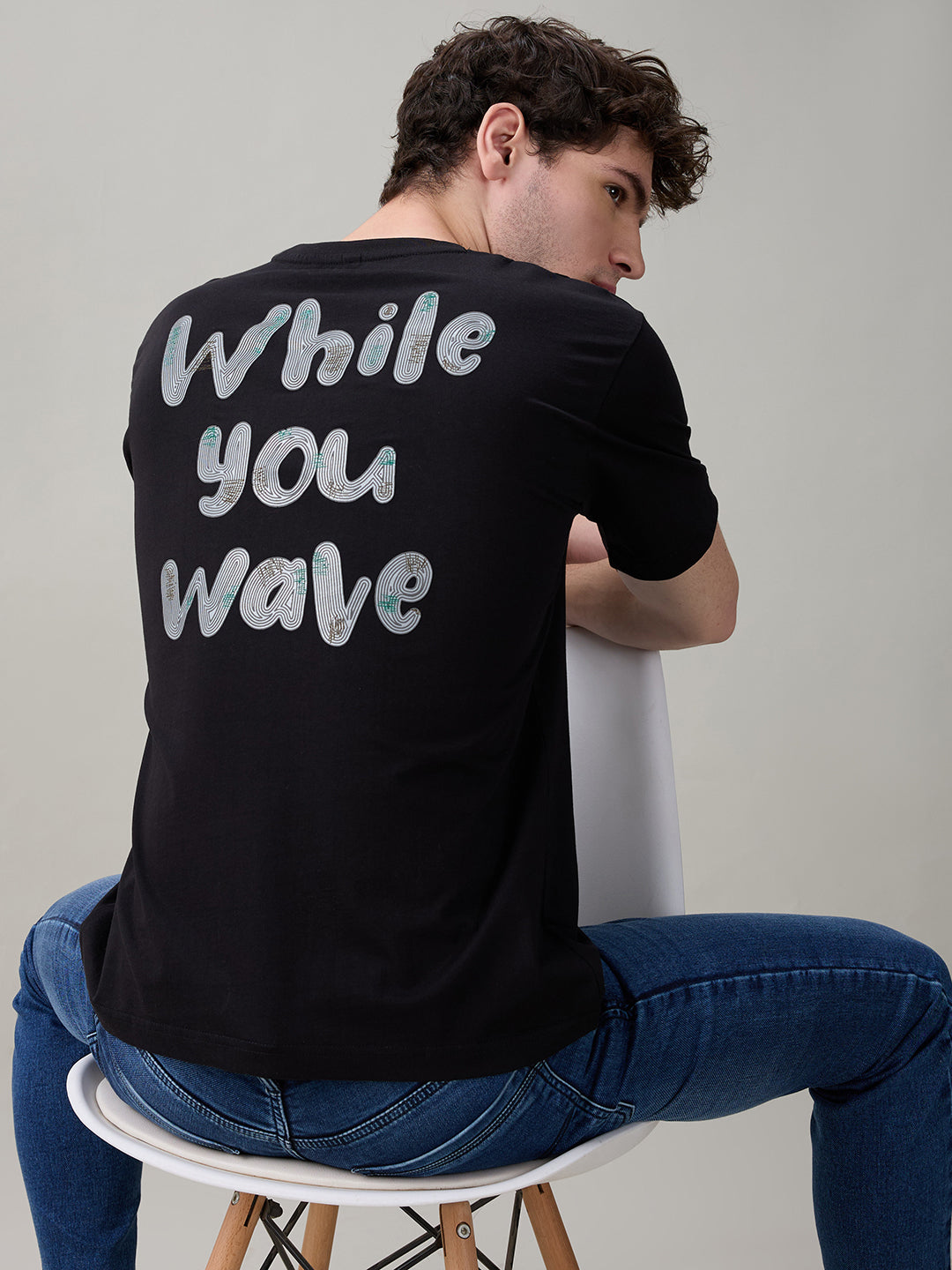 BLACK Status Quo Men's Regular Fit Round Neck T-Shirt with Typography and Graphic Print