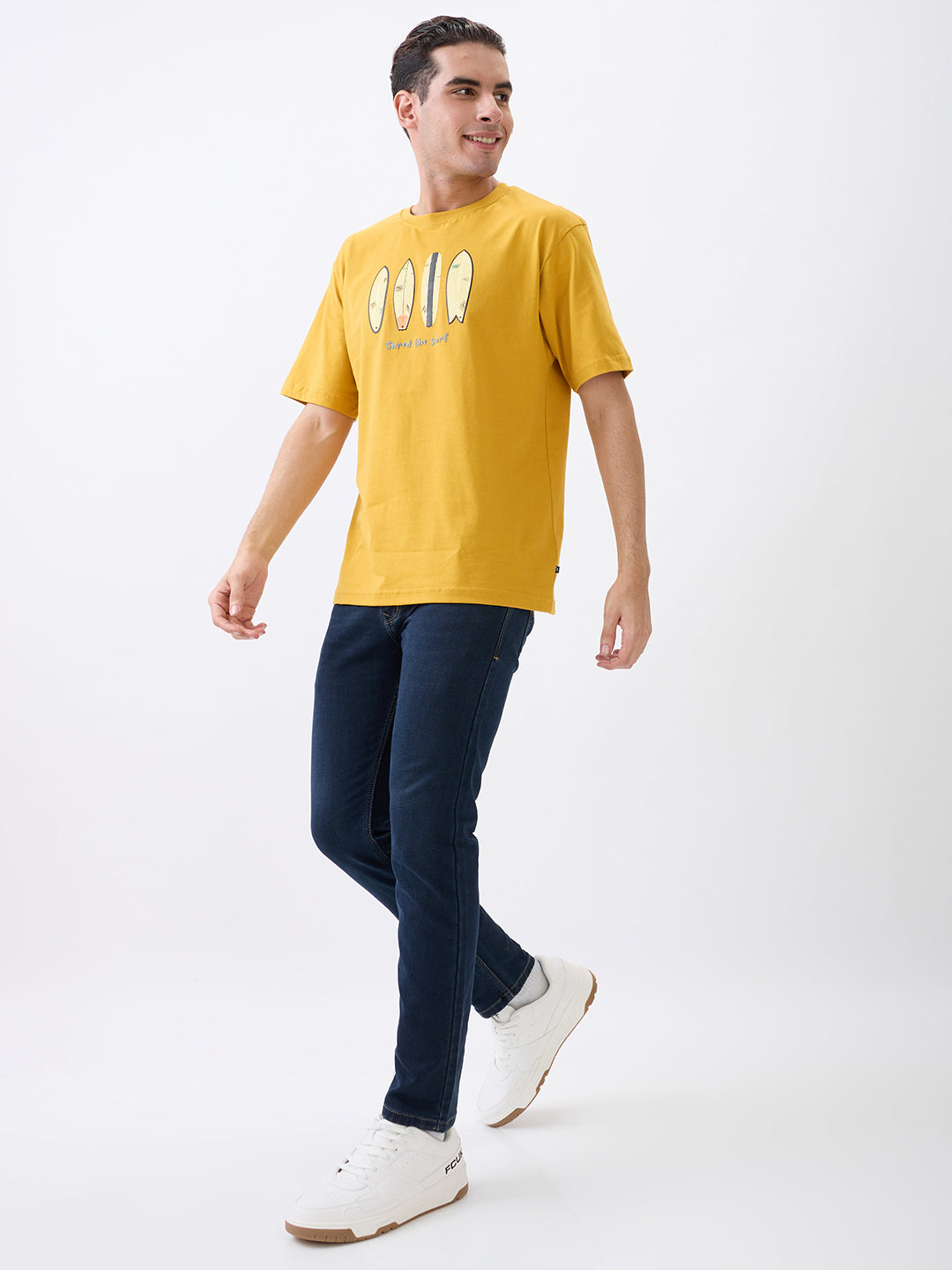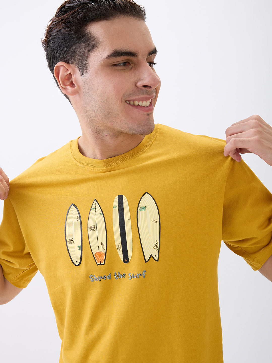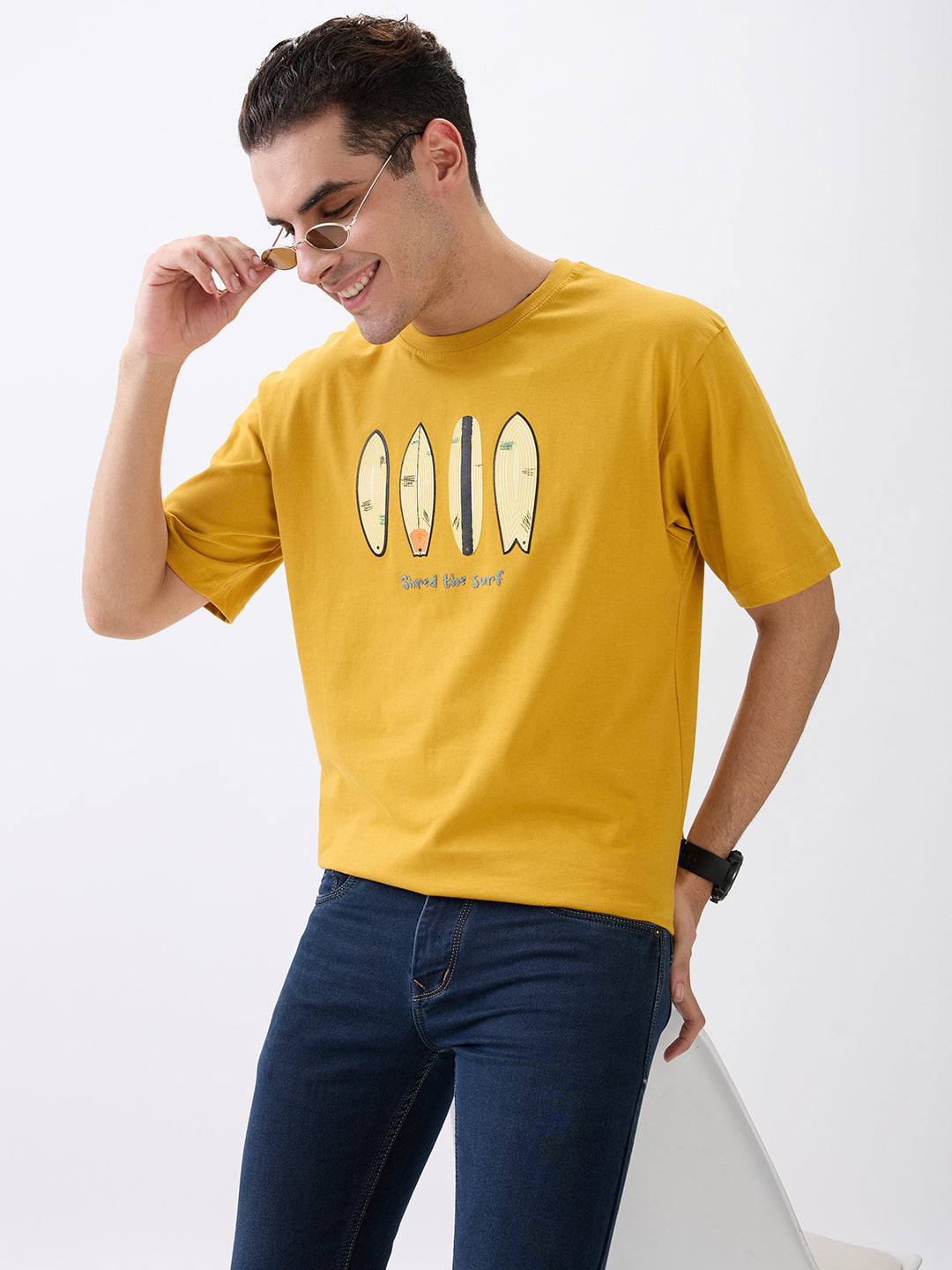 MUSTARD Status Quo Men’s Regular Fit Round Neck T-Shirt with Typography and Graphic Print