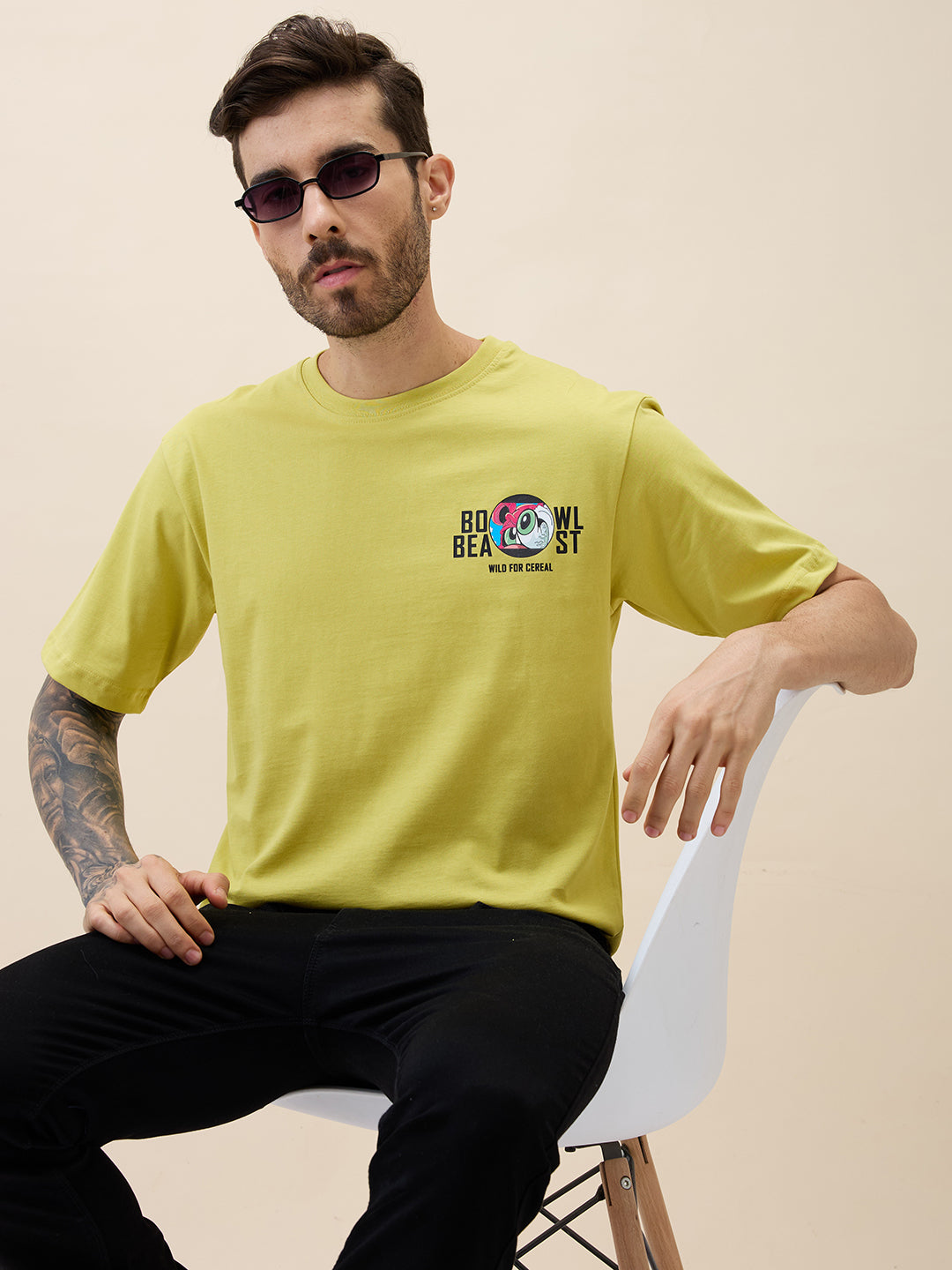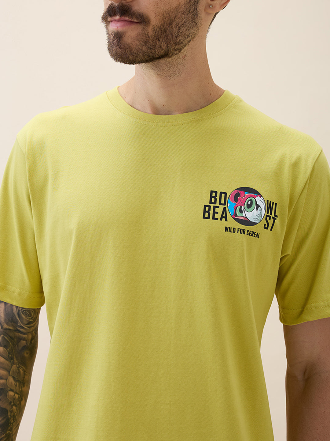 LIME Men's Printed Round Neck Half Sleeves Regular Fit Tshirt