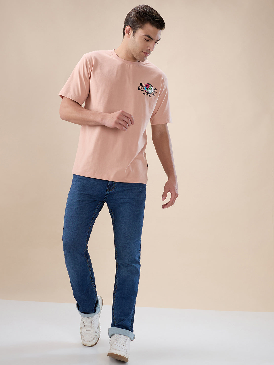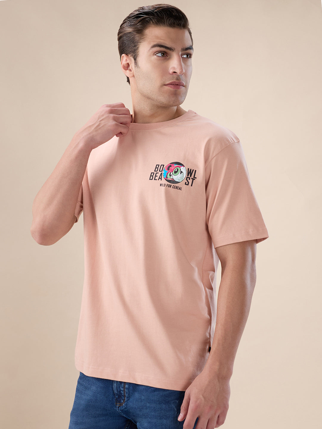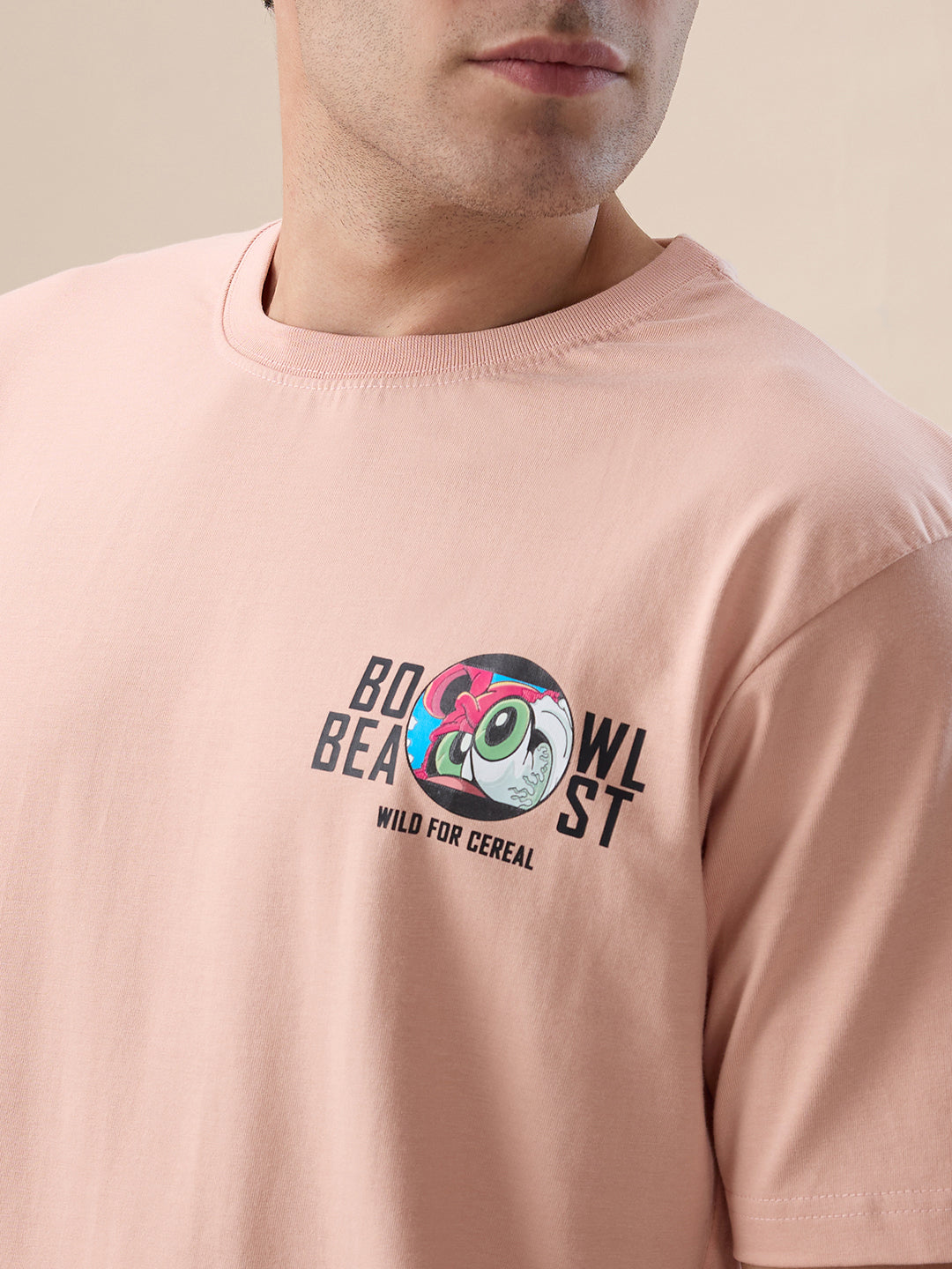 MISTY ROSE Men's Back Graphic Print Round Neck Half Sleeves Oversized T-shirt
