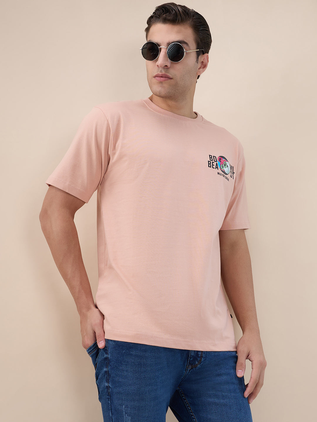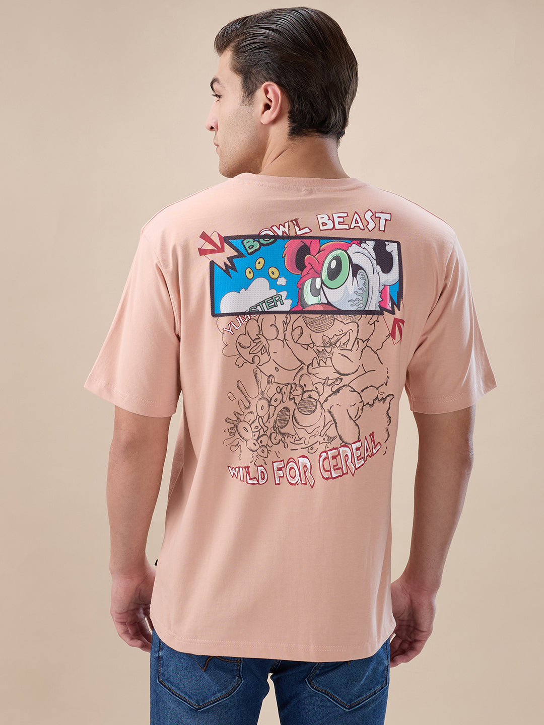 MISTY ROSE Men's Back Graphic Print Round Neck Half Sleeves Oversized T-shirt