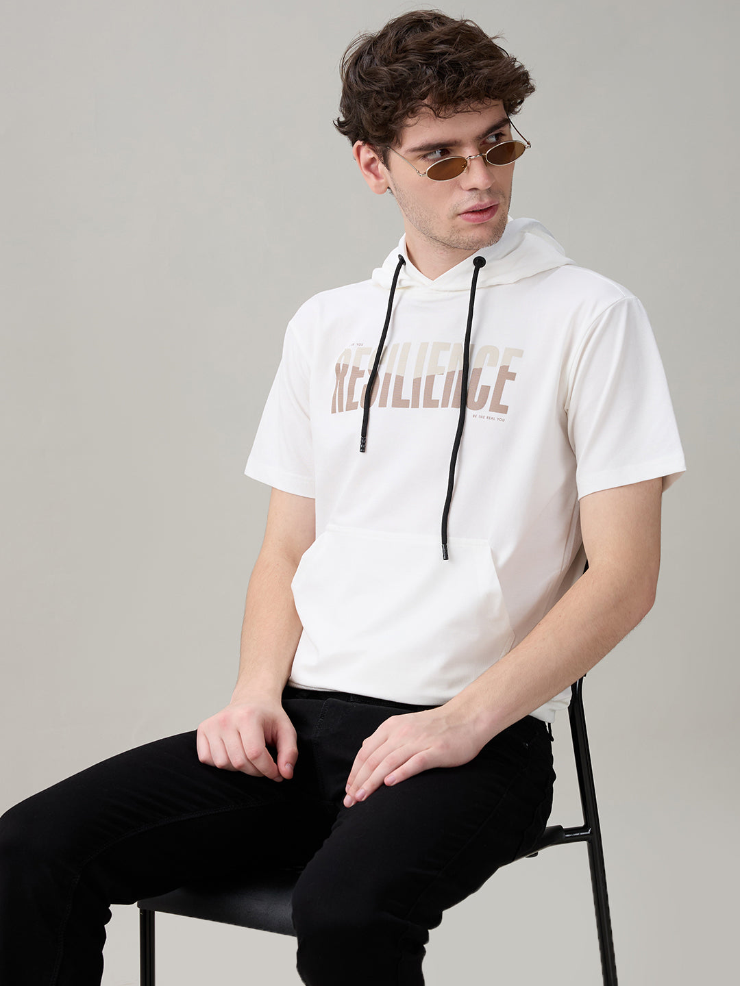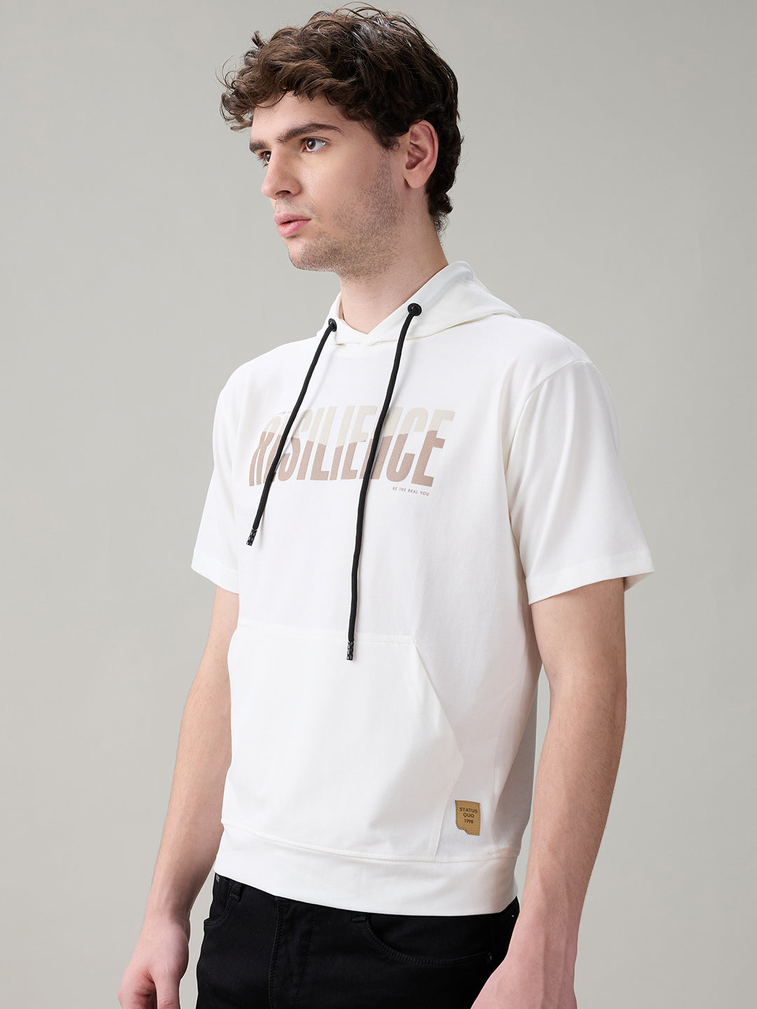 OFF WHITE Status Quo Men's Typography Printed Hooded Neck Regular Fit T-Shirt