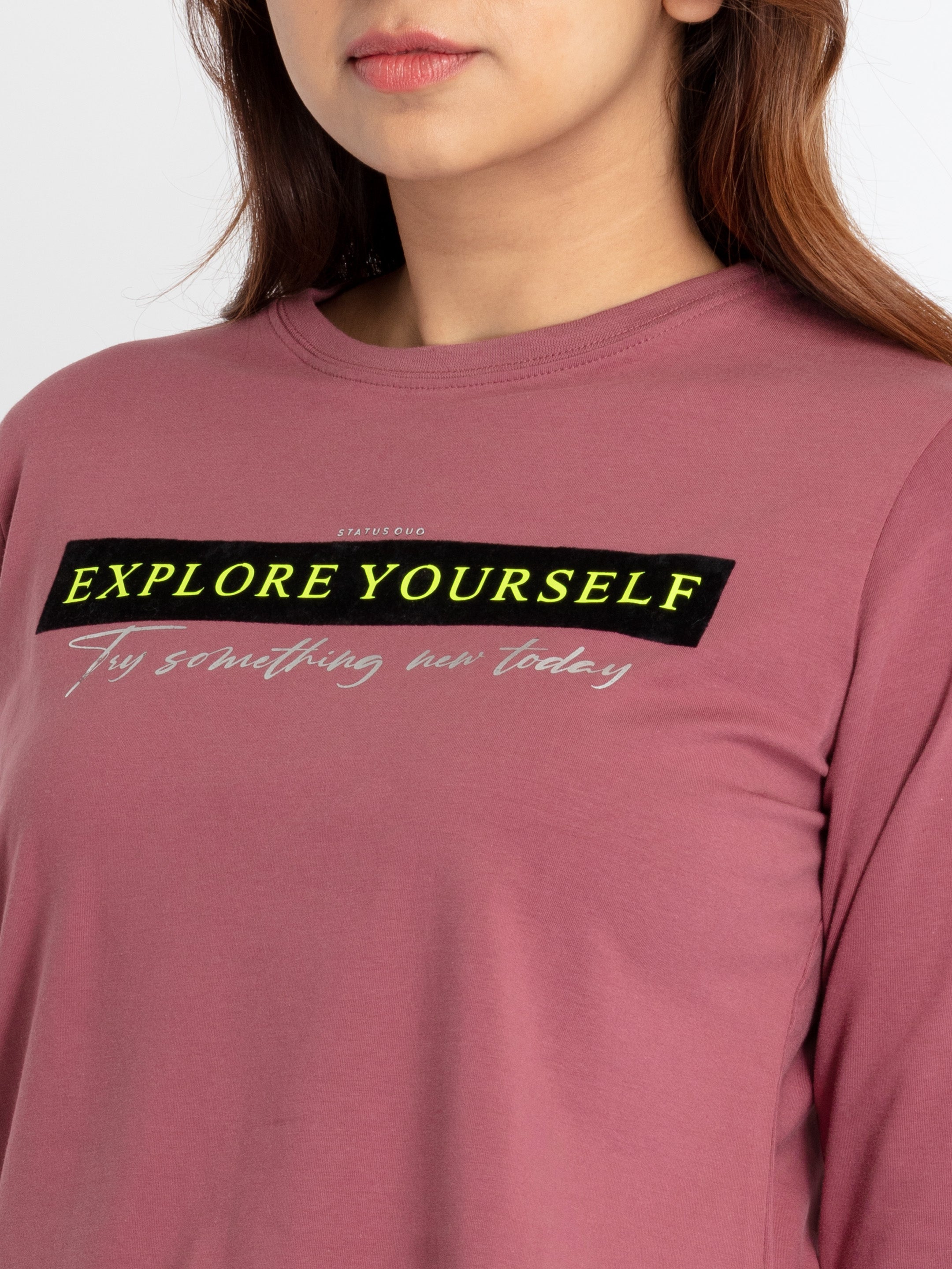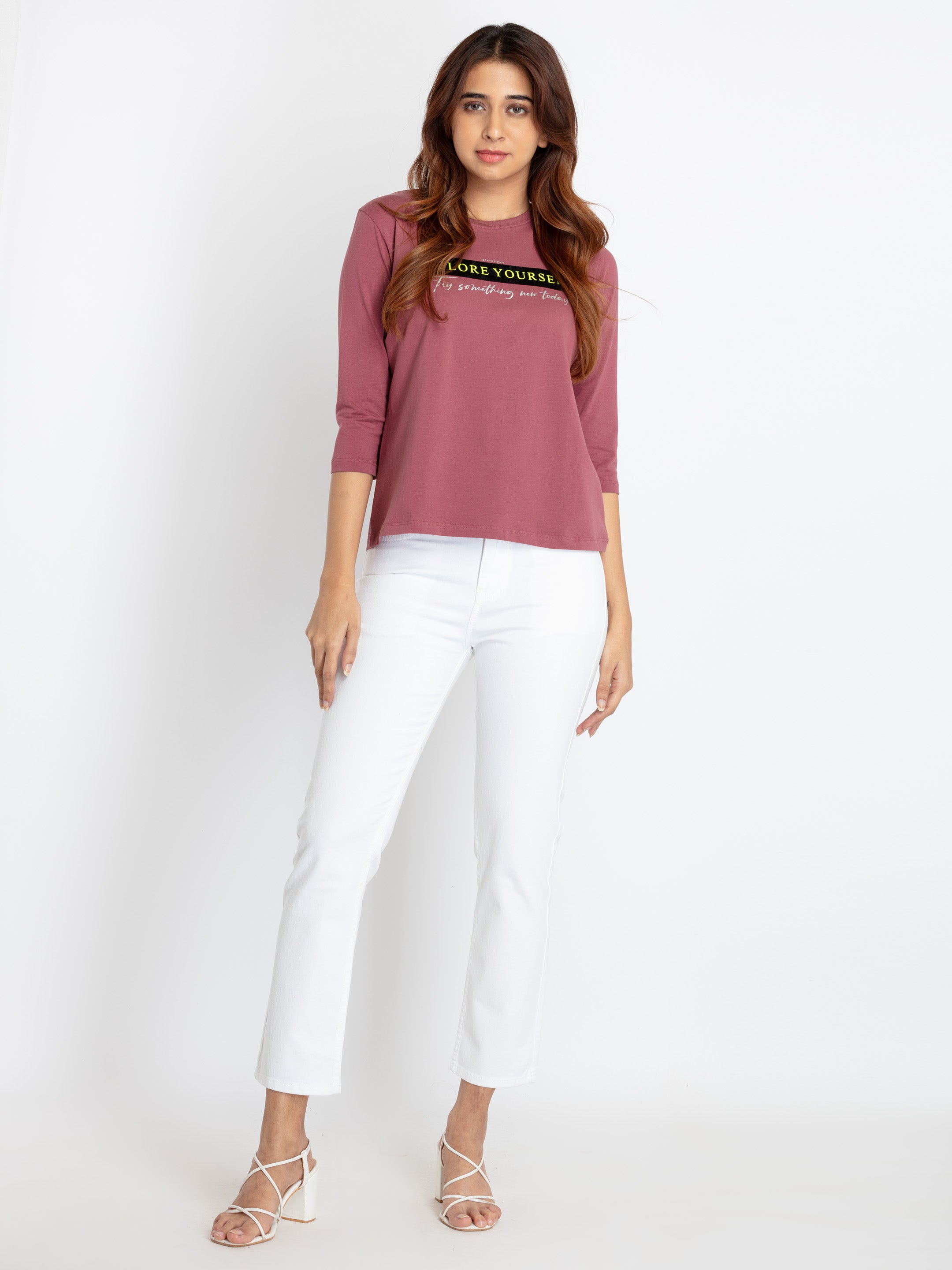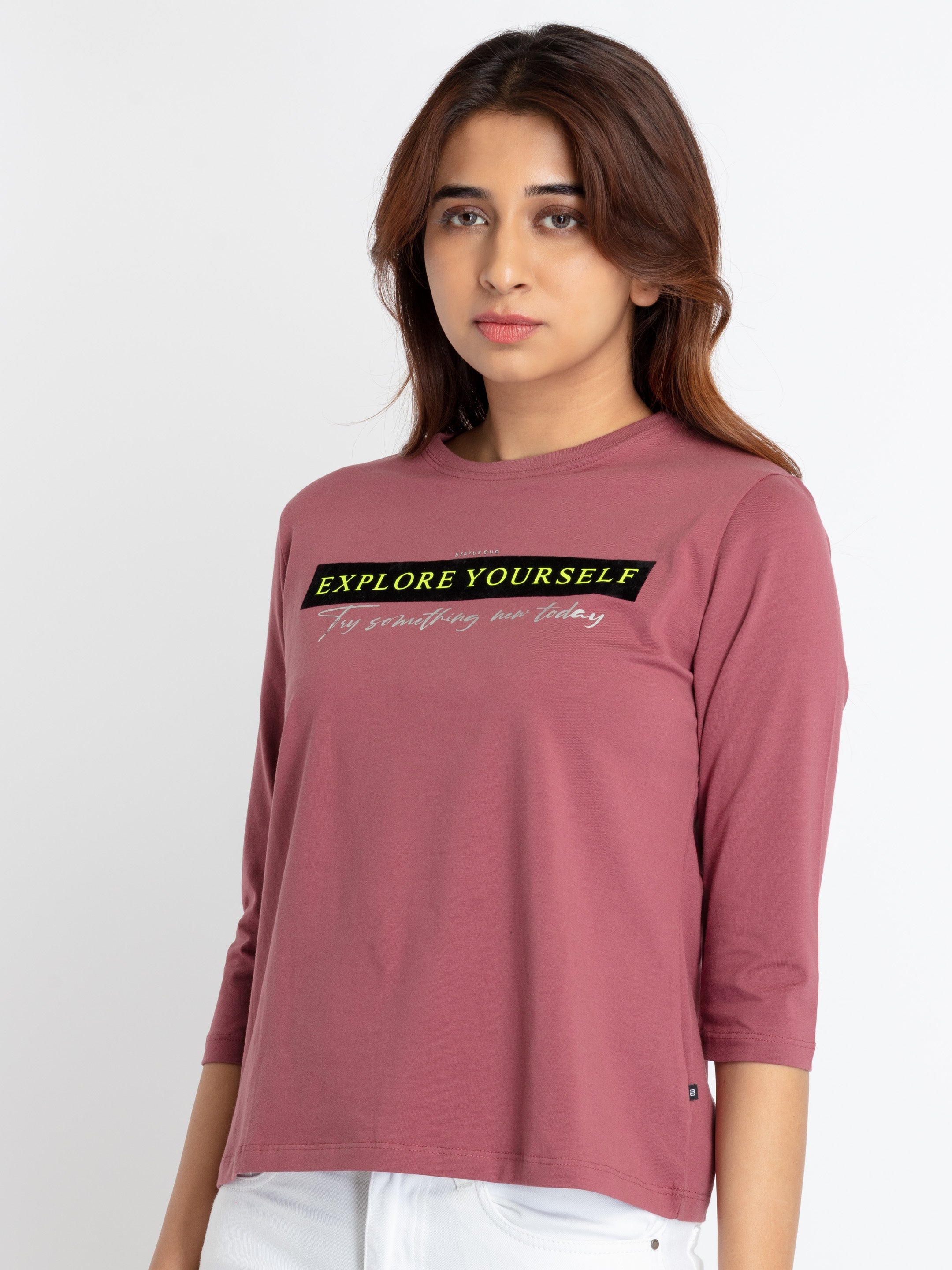WINE Printed T-shirt for Women, 3/4 Sleeves