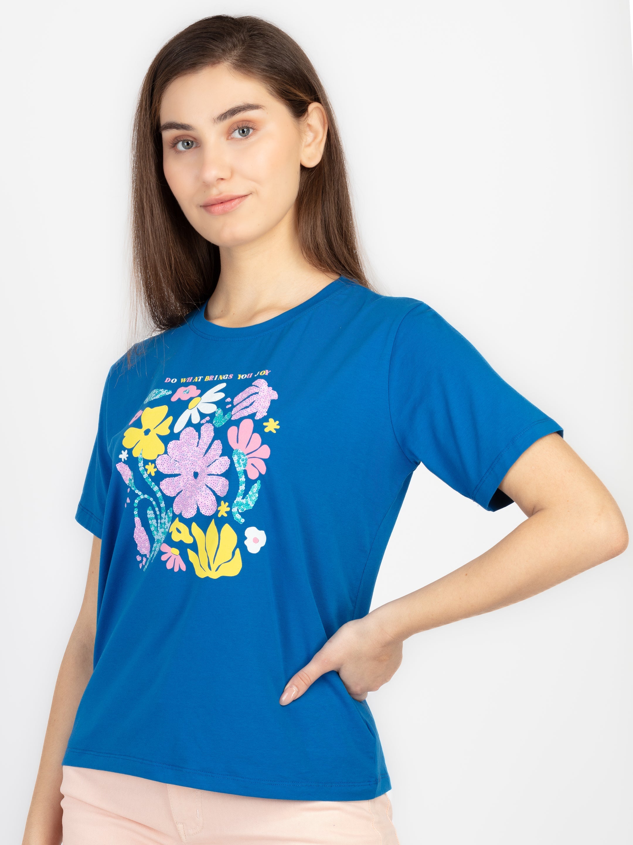 ROYAL Printed T-shirt for Women, Half Sleeves